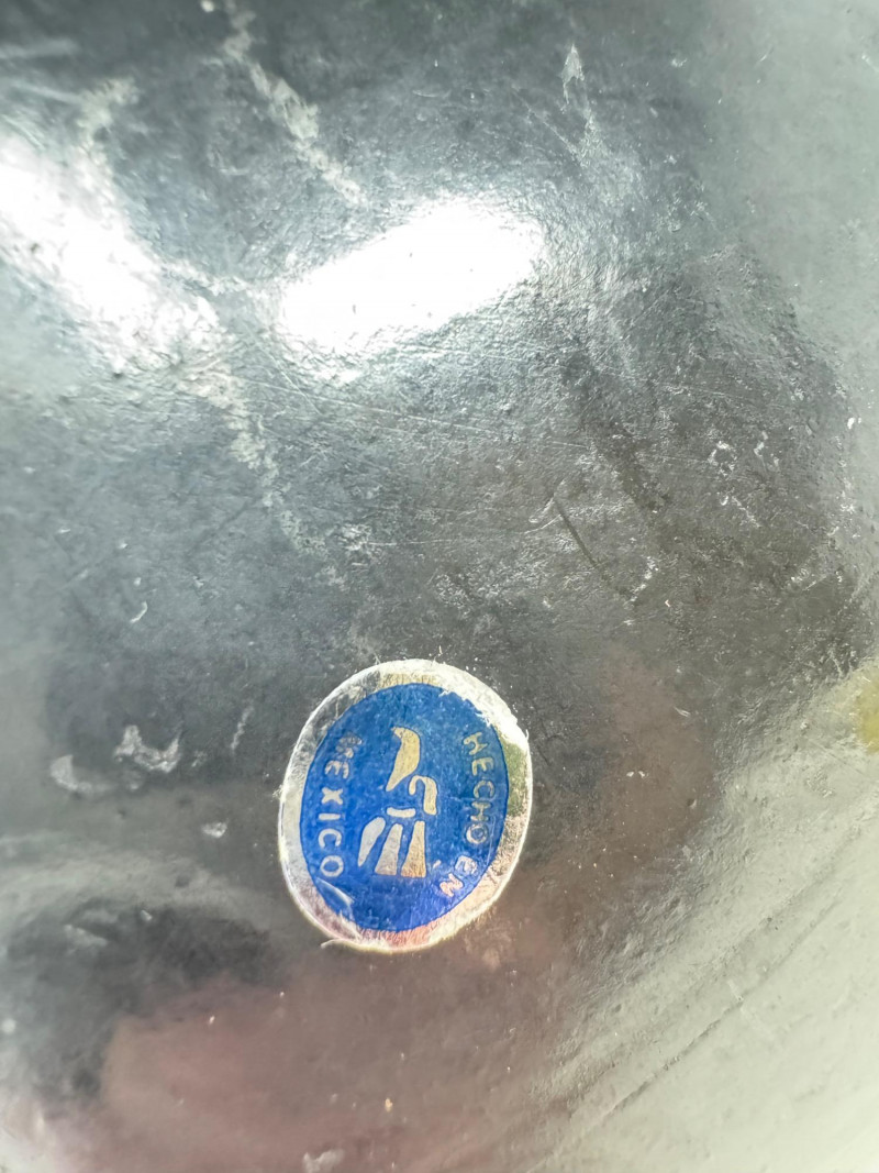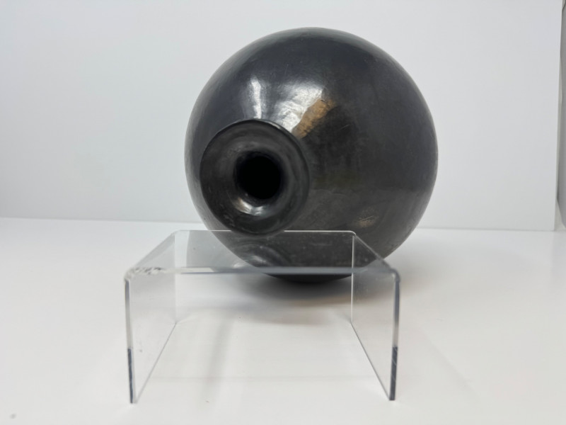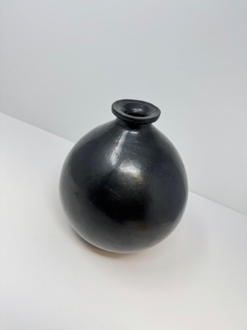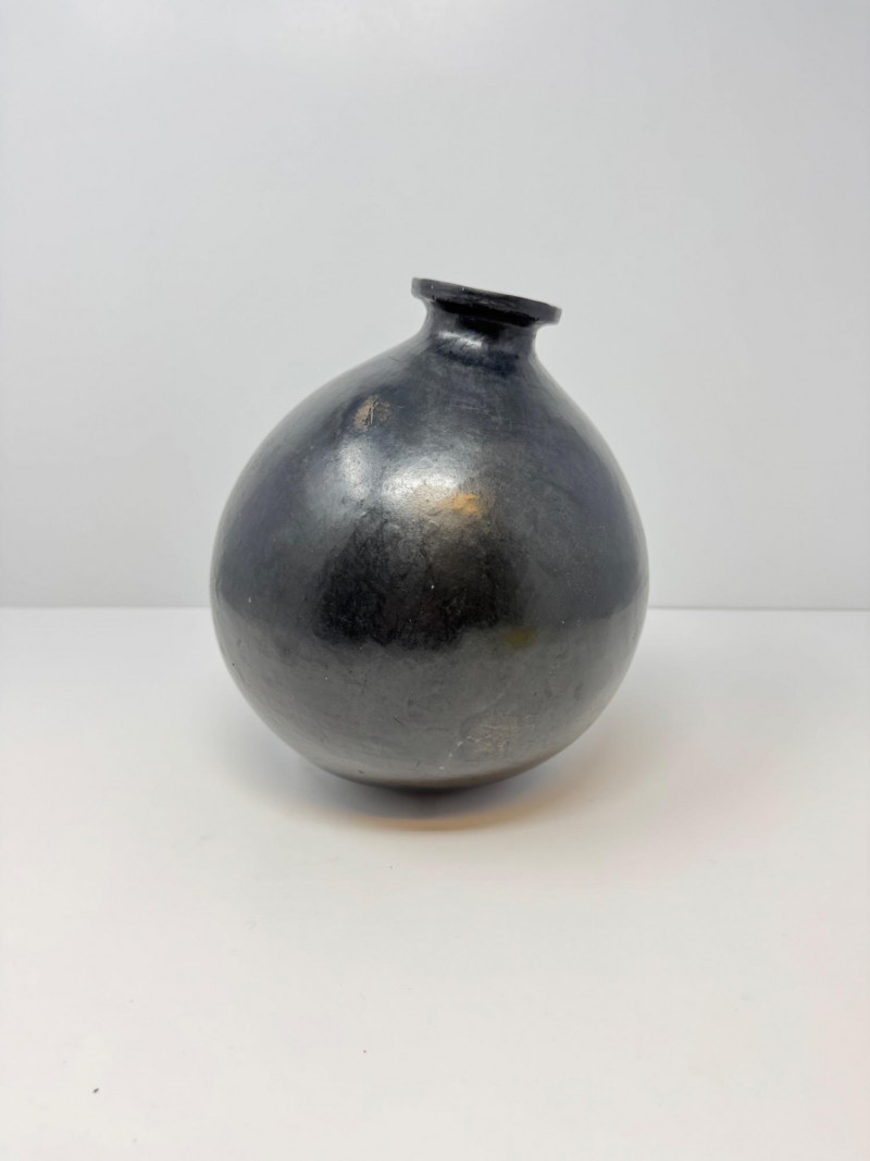 Lot # 48 - Round Handcrafted Mexican Black Pottery Vase, Hecho en Mexico