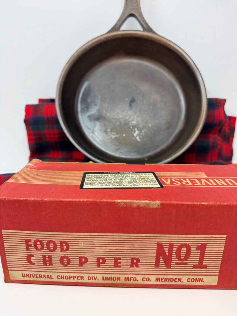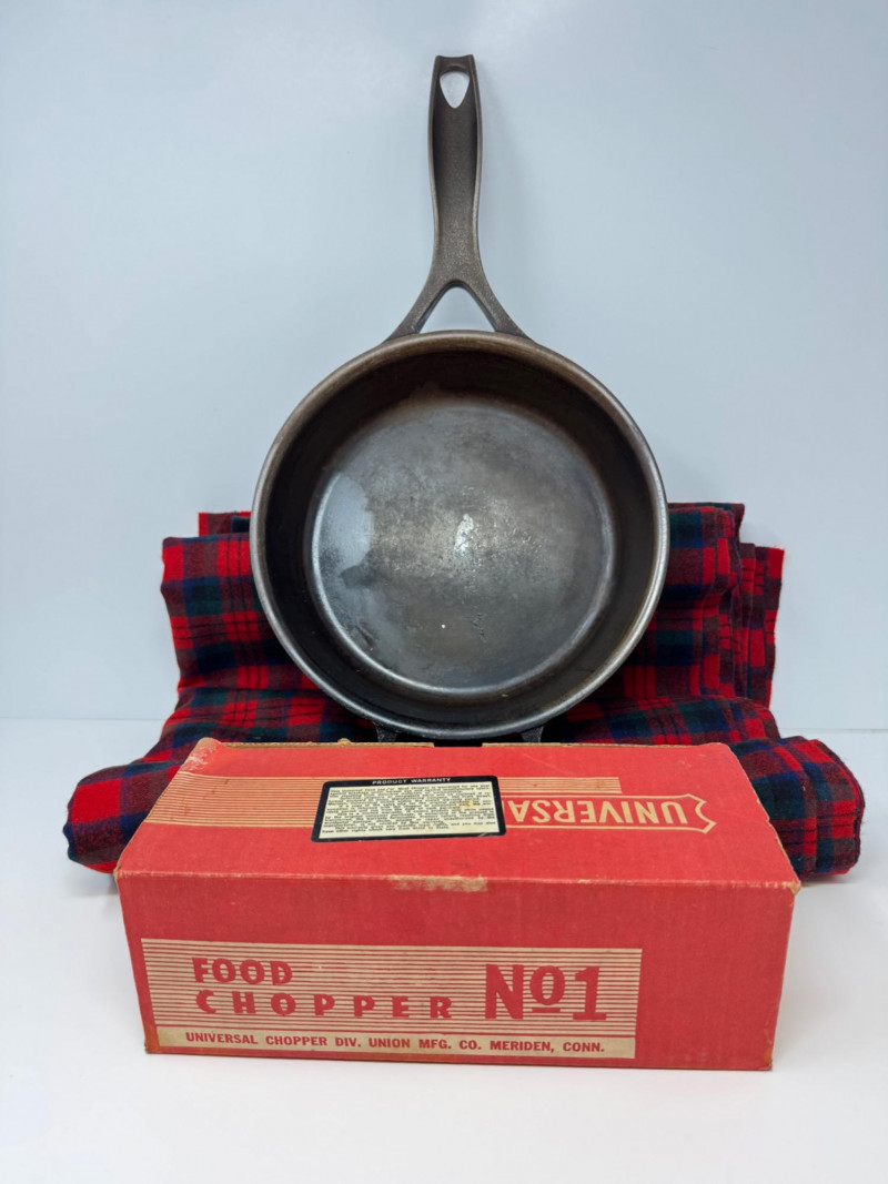 Lot # 52 - Stargazer Cast Iron Skillet, Universal Chopper, & Wool Plaid Fabric