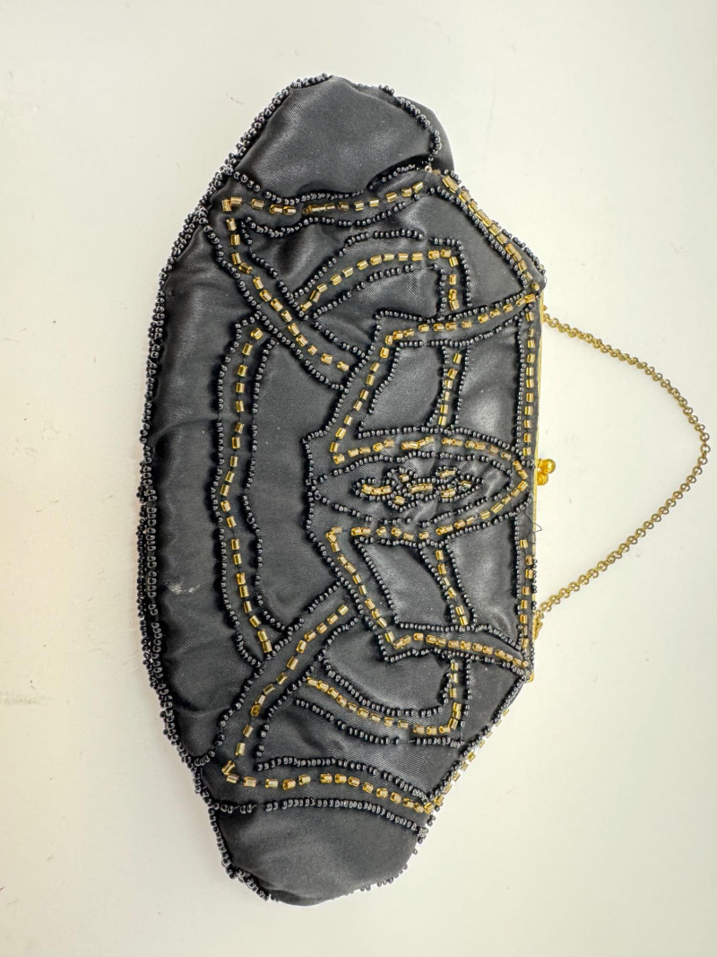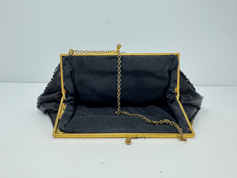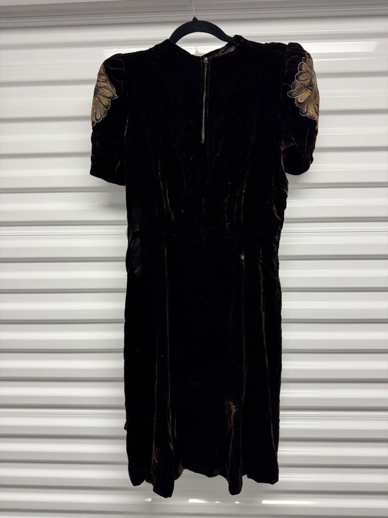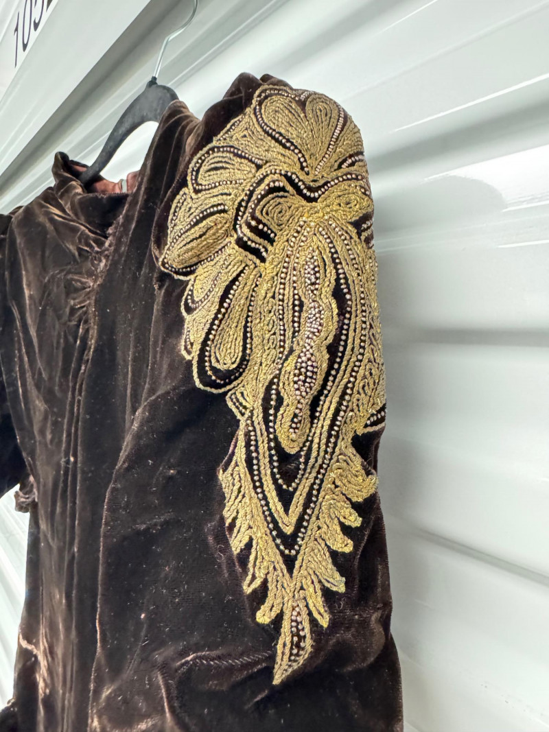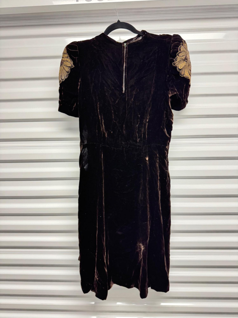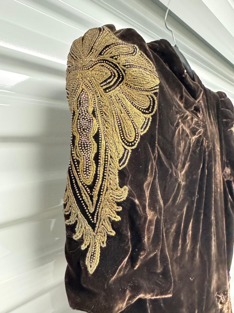 Lot # 53 - Antique 1920s Black Velvet Dress w/ Gold Embroidery + Beaded Purse
