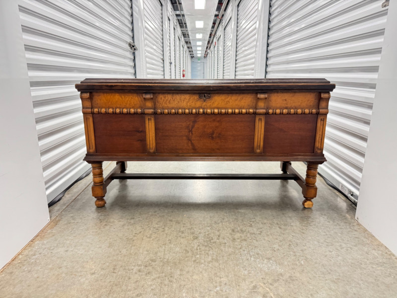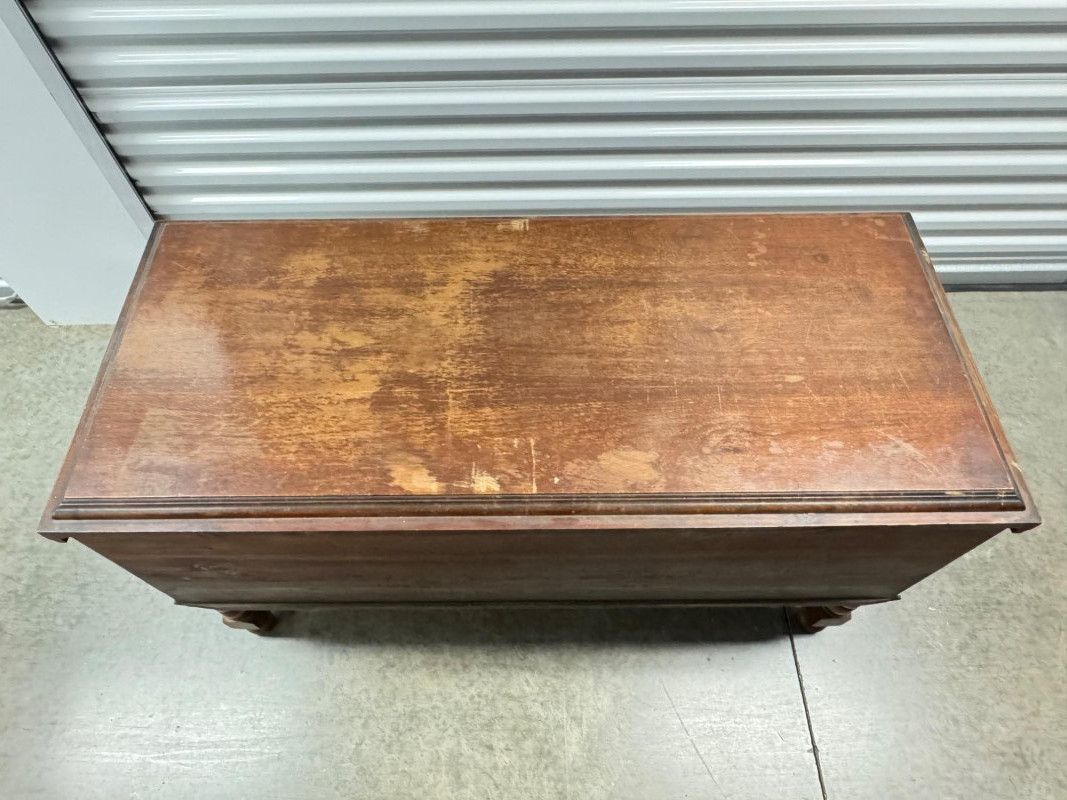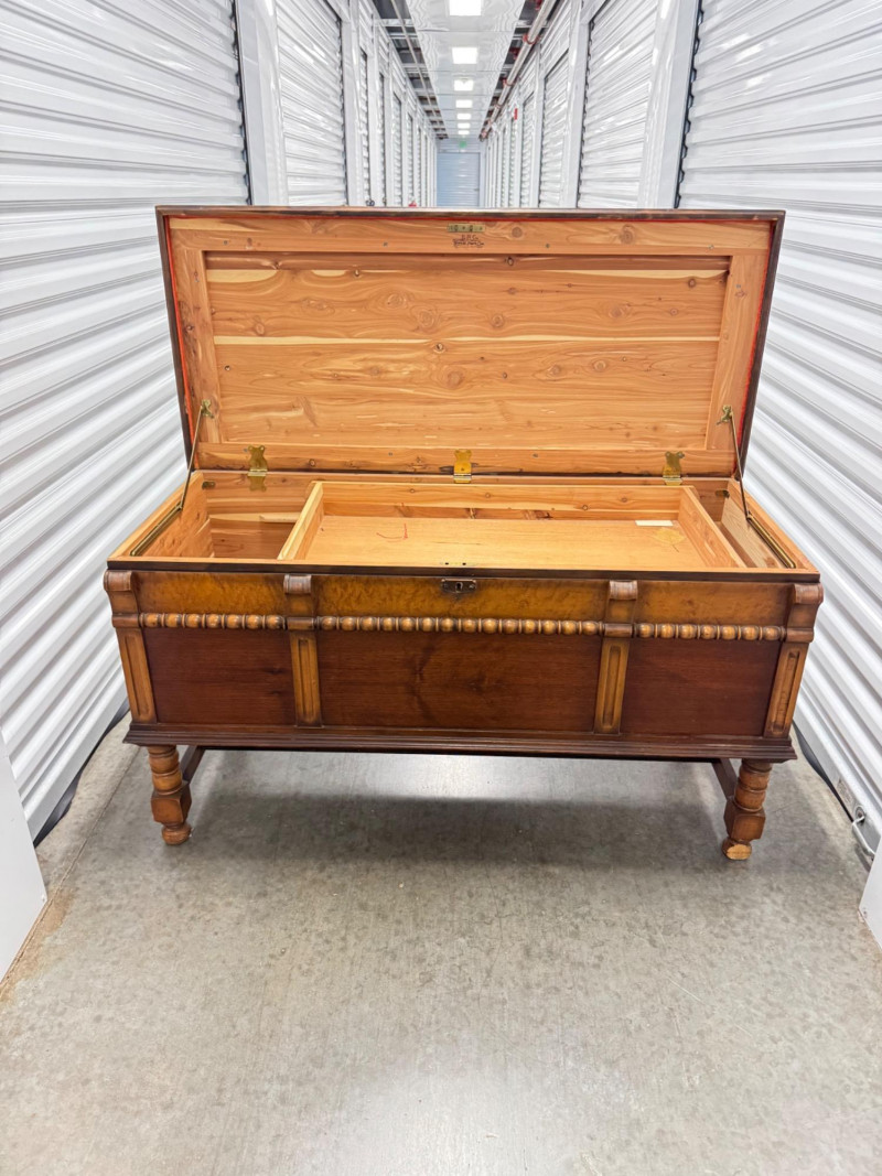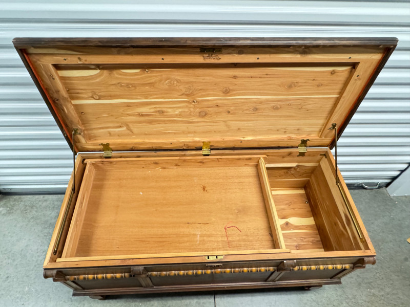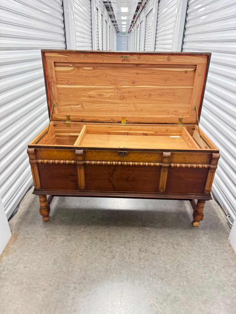 Vintage Cedar Hope Chest on Turned Legs w/ Interior Tray. Bidding on this lot is an agreement that: (1.) You will have at least 2 capable, able bodied persons to lift and load at a minimum. (2.) You will bring a hand truck and/or any other tools needed to remove this item. If these steps are not followed your item will be forfeit and no refund given.