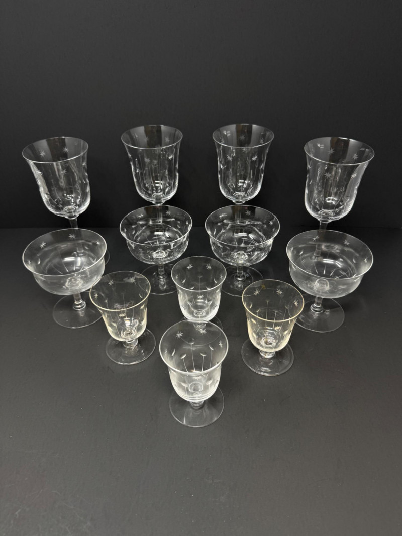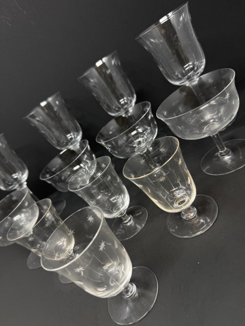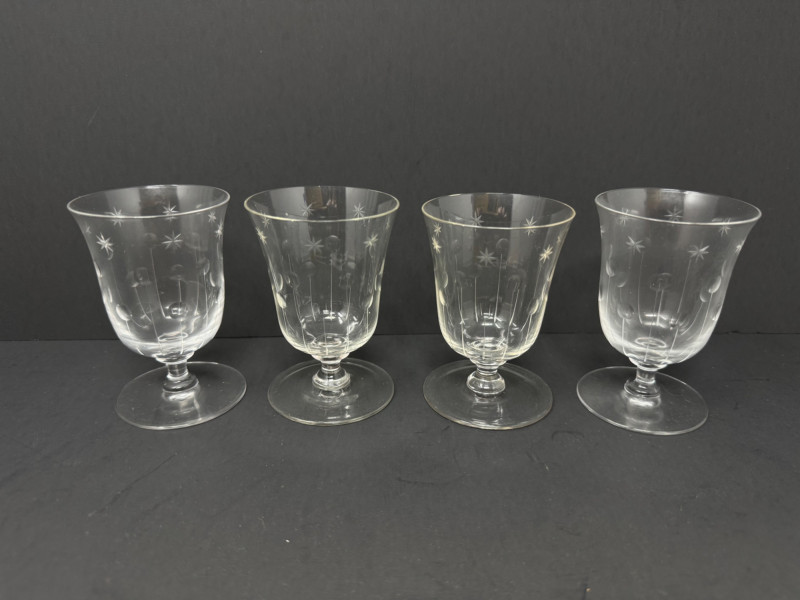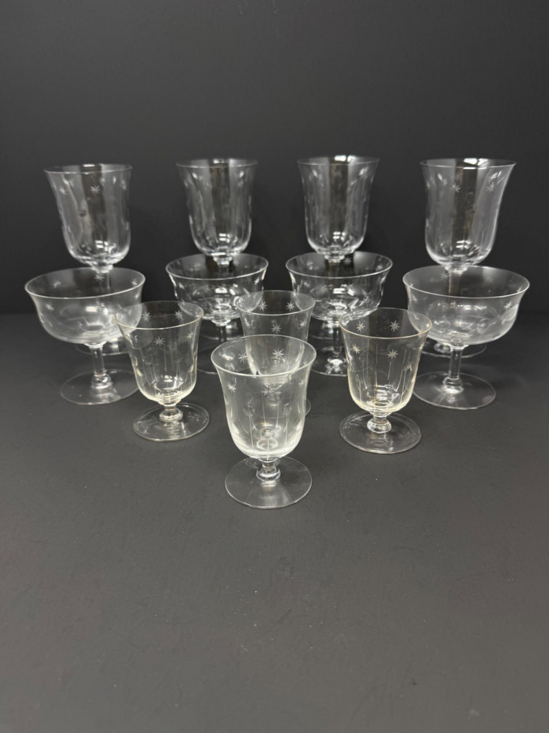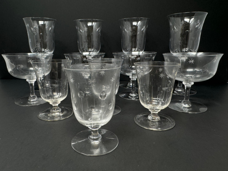 Lot # 64 - 12 Vintage Etched Starburst Glasses – Wine, Cocktail & Cordial