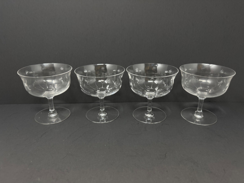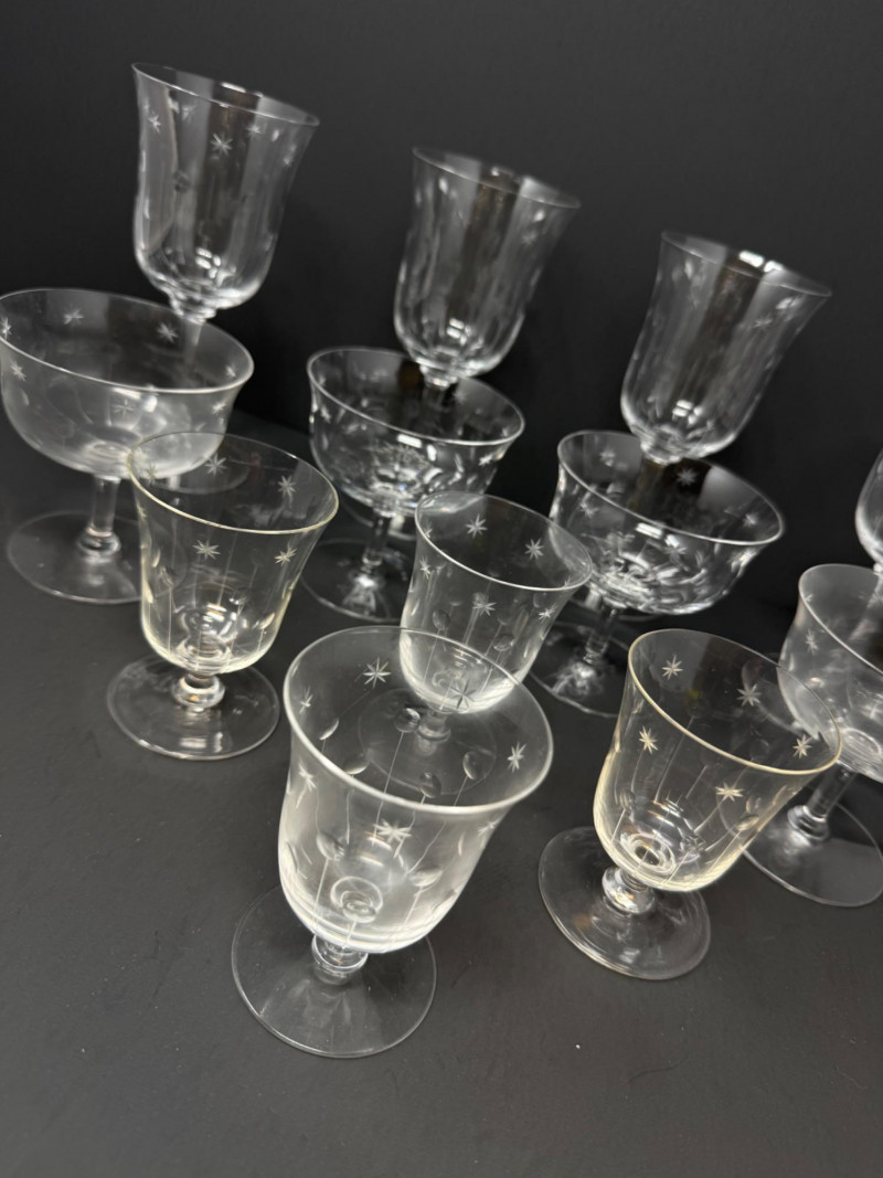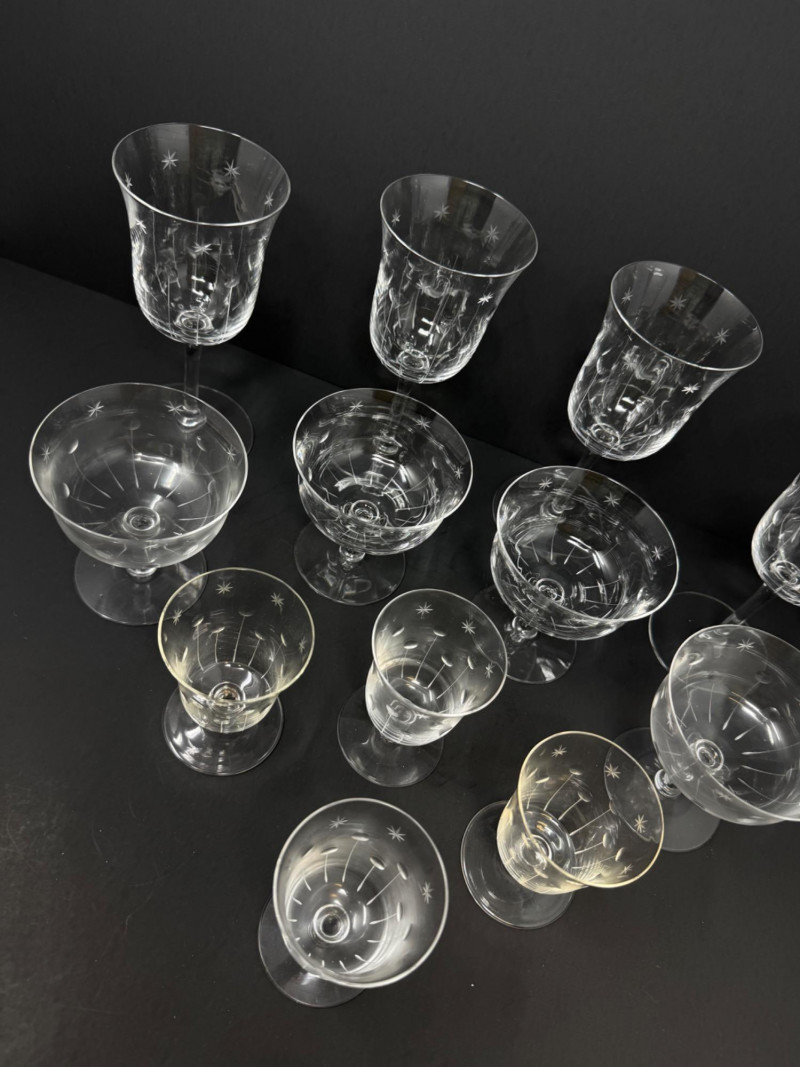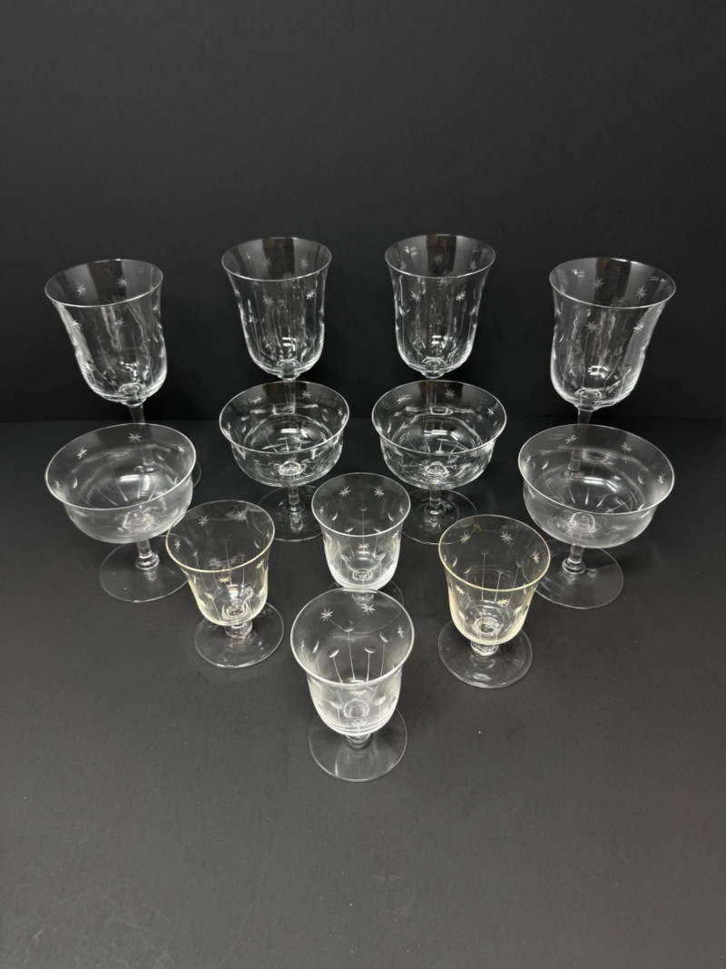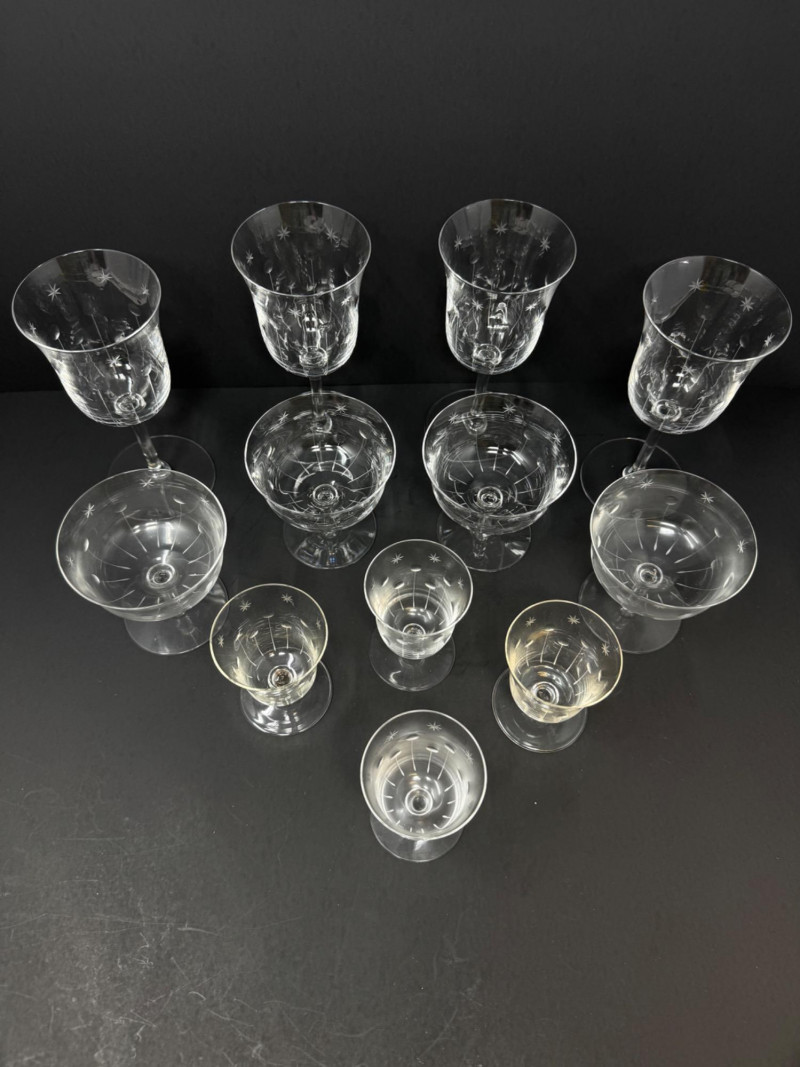 Lot # 64 - 12 Vintage Etched Starburst Glasses – Wine, Cocktail & Cordial