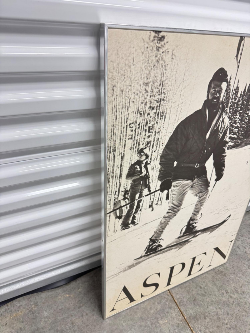 Large Framed Black & White Aspen Ski Poster. 24" x 36"