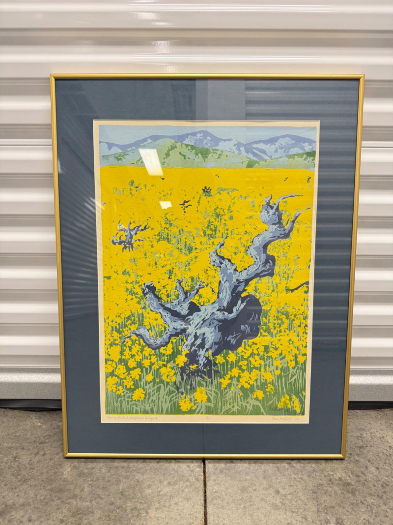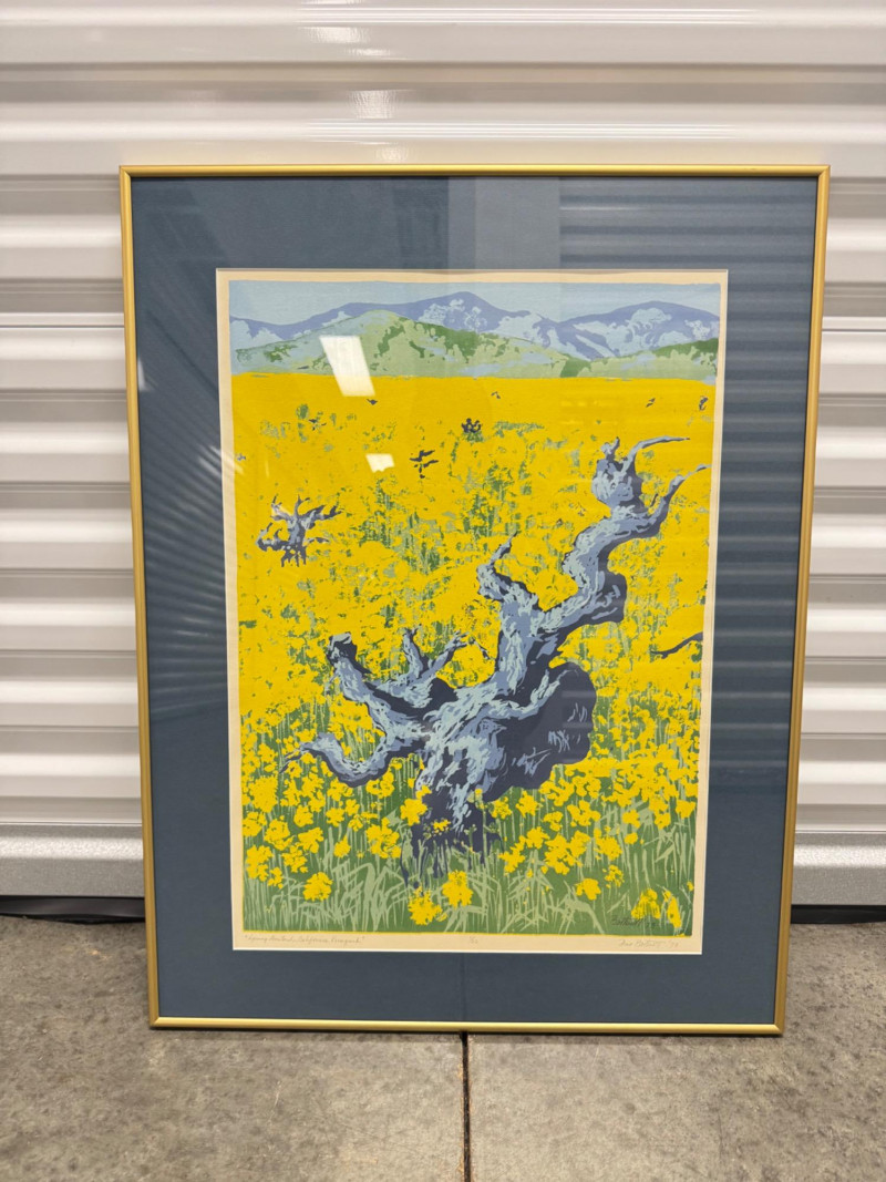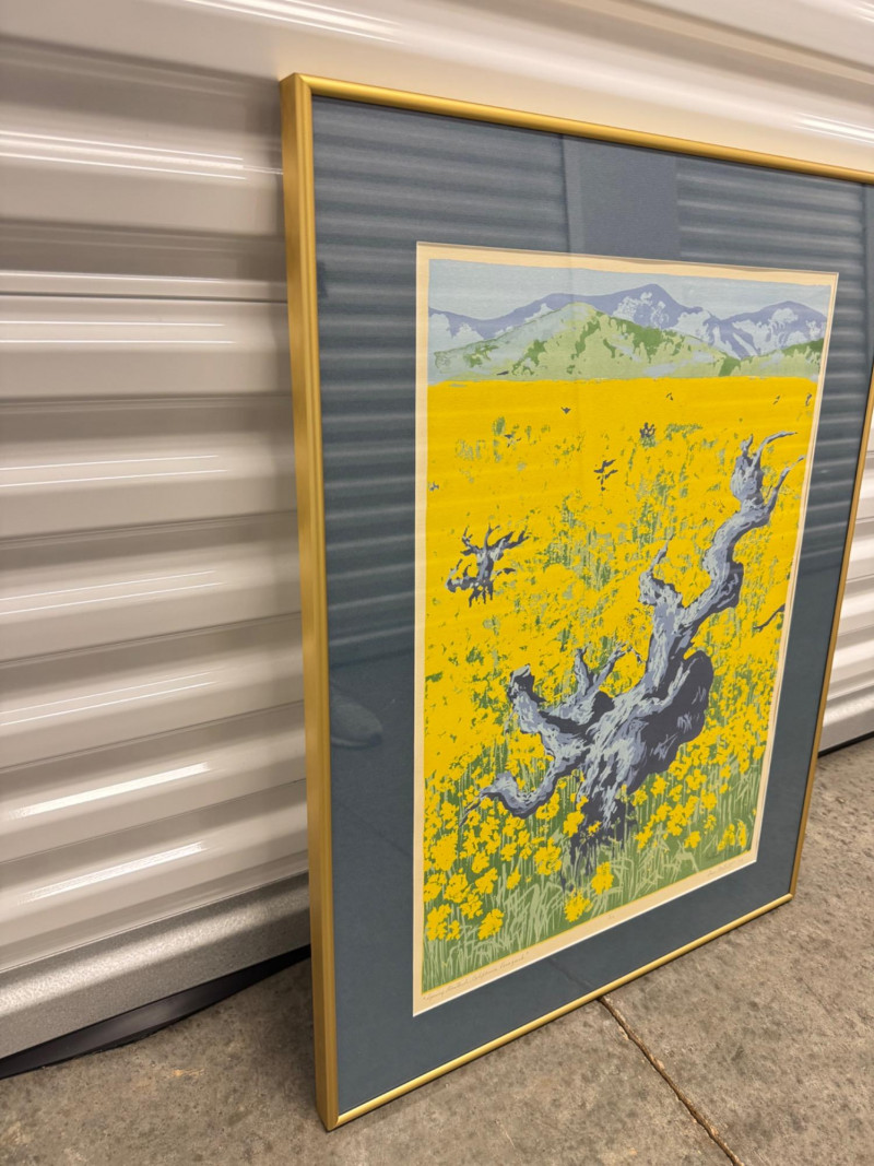 1973 Dorr Bothwell Signed Serigraph Abstract Tree & Yellow Field Scene. 22.25" x 30"