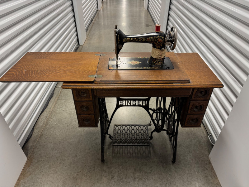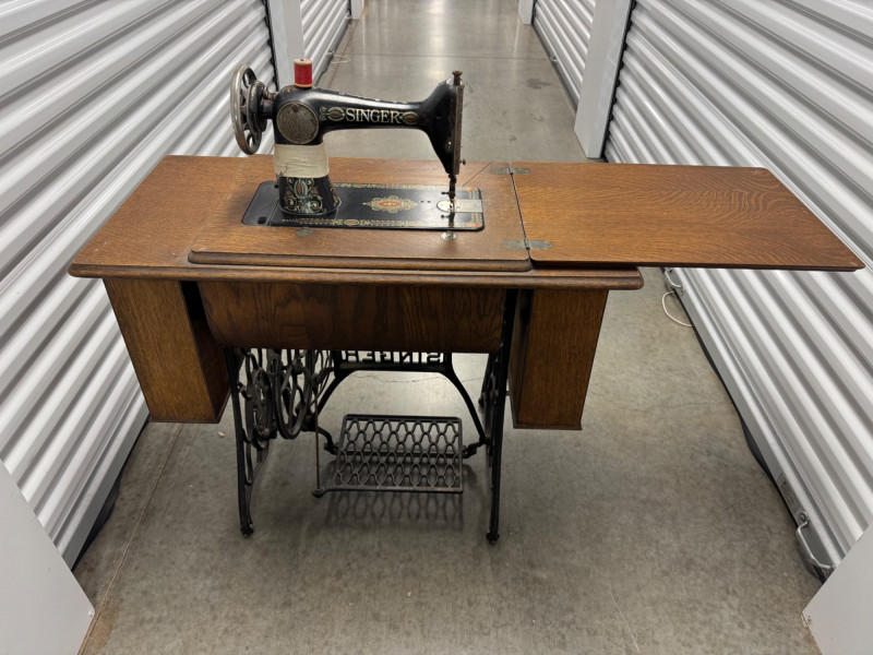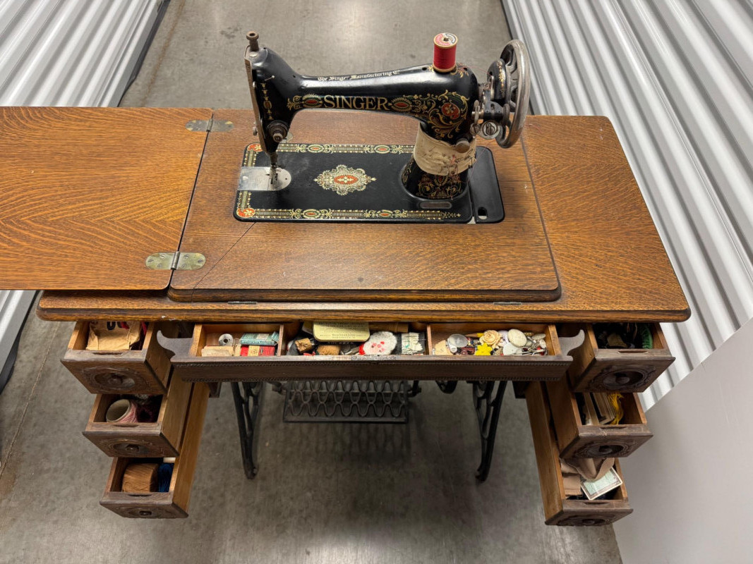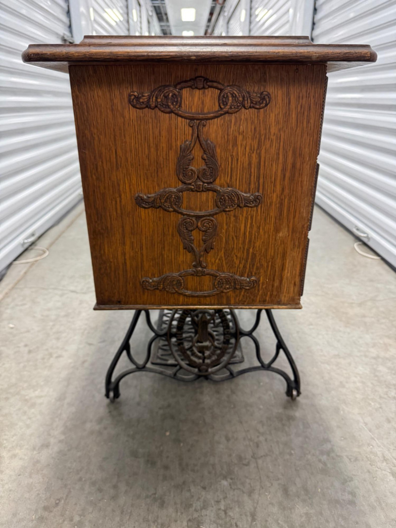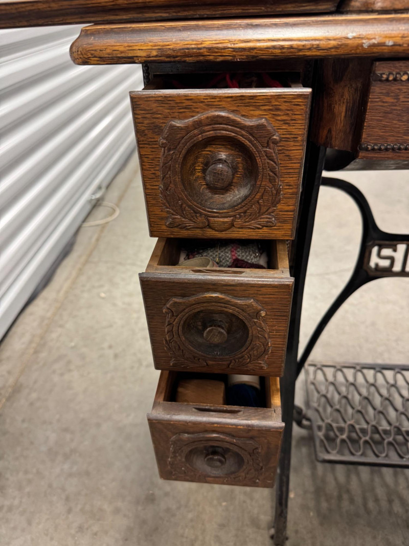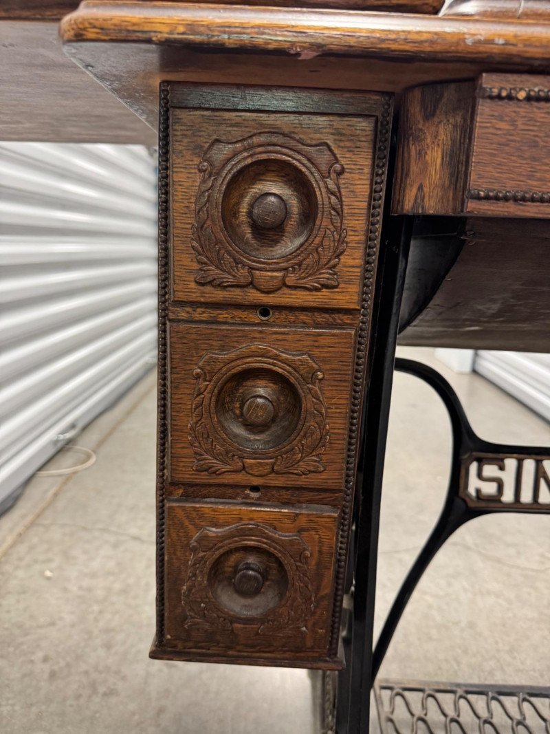 Antique Singer Treadle Sewing Machine w/ Drawers & Cabinet 1900–1910. Bidding on this lot is an agreement that: (1.) You will have at least 2 capable, able bodied persons to lift and load at a minimum. (2.) You will bring a hand truck and/or any other tools needed to remove this item. If these steps are not followed your item will be forfeit and no refund given.