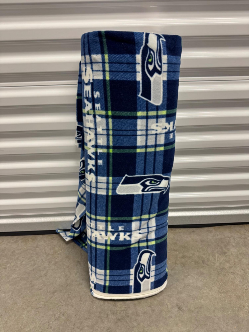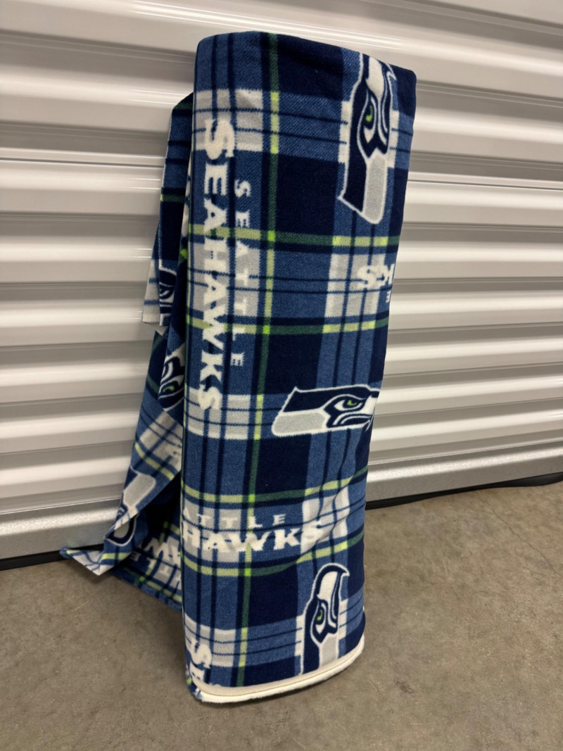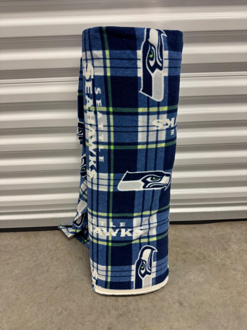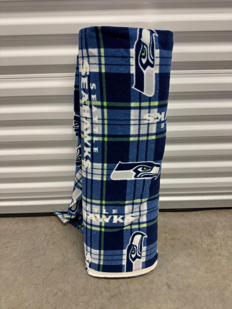 Lot # 91 - NFL Seattle Seahawks Blue Plaid Fleece Throw Blanket/Fabric