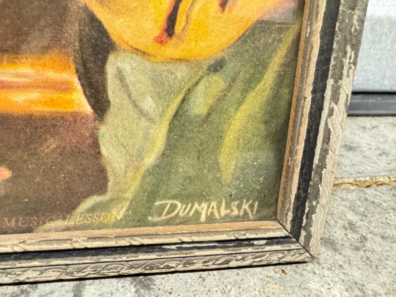 Lot # 96 - First Music Lesson by Dumalski – Framed Print, Girl & Man at Piano