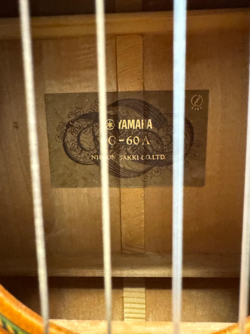Yamaha G-60A Classical Guitar – 39" w/ Case, Natural Finish. Guitar dimensions: 14 1/2" wide (base), 39" long
