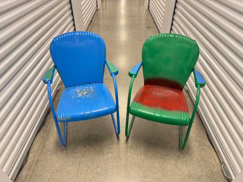 Pair of Vintage Metal Lawn Chairs – Viktor Schreckengost Style.