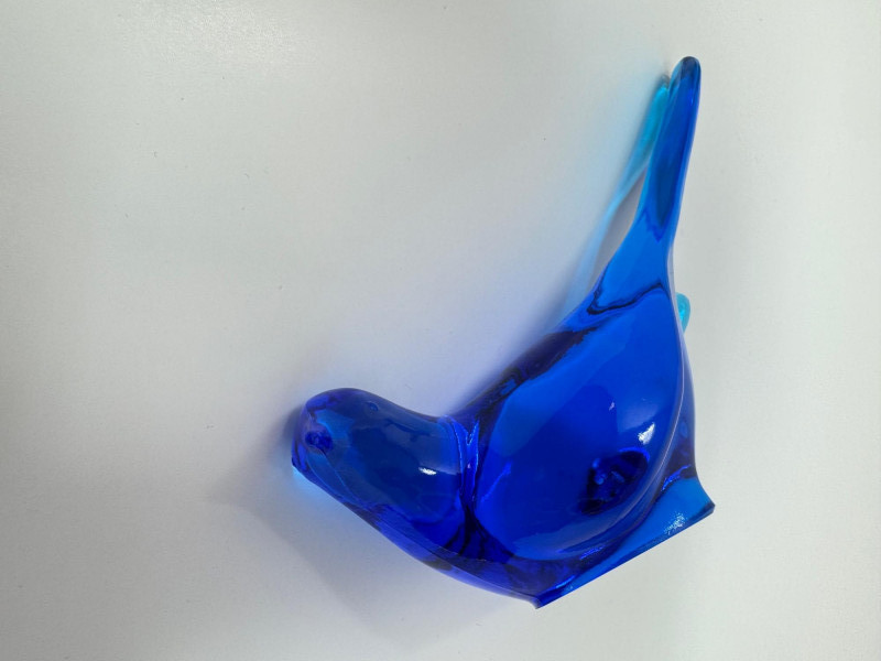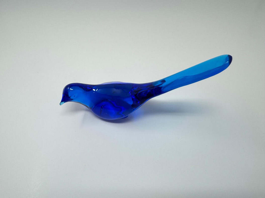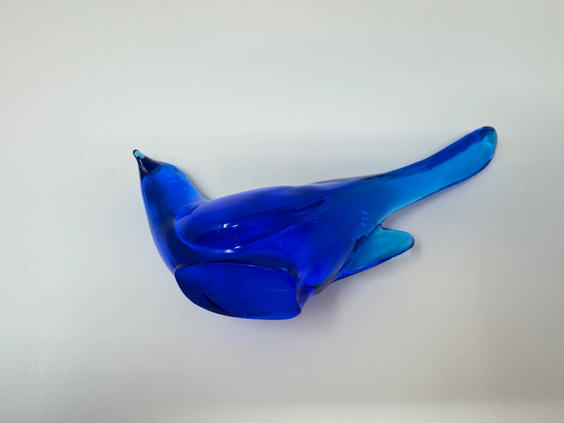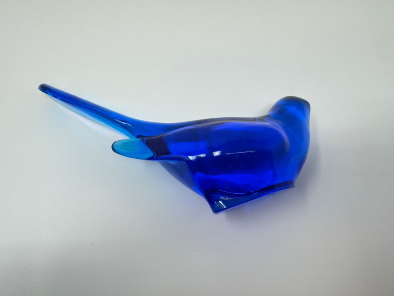 Fenton-Style Cobalt Blue Glass Bird Figurine – Heavy Art Glass.