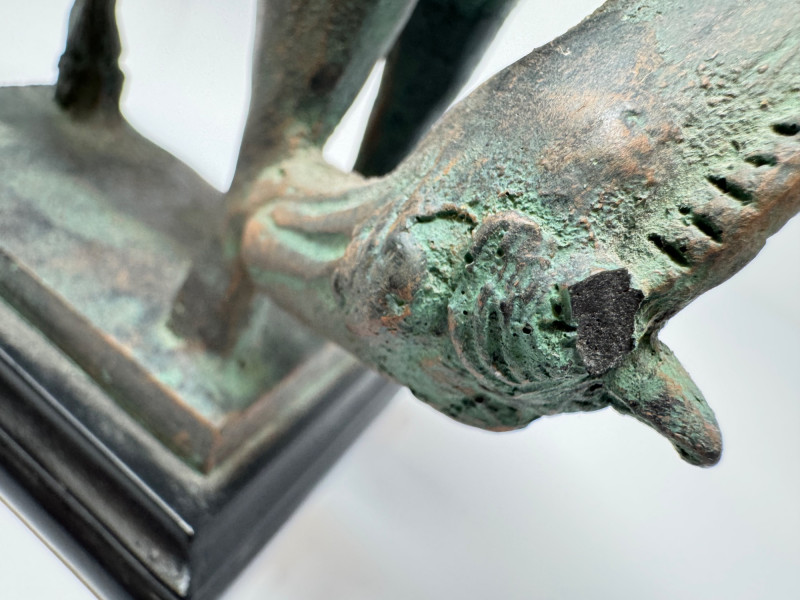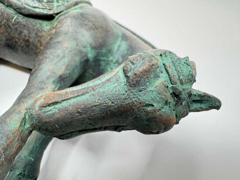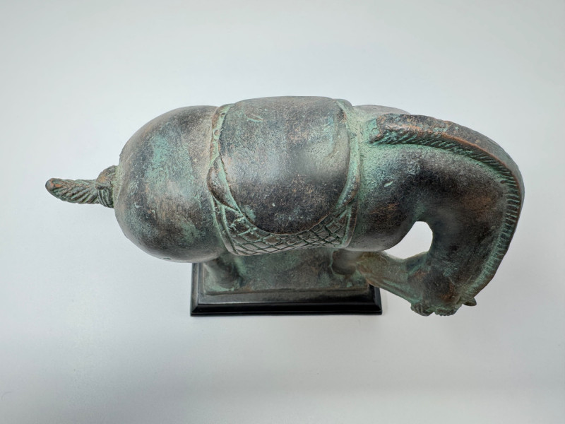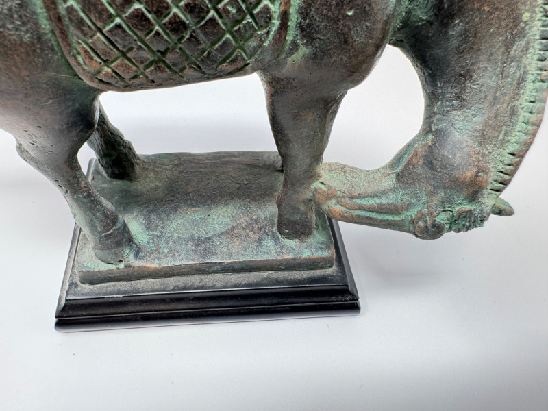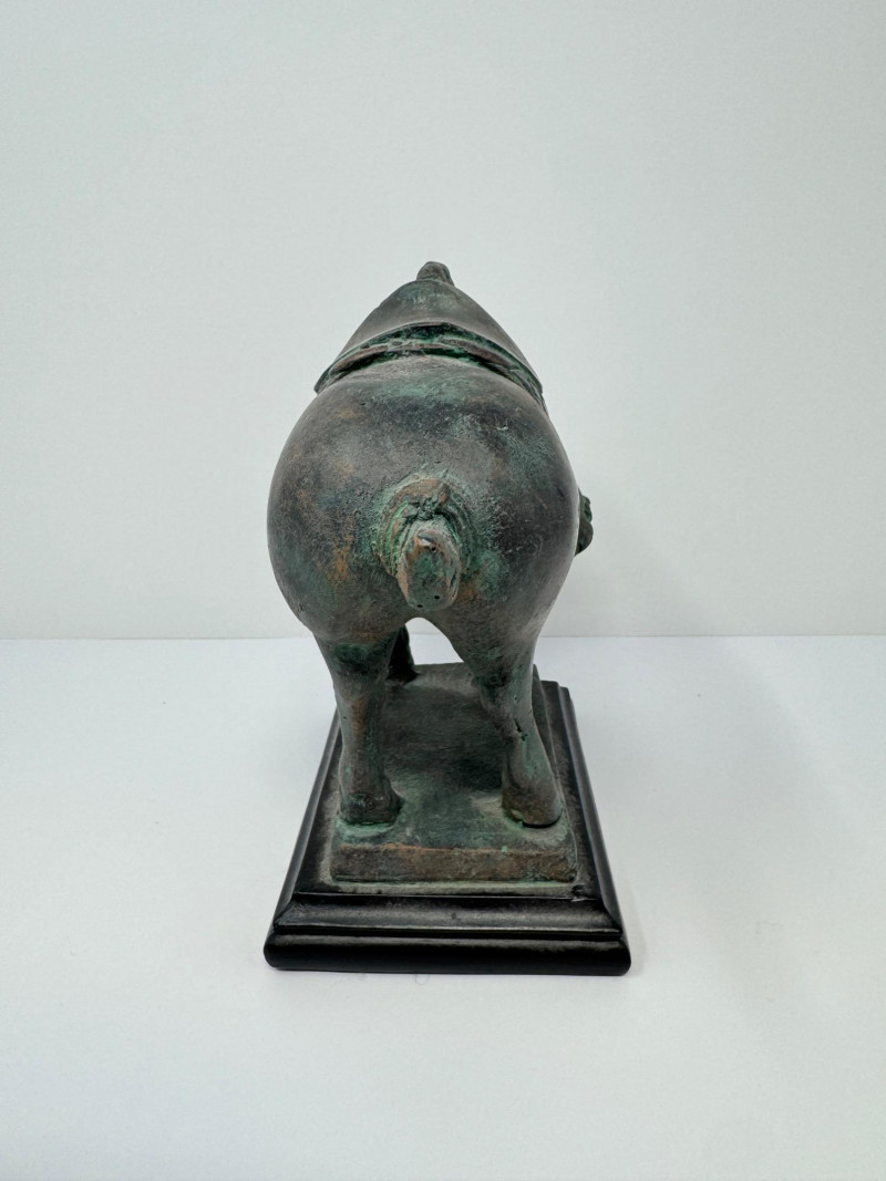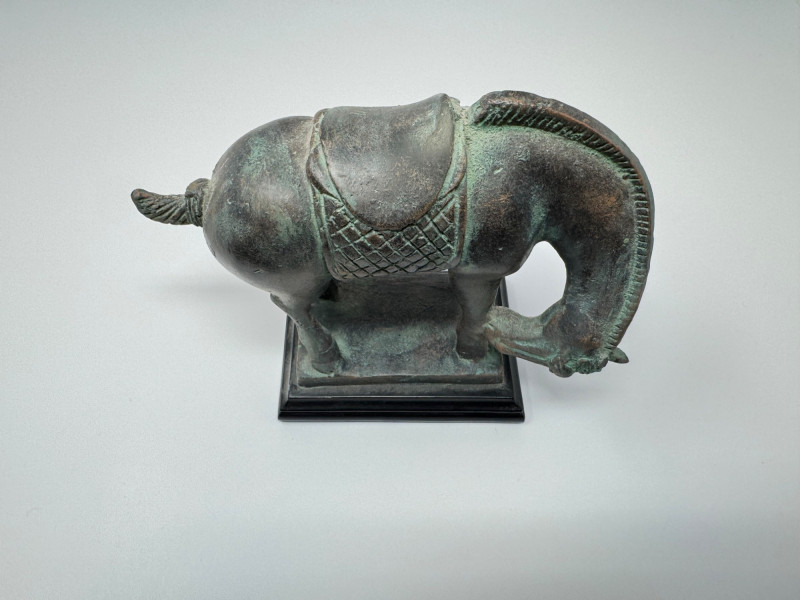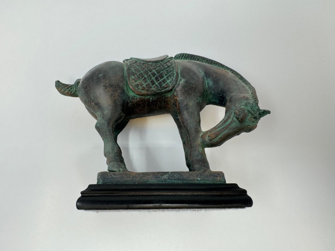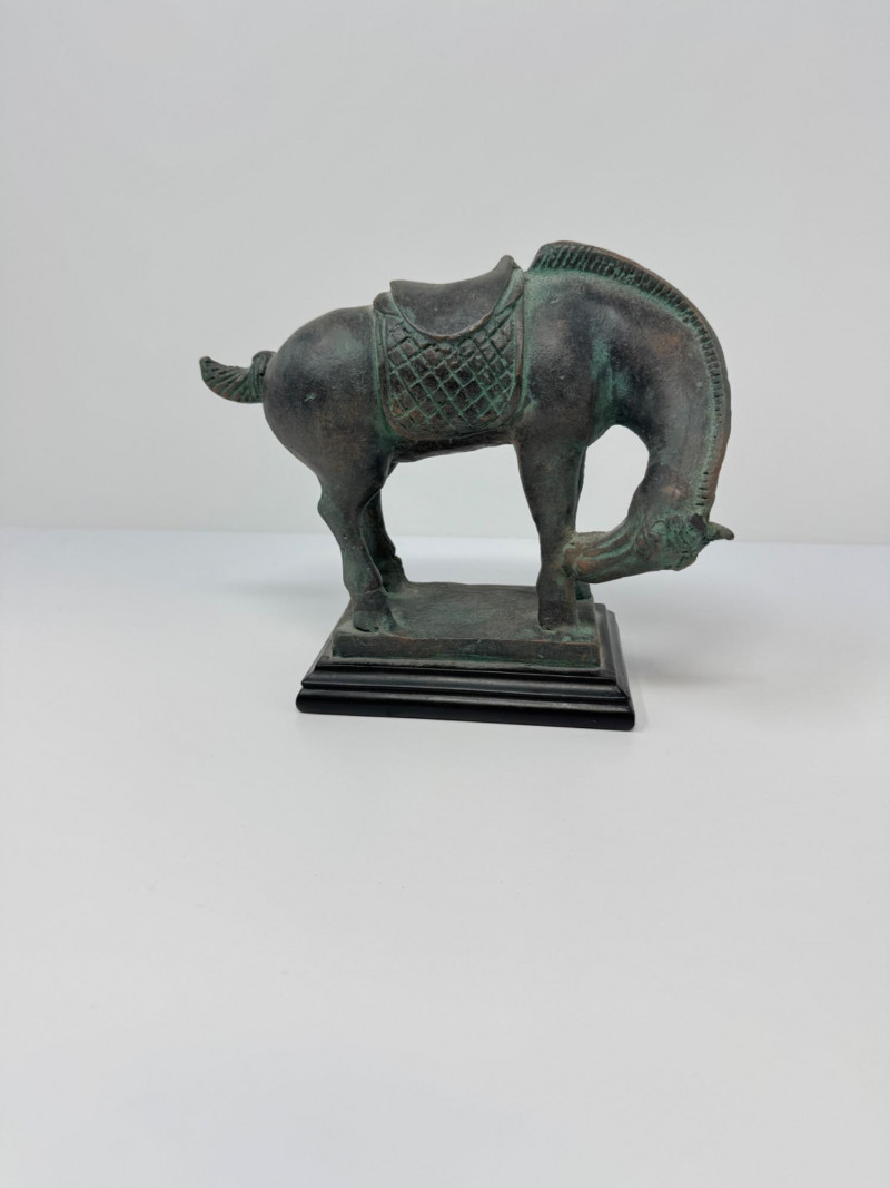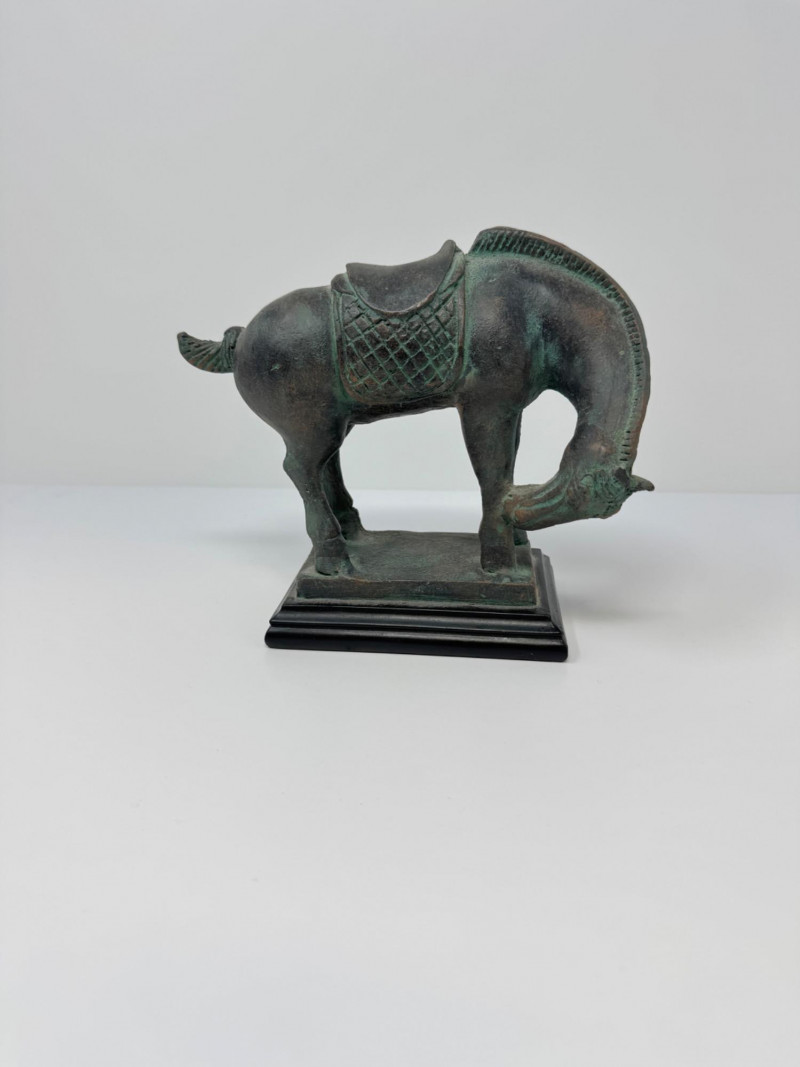 Horse Sculpture w/ Saddle – Green Patina, Stone/Concrete-Like.