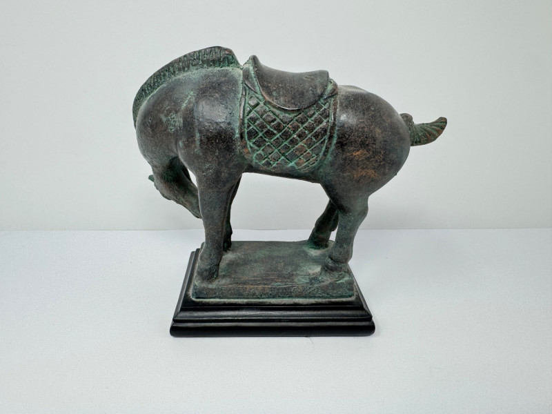 Lot # 117 - Horse Sculpture w/ Saddle – Green Patina, Stone/Concrete-Like