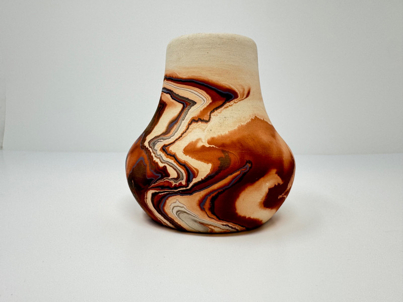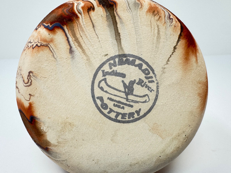 Nemadji Indian River Pottery Swirl Vase. Measures approx. 5" H x 5" W