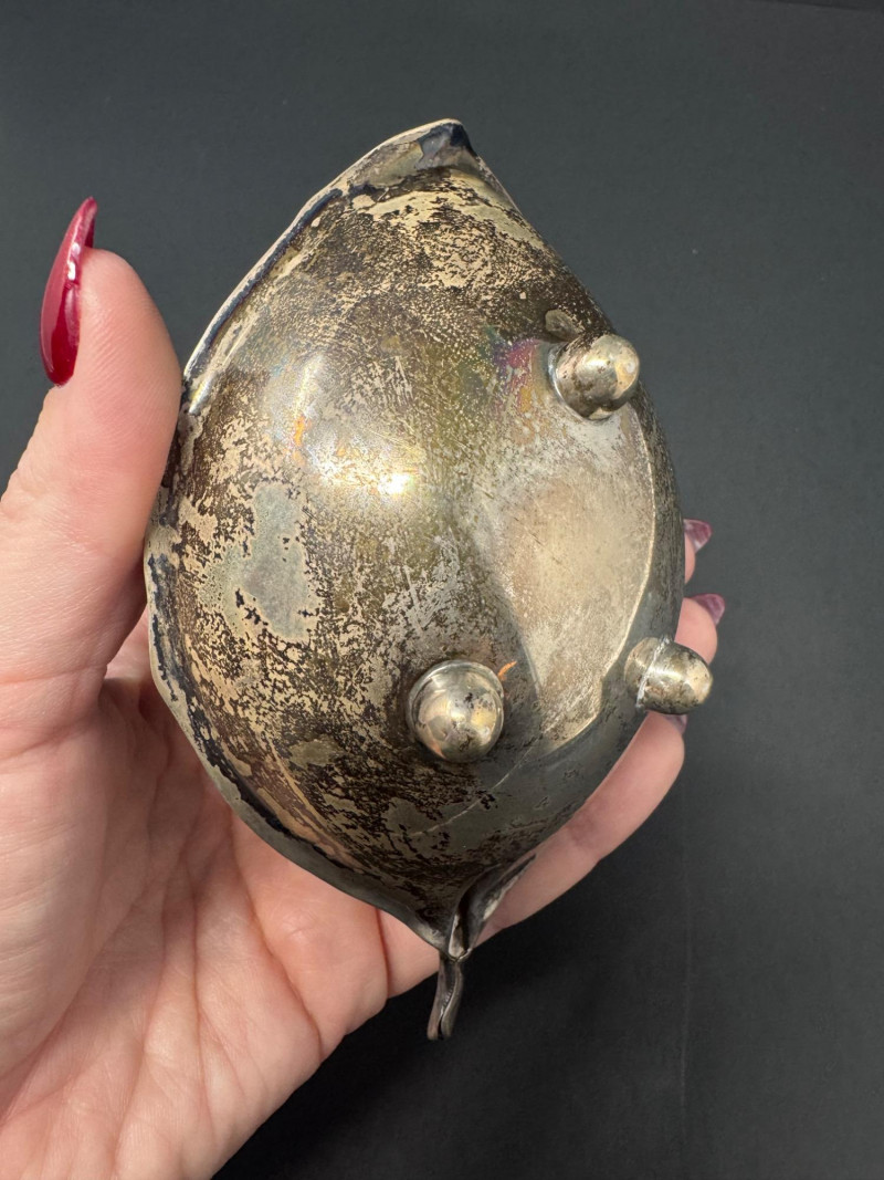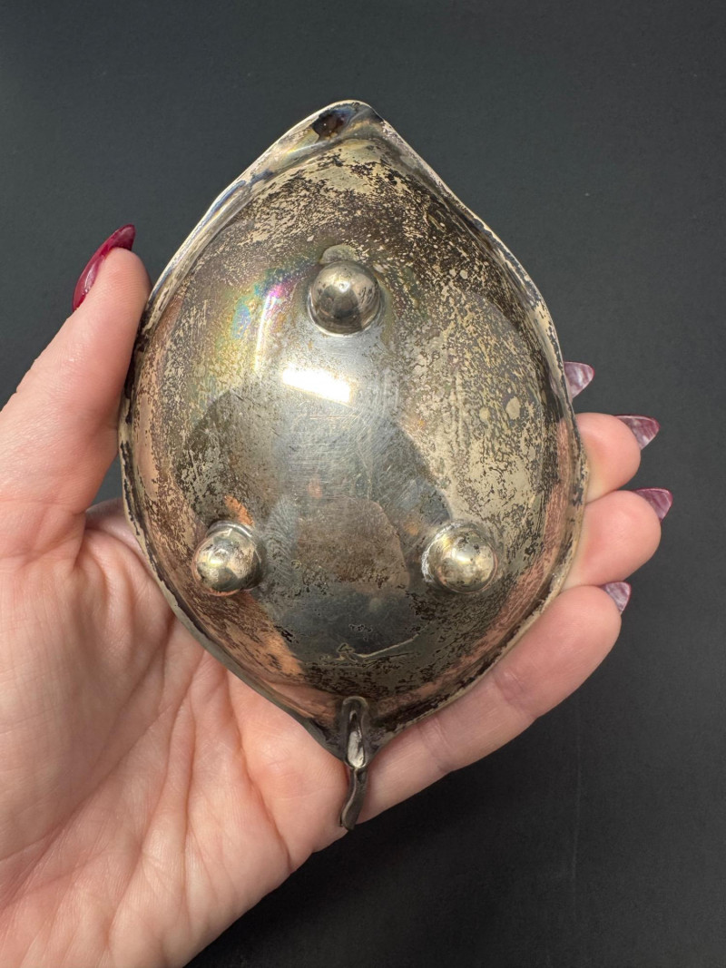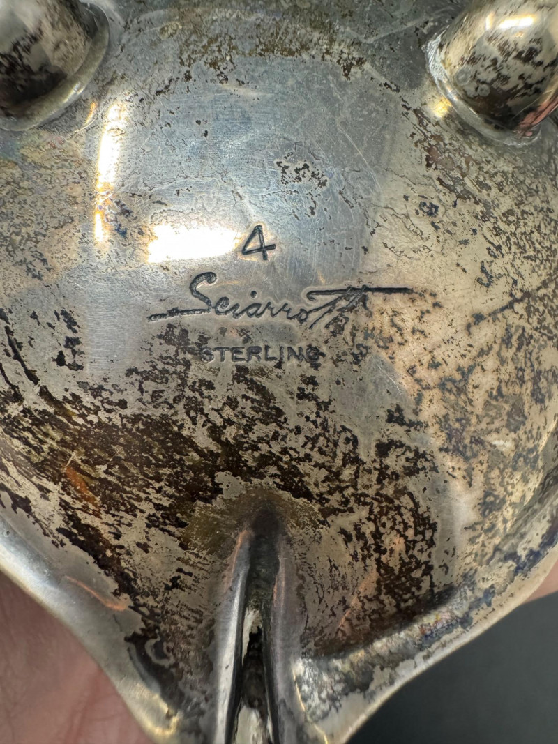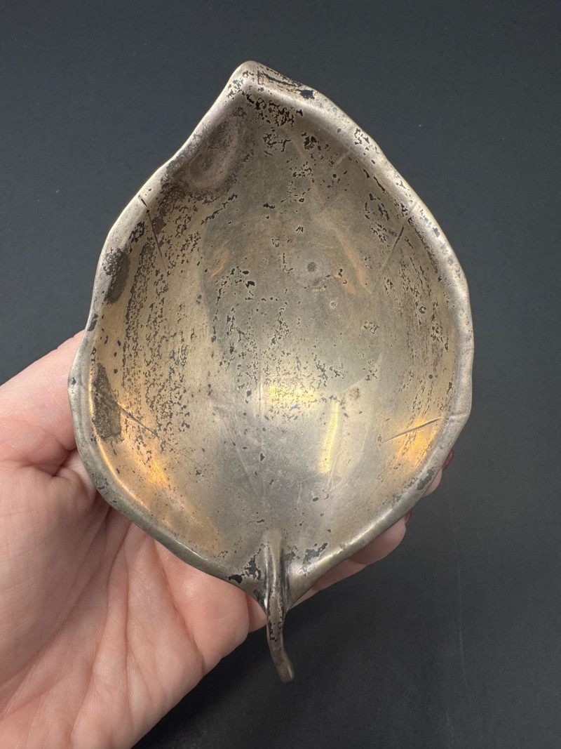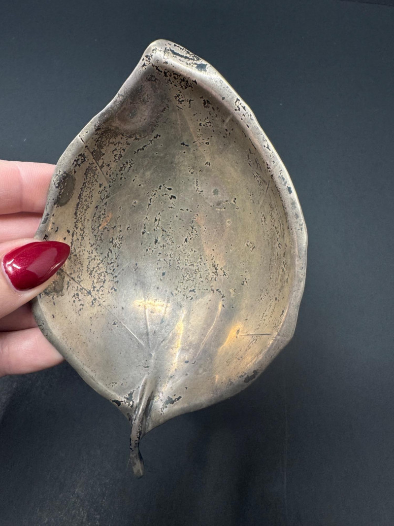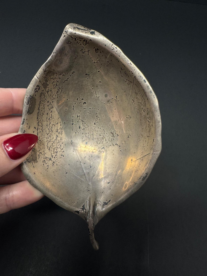 Vintage Alfredo Sciarrotta Sterling Silver Leaf Dish Bowl – 64.47g. Disclaimer: Metals are not tested. All items are sold as is with no guarantees on metal content or purity. No refunds based on metal quality.