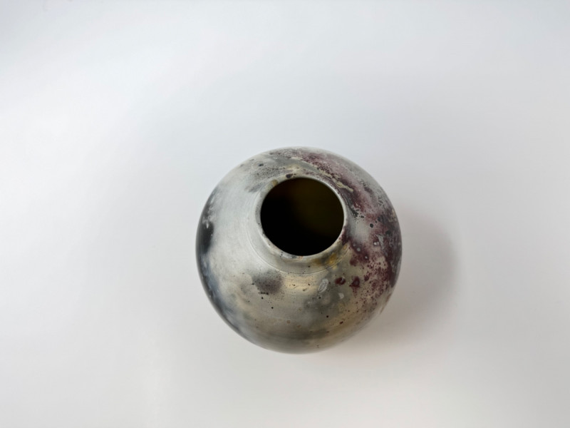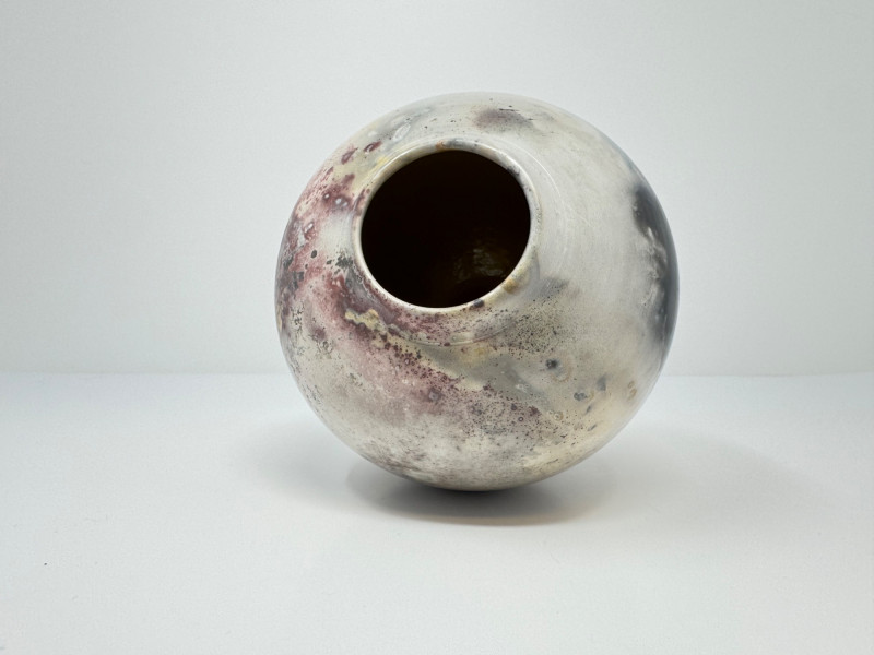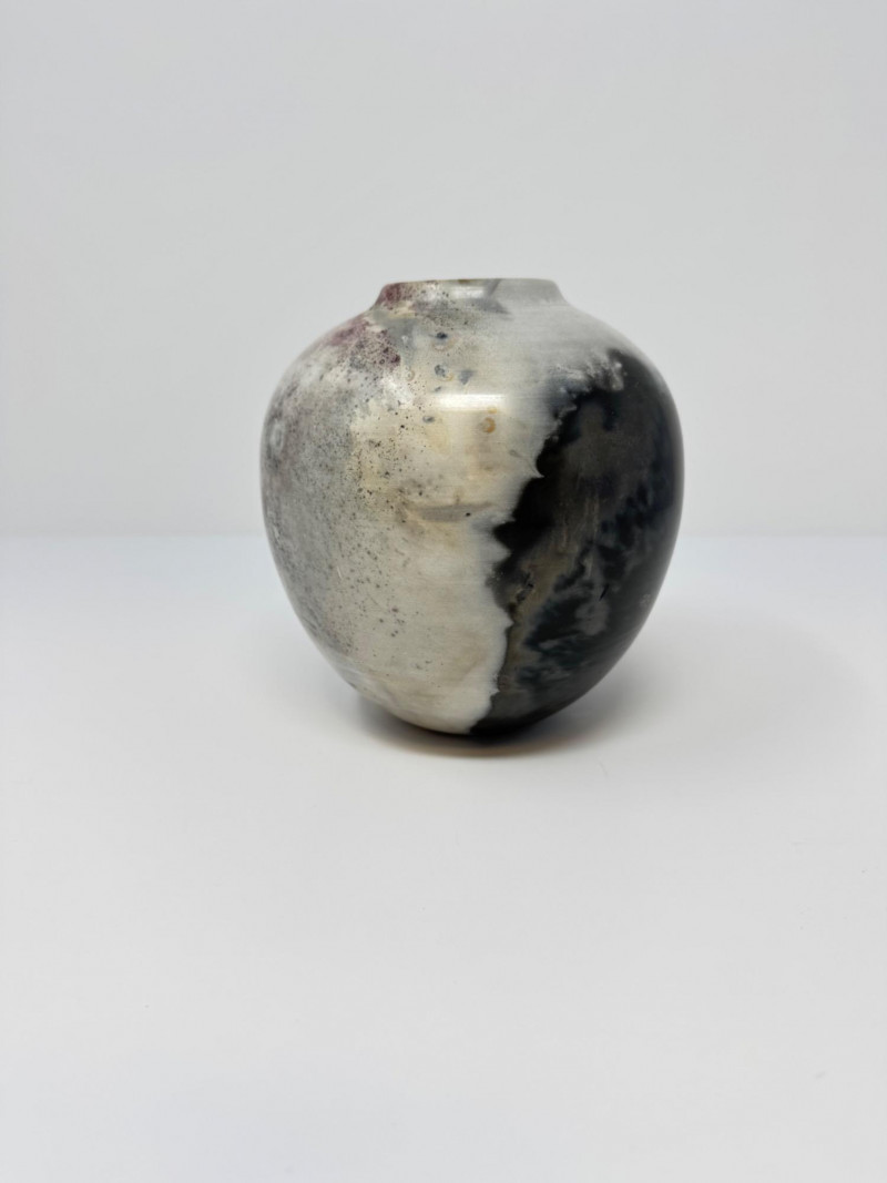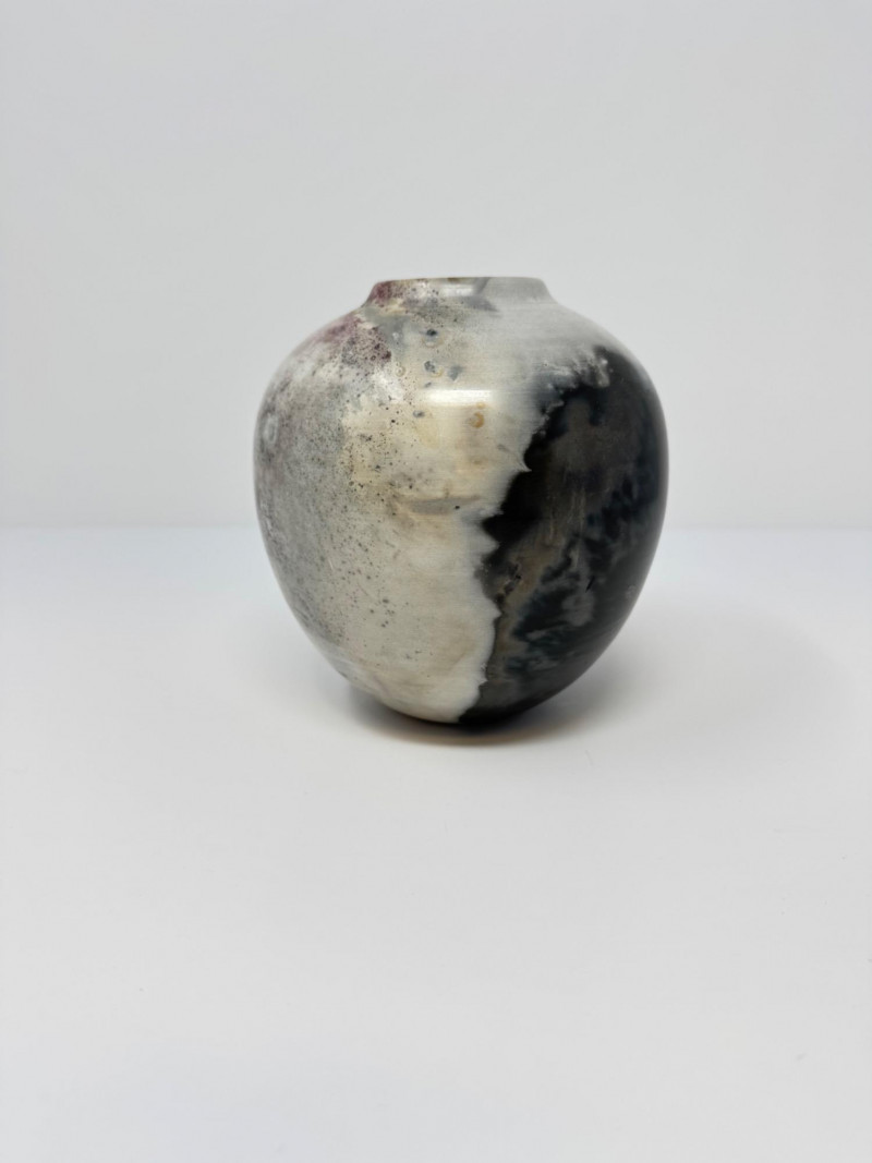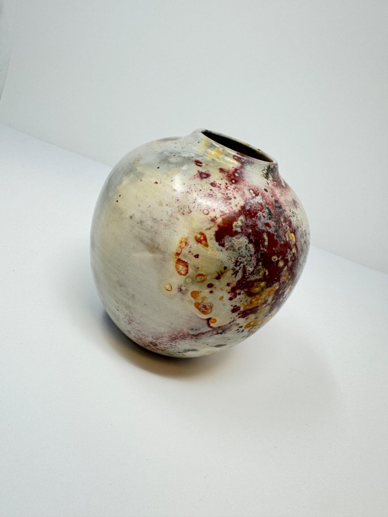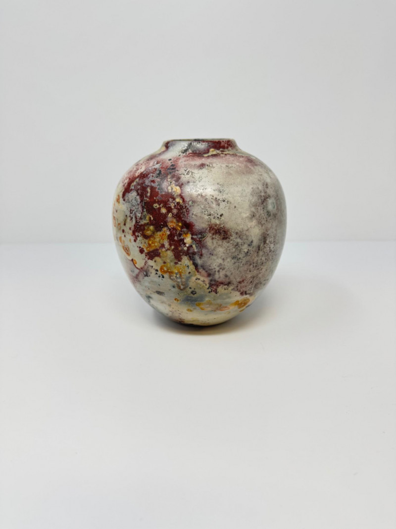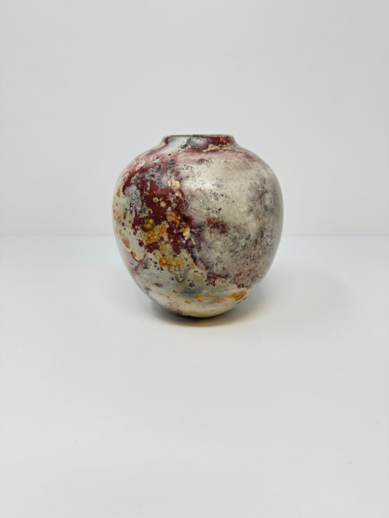 Porcelain Raku-Style Vase w/ Multicolor Abstract Glaze.