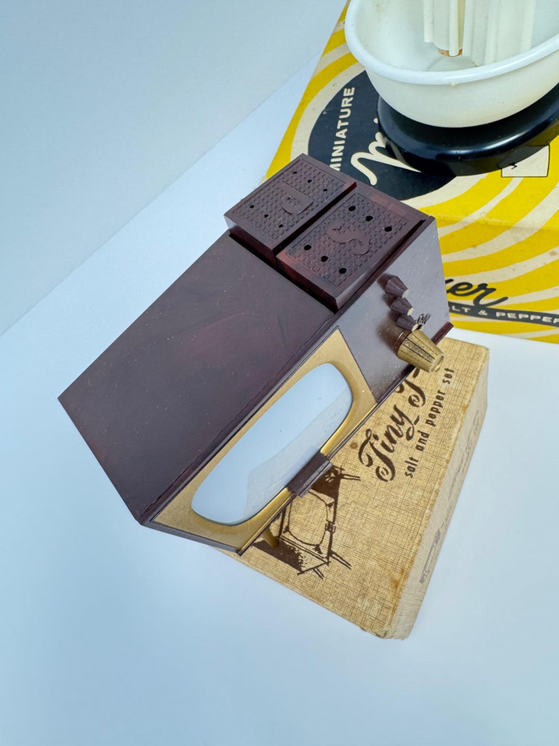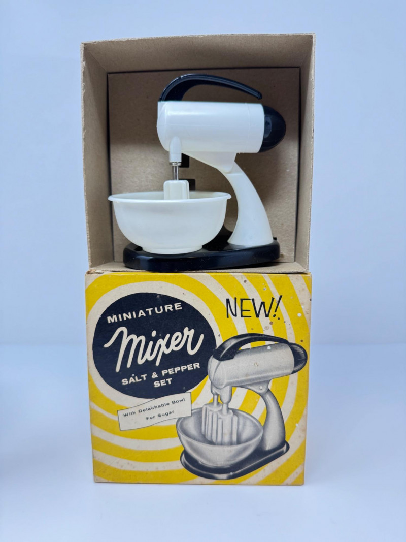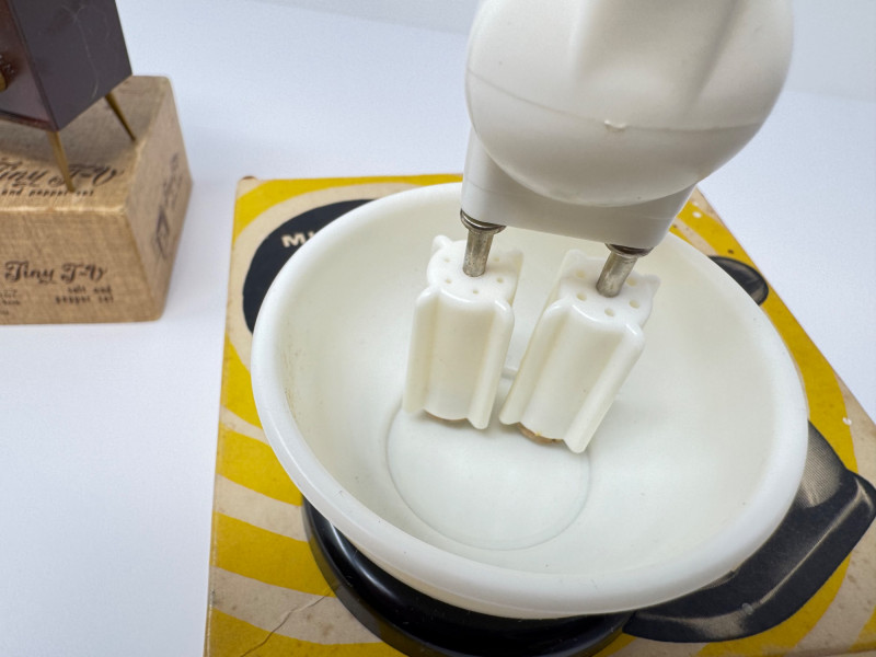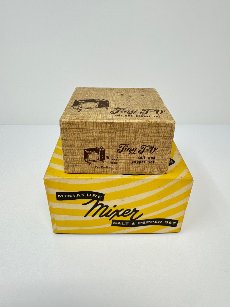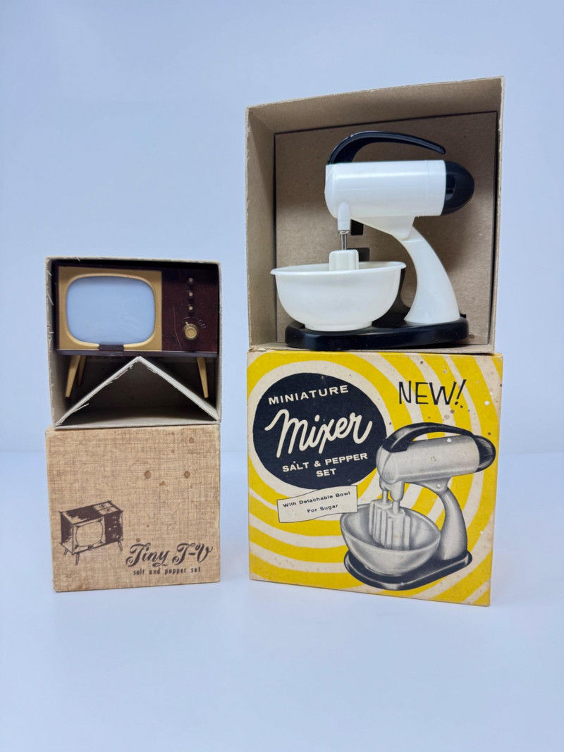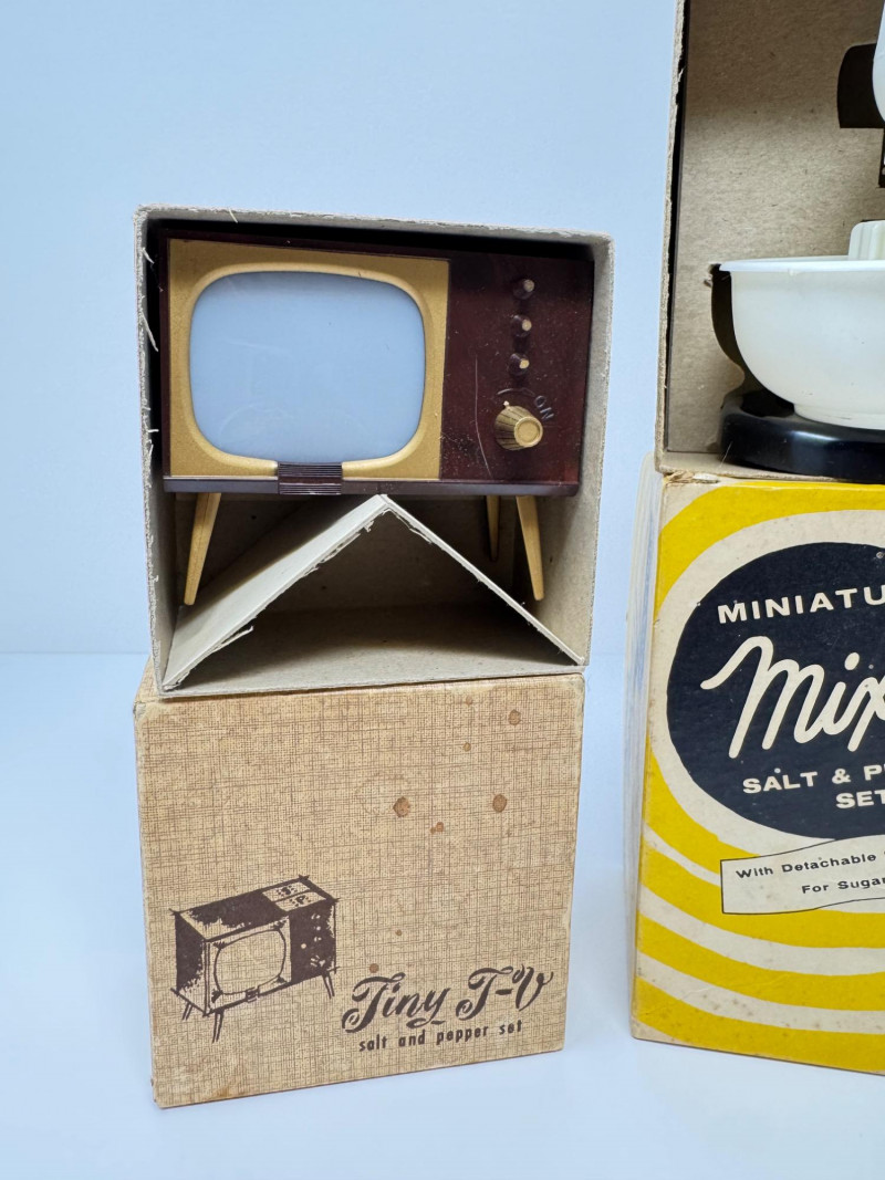 Vintage Miniature Salt & Pepper Shakers – Mixer & TV Sets w/ Boxes.