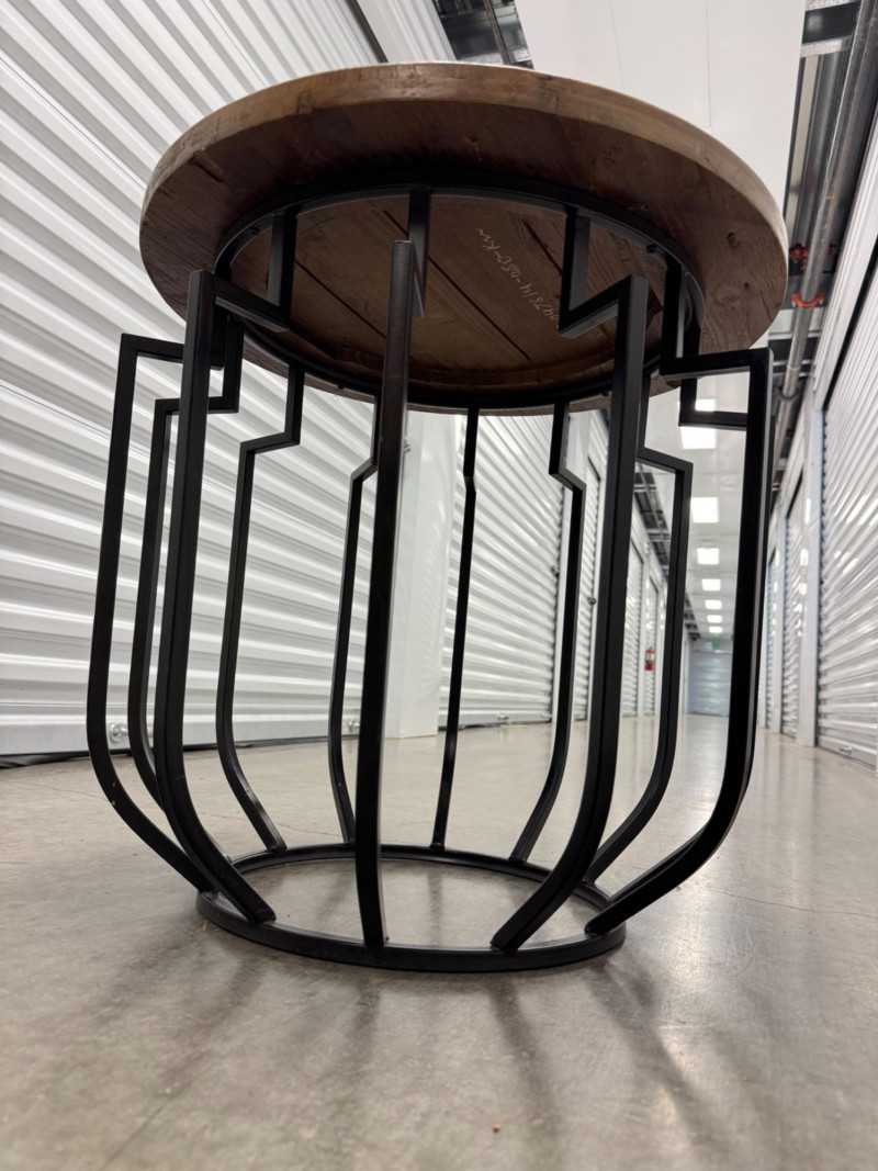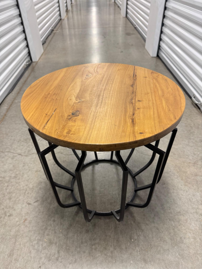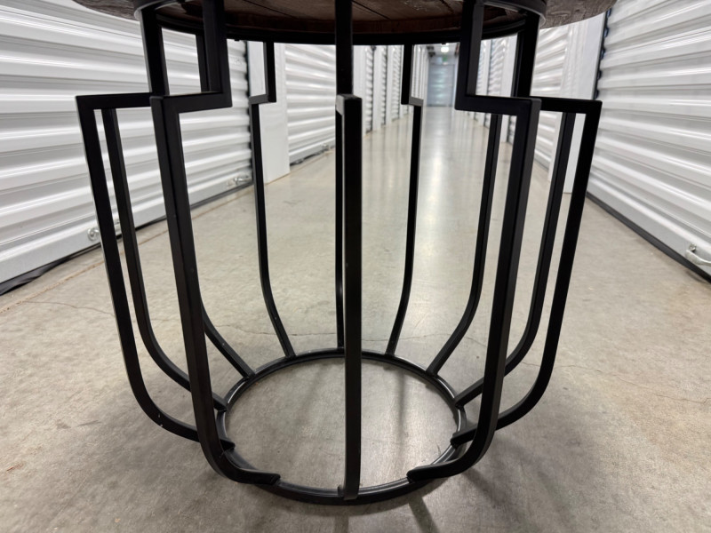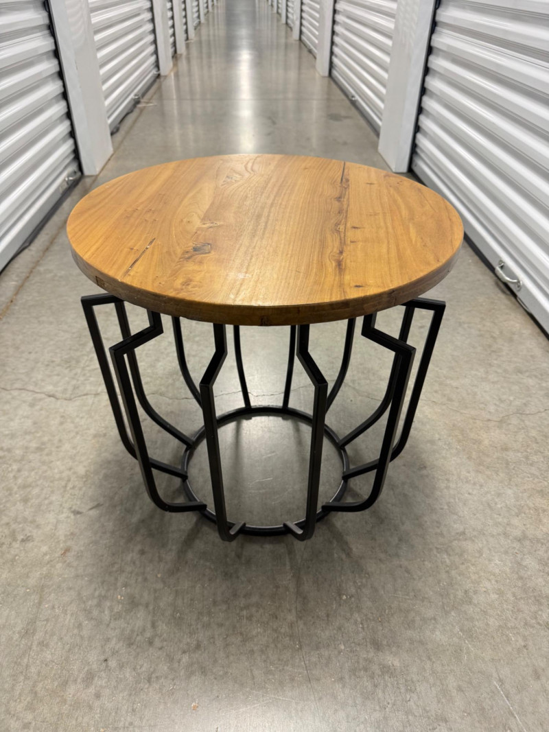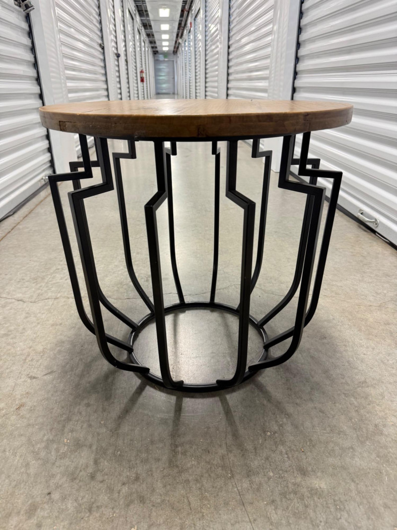 Round Wood Side Table w/ Geometric Black Metal Base. Measures 22" in diameter x 22" tall