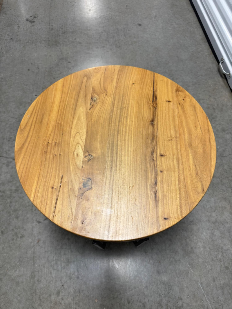 Lot # 130 - Round Wood Side Table w/ Geometric Black Metal Base