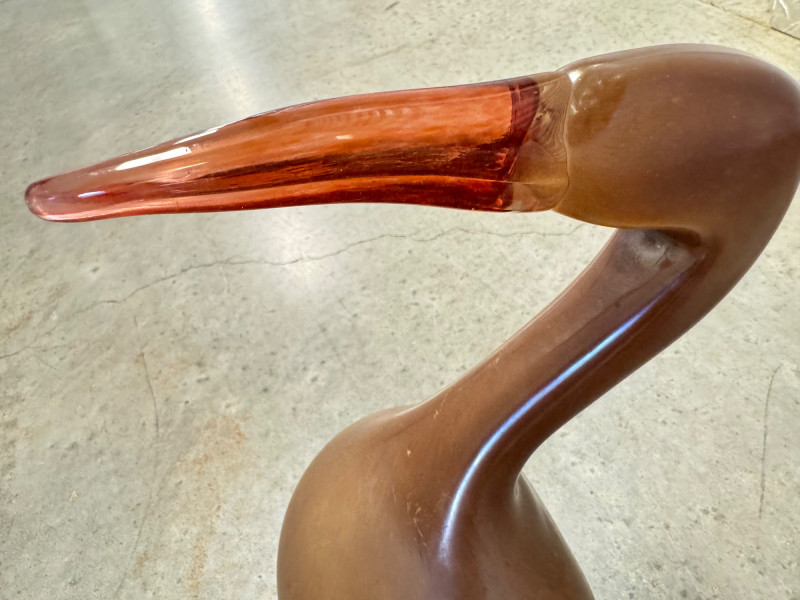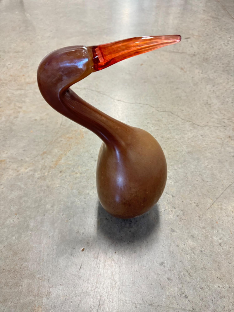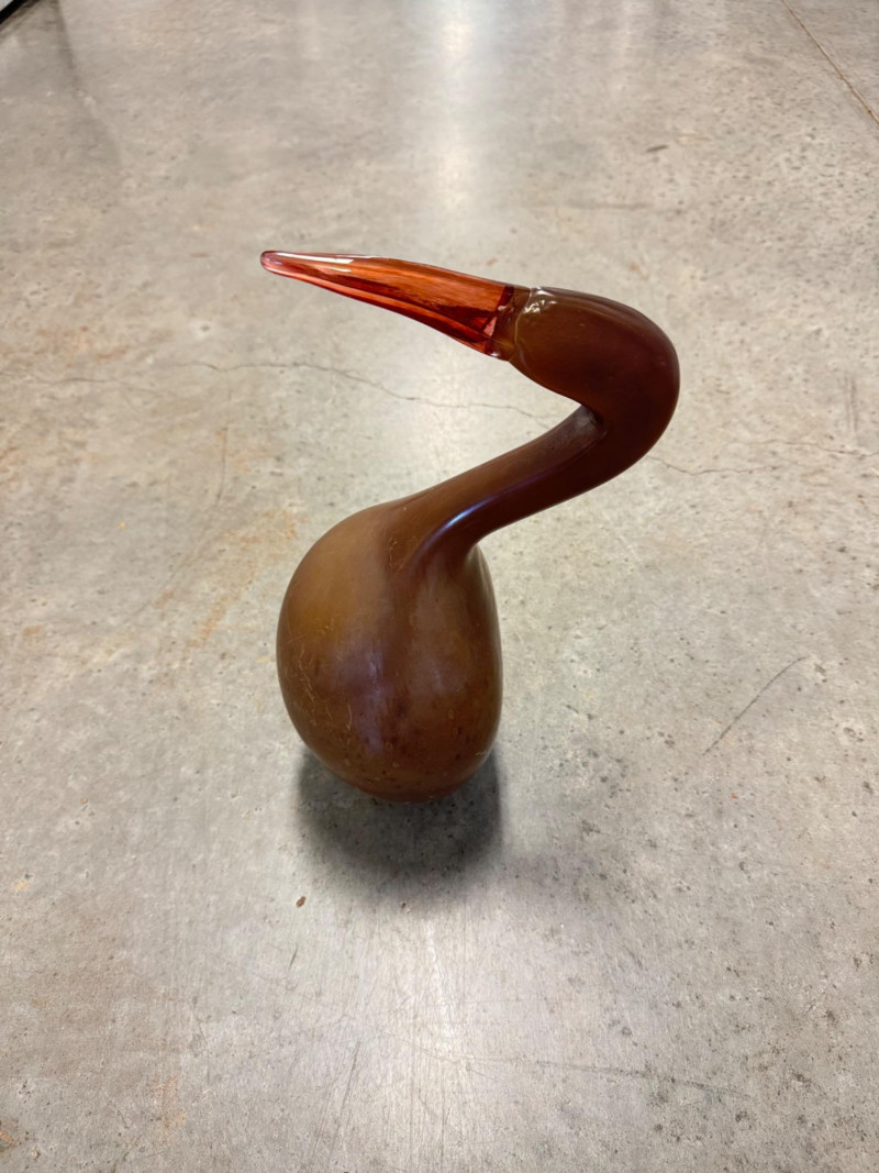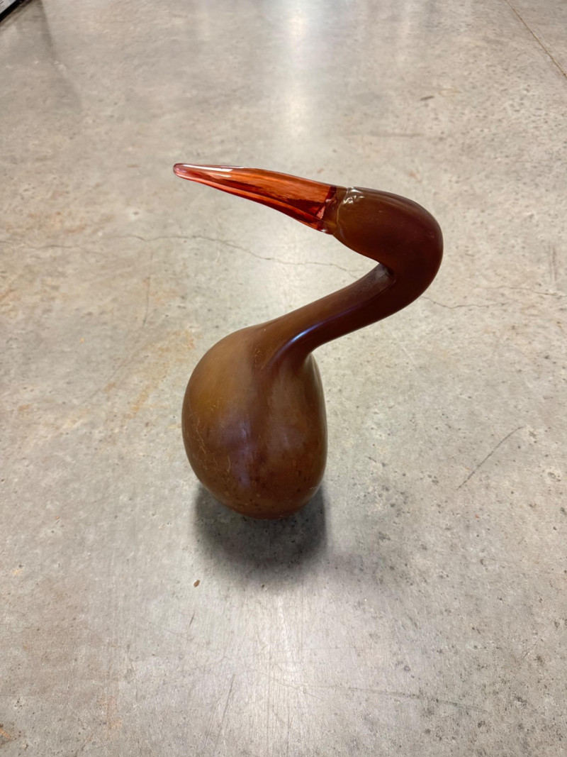 Unique Heavy Copper & Glass Swan Art Sculpture – 14" Tall.