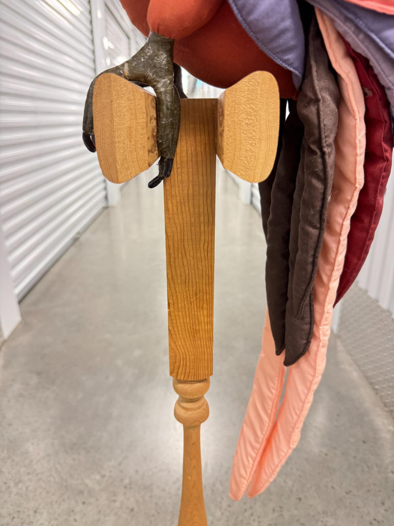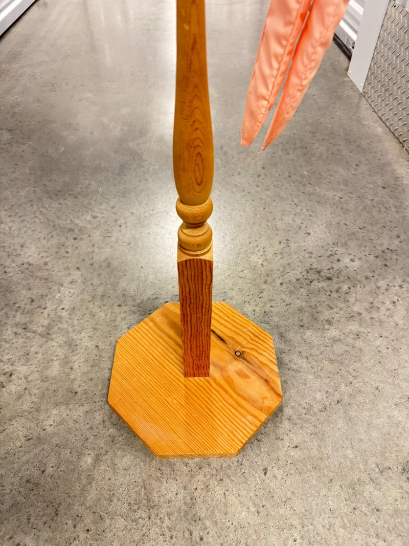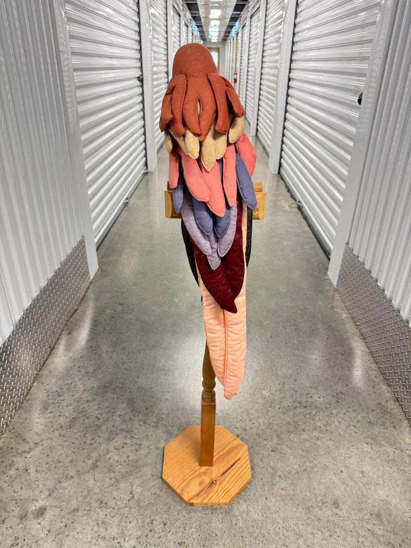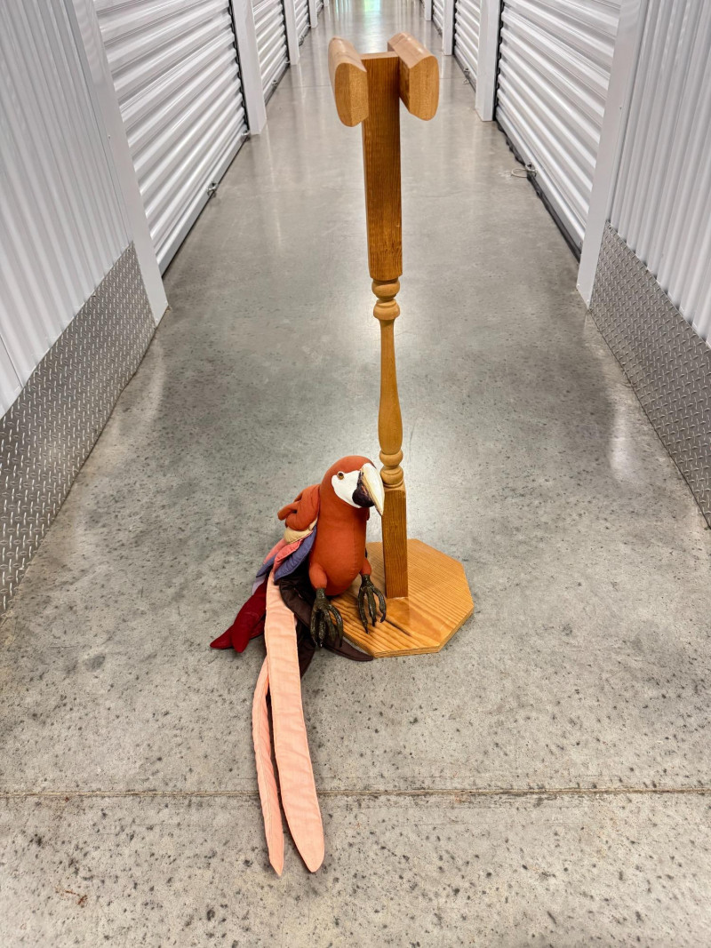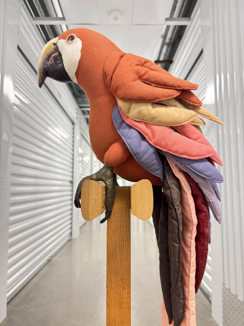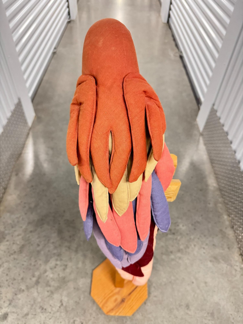 Fabric Parrot Art Sculpture on Wooden Stand – 48” Tall. This parrot artwork was created by a local Pacific Northwest artist and purchased at a local art fair.