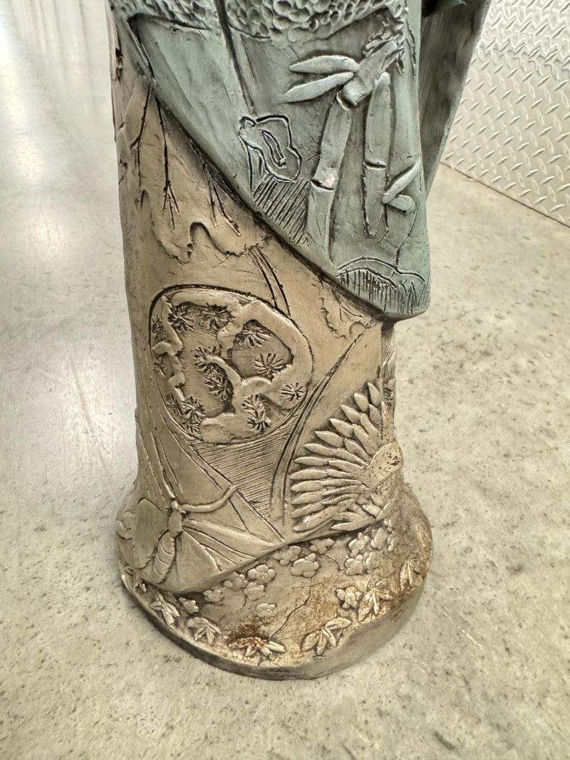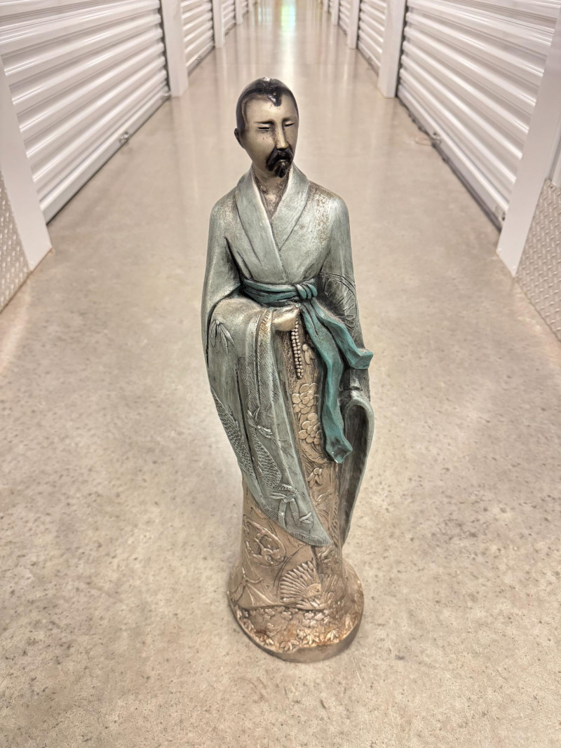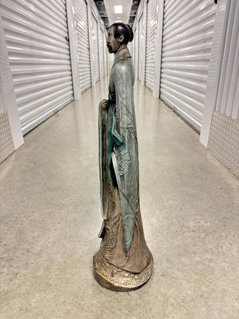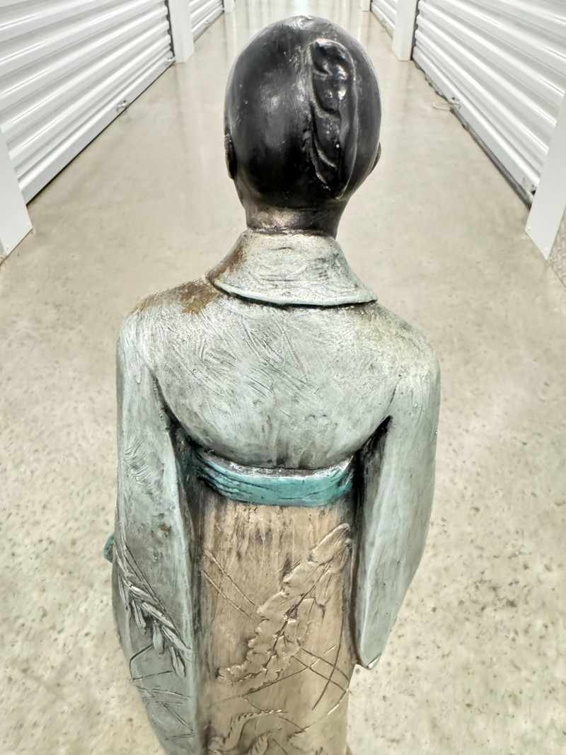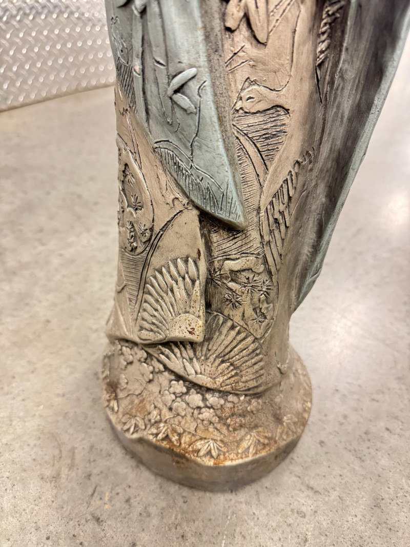 Yashima Gakutei “Shinto” Metallic Samurai Sculpture - Signed. Dimensions: approx. 27.5" tall x 8" wide.