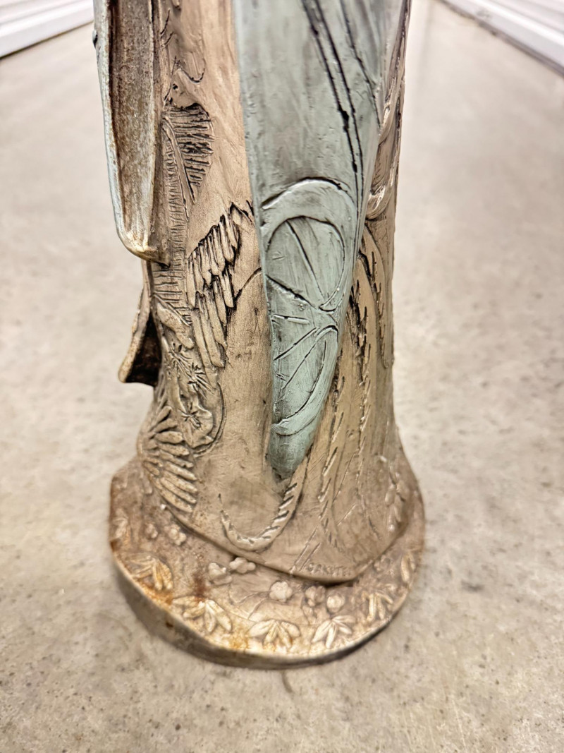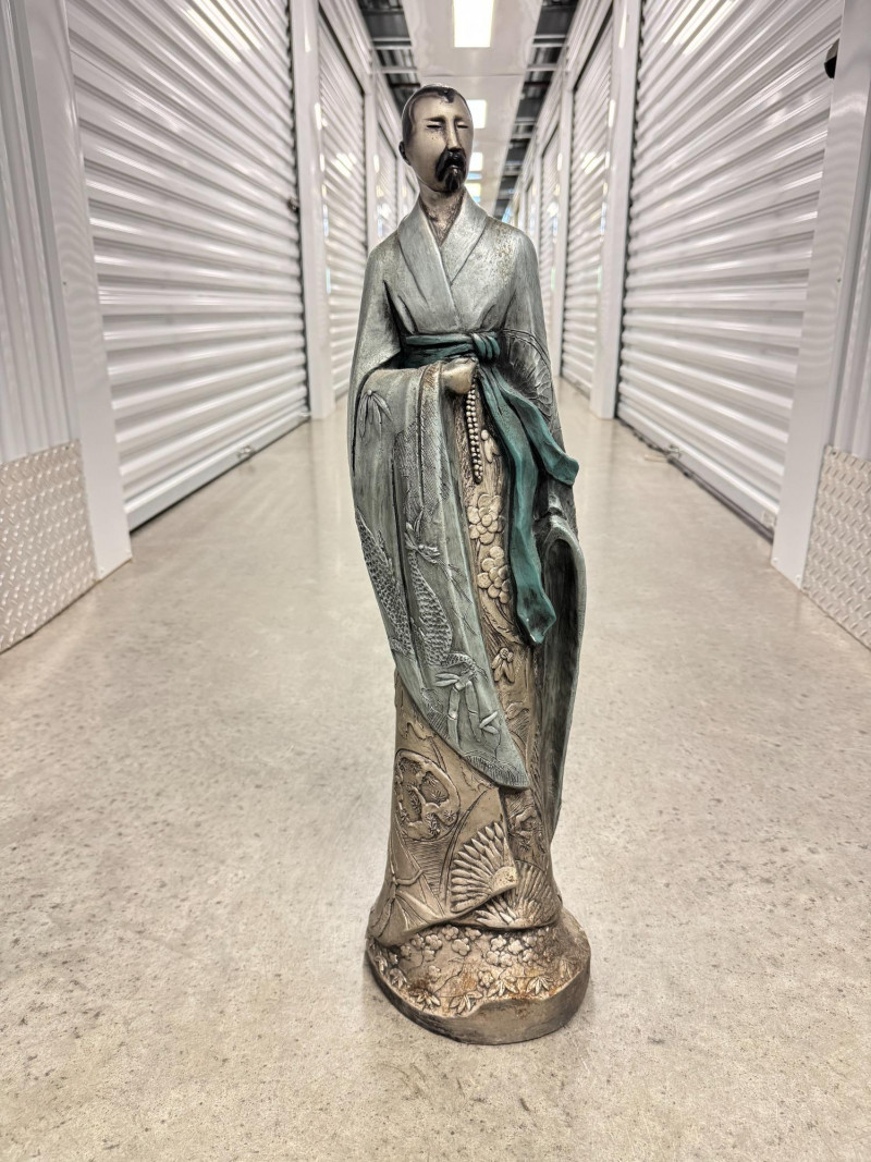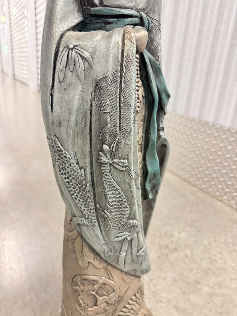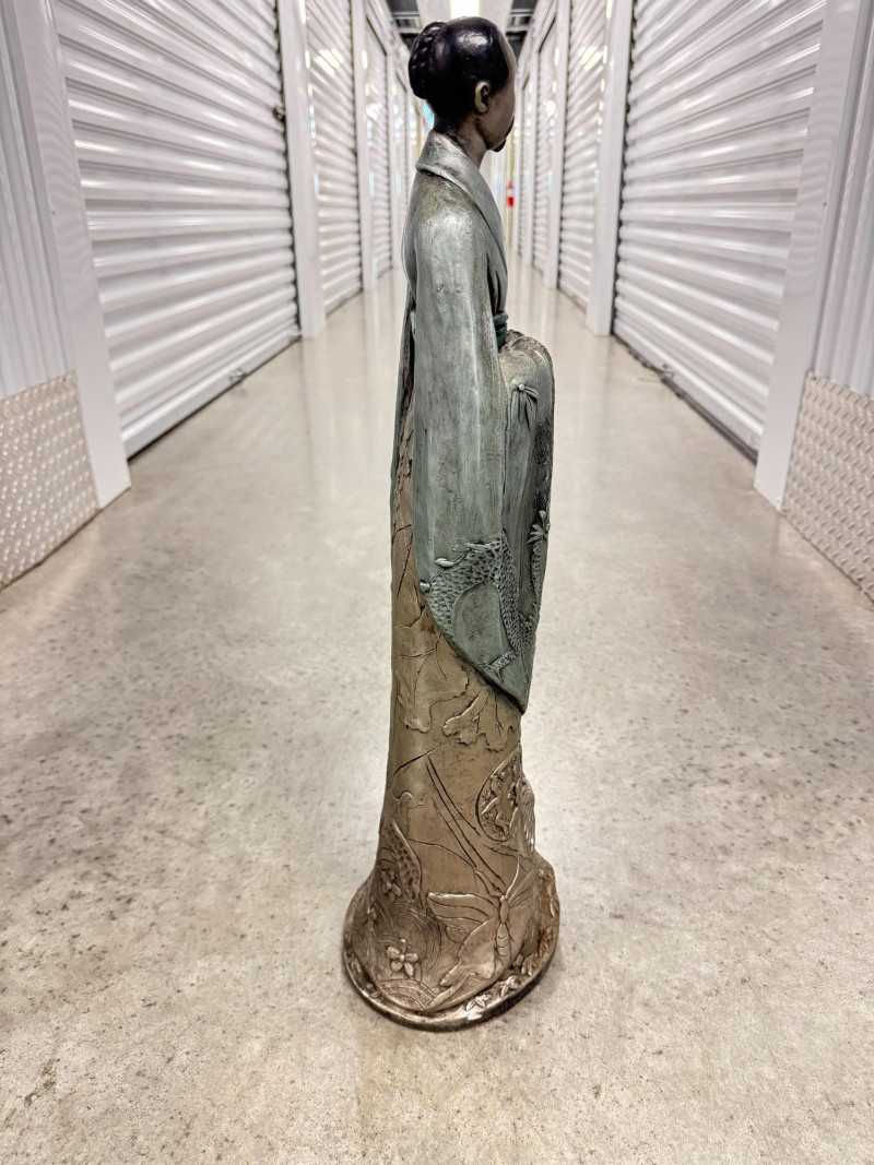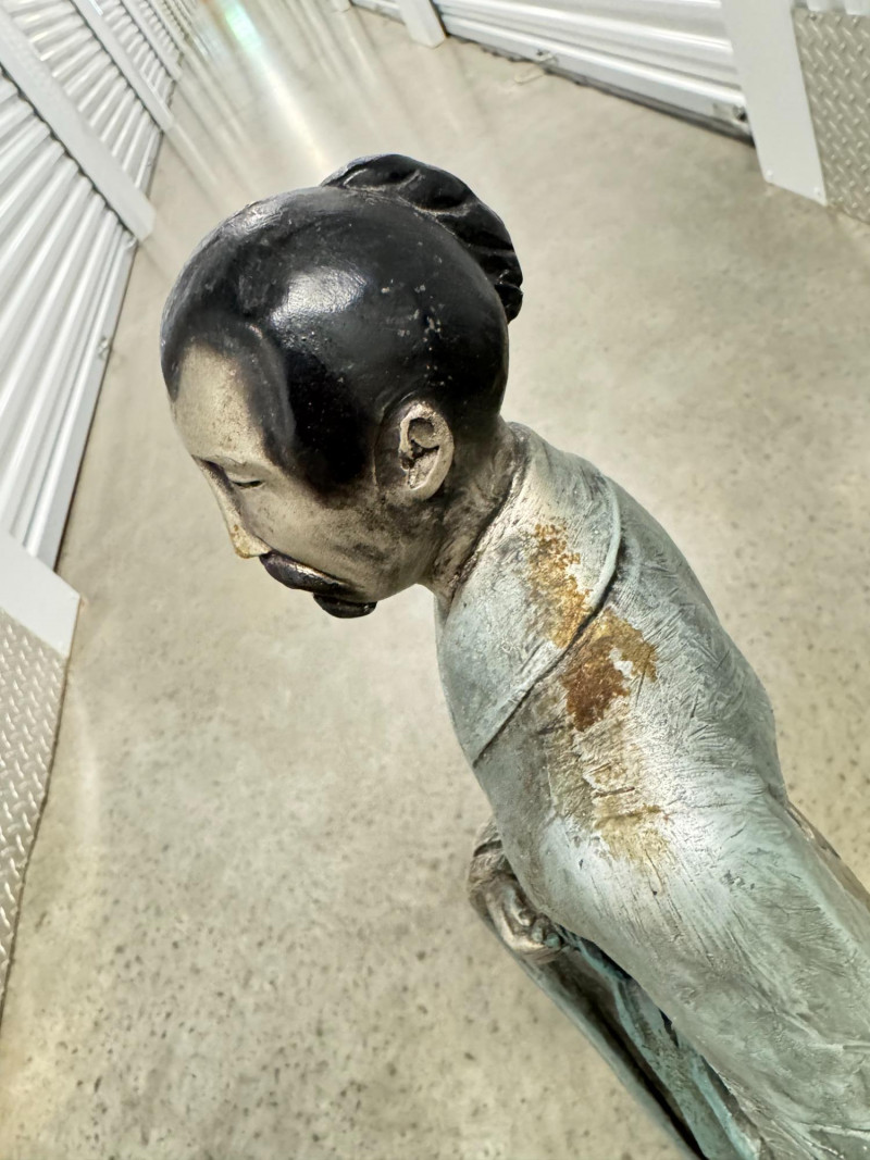 Yashima Gakutei “Shinto” Metallic Samurai Sculpture - Signed. Dimensions: approx. 27.5" tall x 8" wide.
