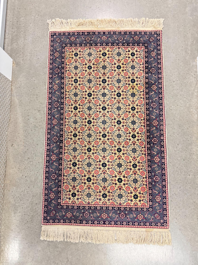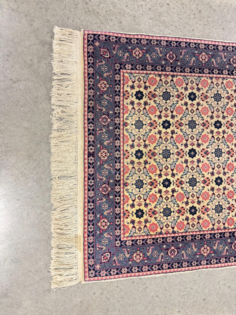 Machine-Made Wool Rug w/ Persian Isfahan-Style Floral Design.