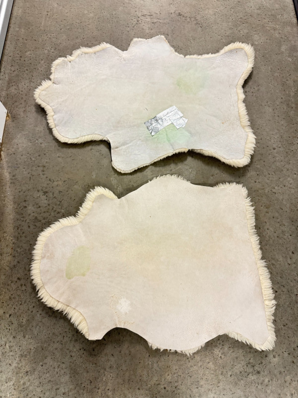 Set of 2 Sheepskin Rugs Natural White/Cream Tones. Disclaimer: Has slight stain and possible animal urine odor. Cleaning is recommended before use.