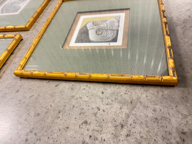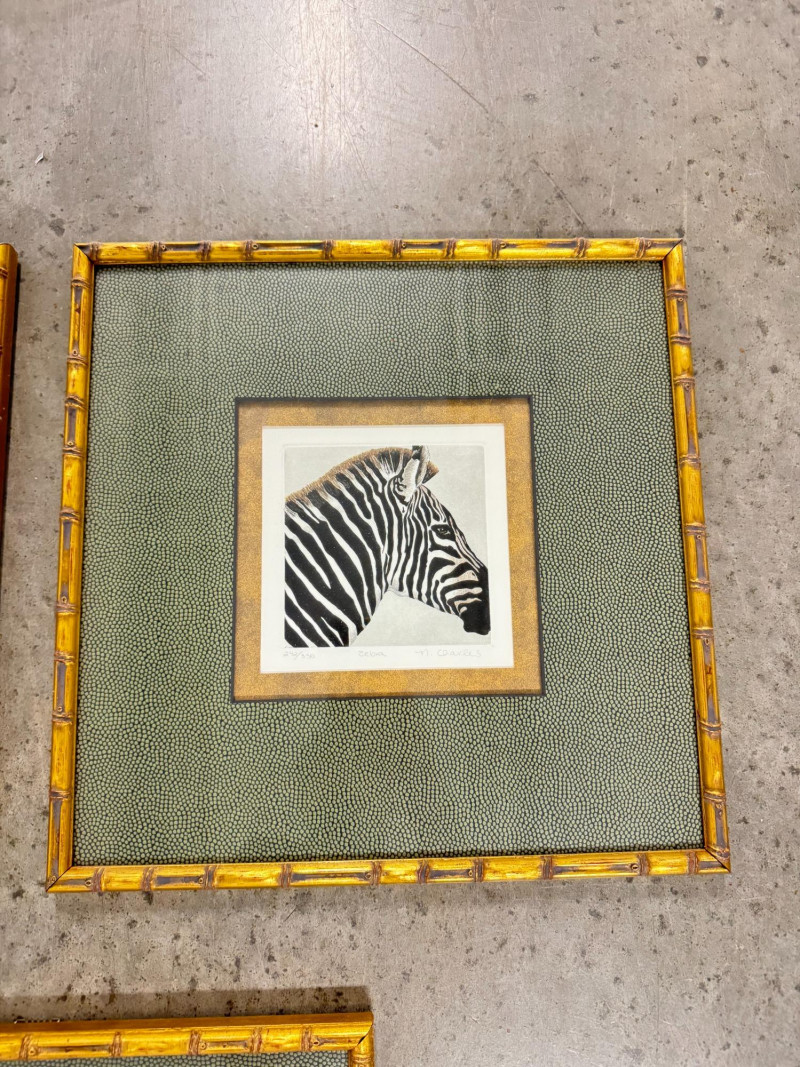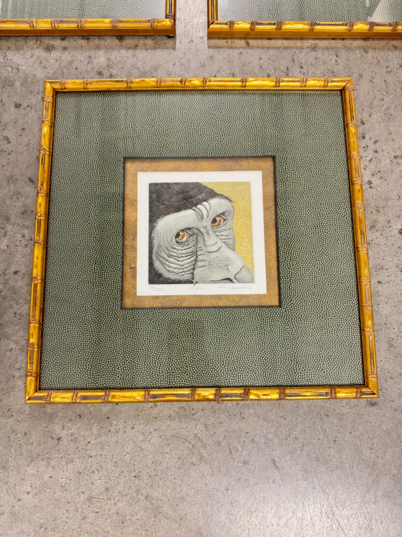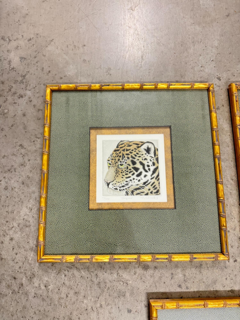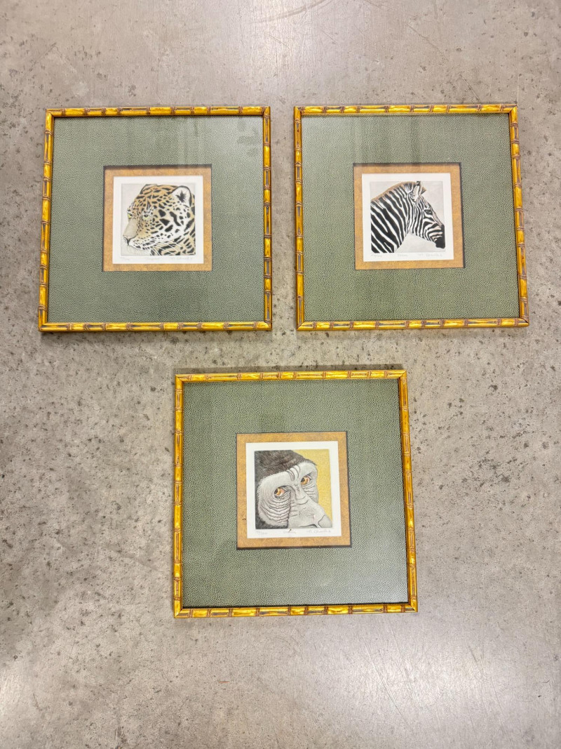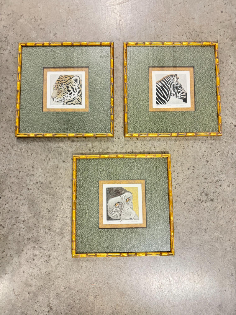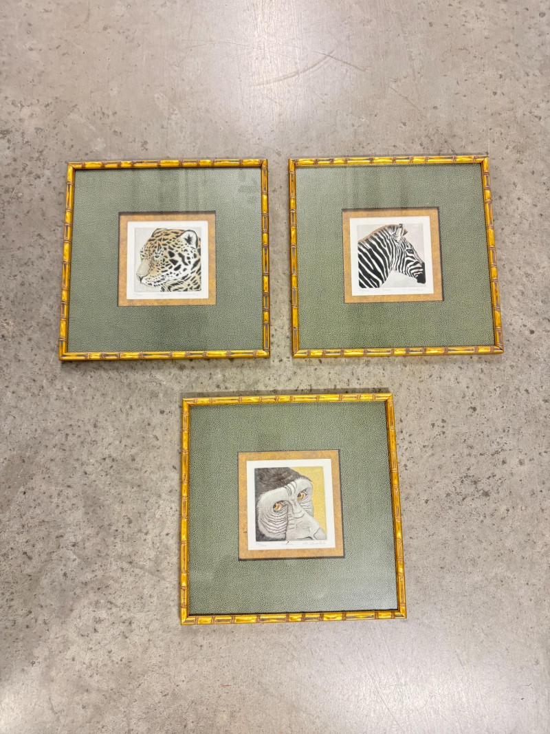 Set of 3 Charles NC2–NC4 Animal Prints (Jaguar, Zebra, Gorilla). Frame size: 14 3/4" x 14 3/4" each