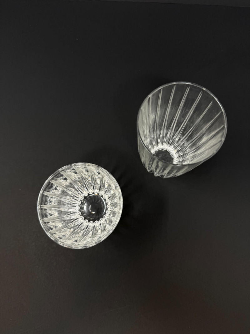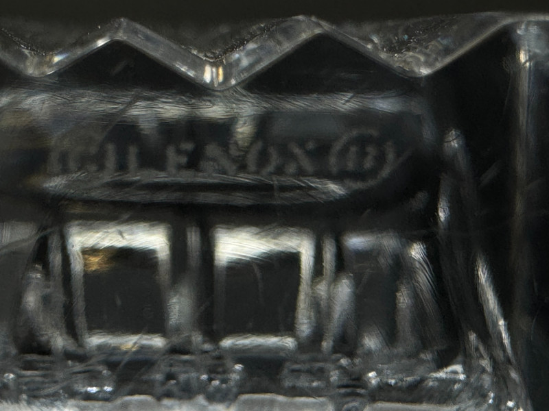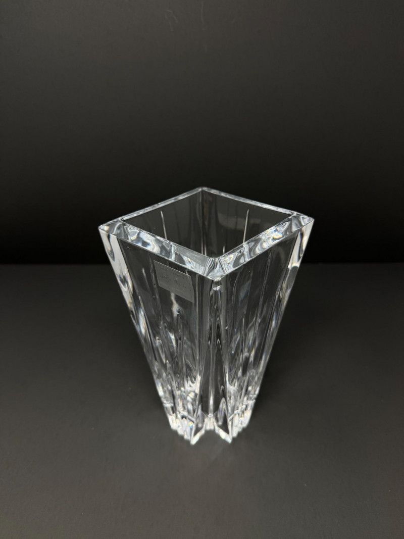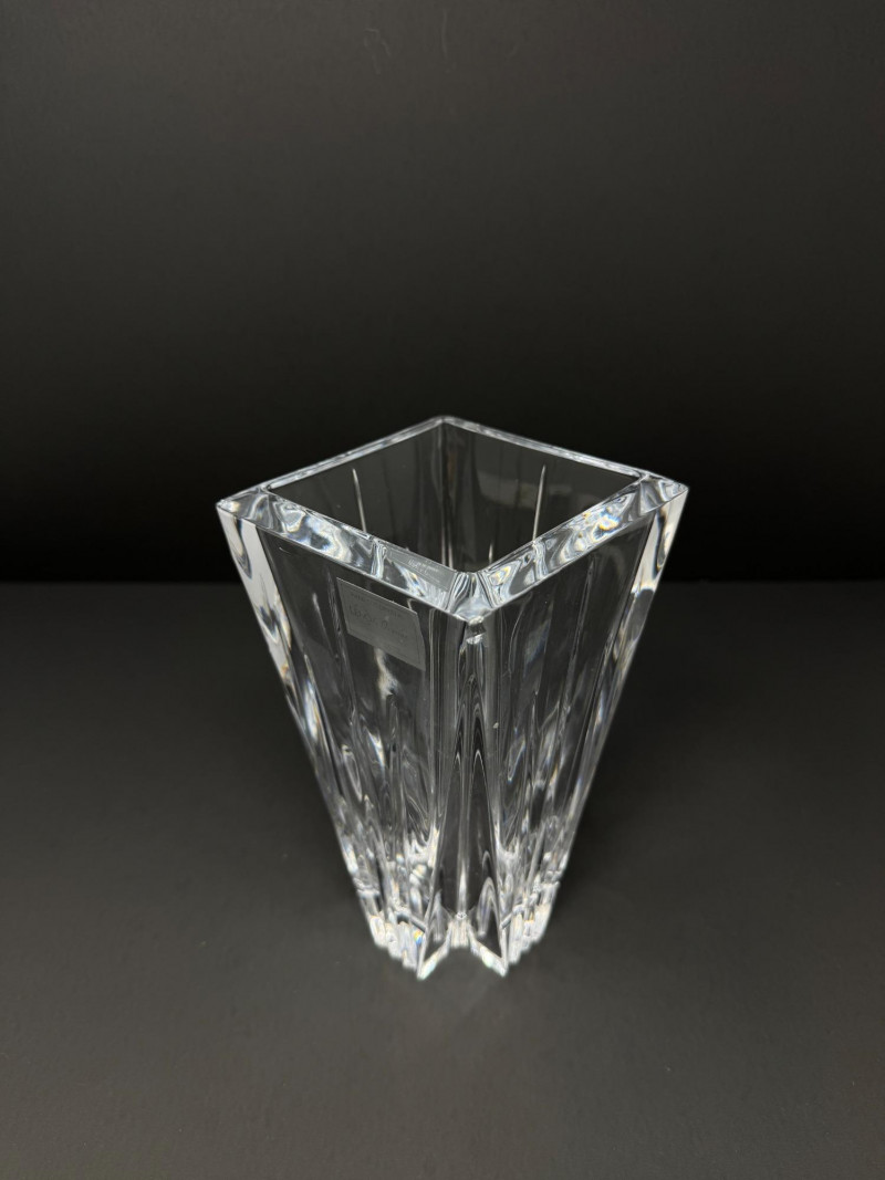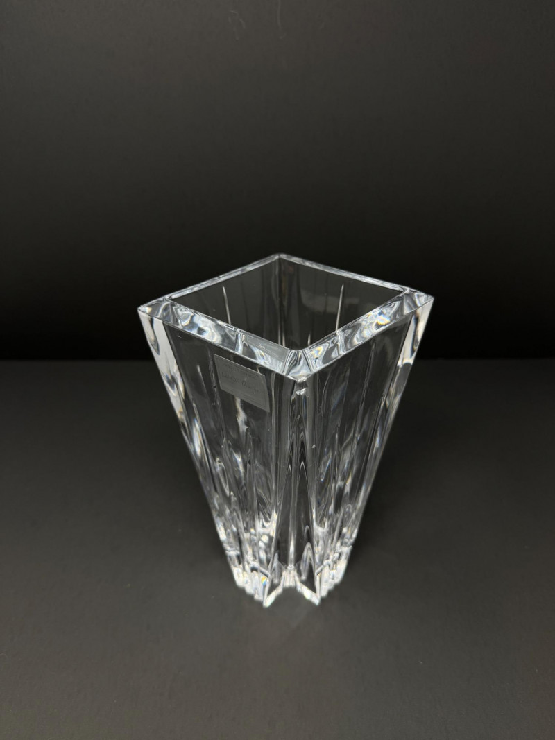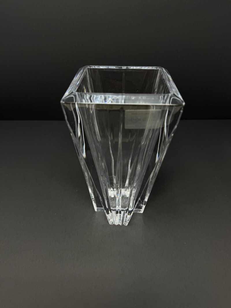 Lenox Ovations Crystal Vase & 2 Mikasa Park Lane Style Glasses. Lenox Ovations hand cut crystal vase, made in Slovenia. Approx 4 1/4" x 8" Chip noted on rim (see photos) 2 Mikasa Park Lane Style crystal glasses One approx 3 1/3" x 3 3/4" One approx 2 3/4" x 5 1/2"