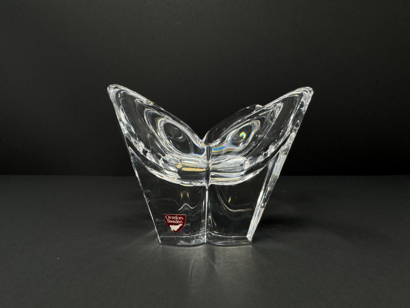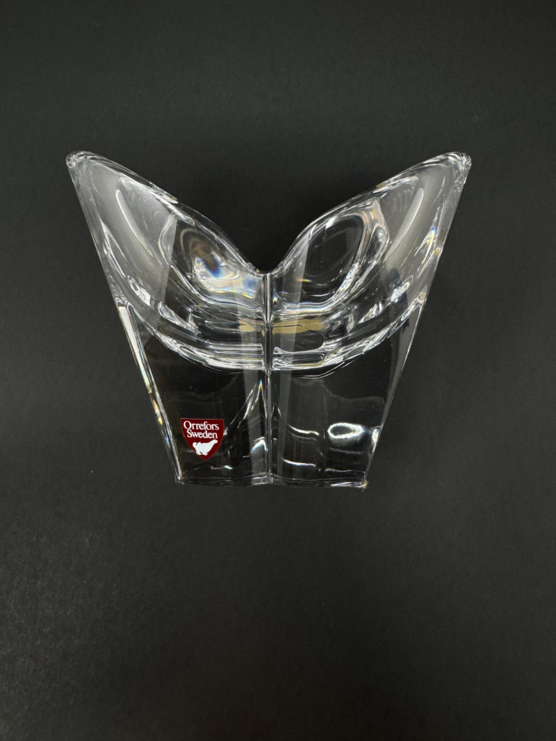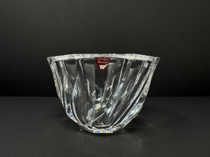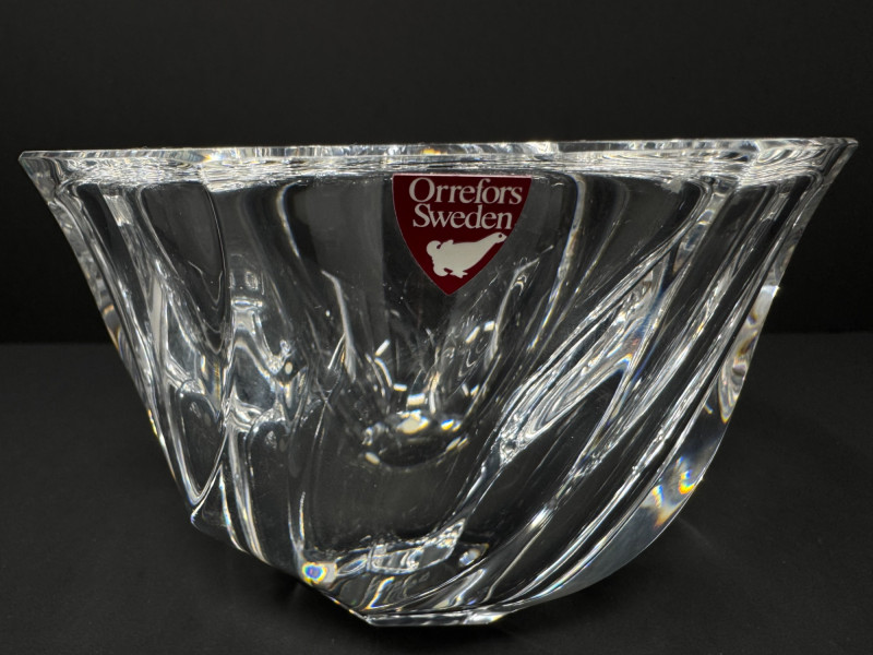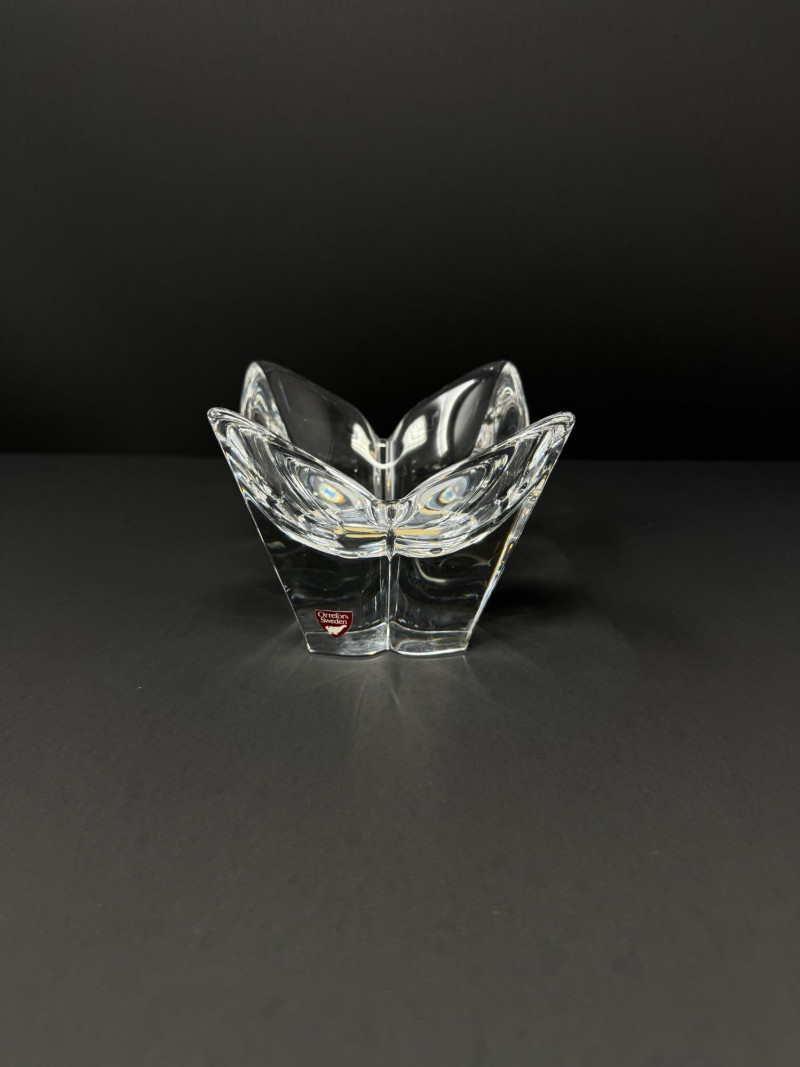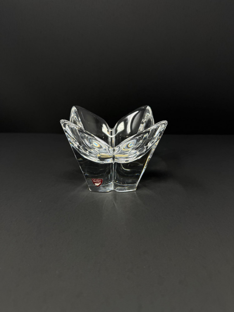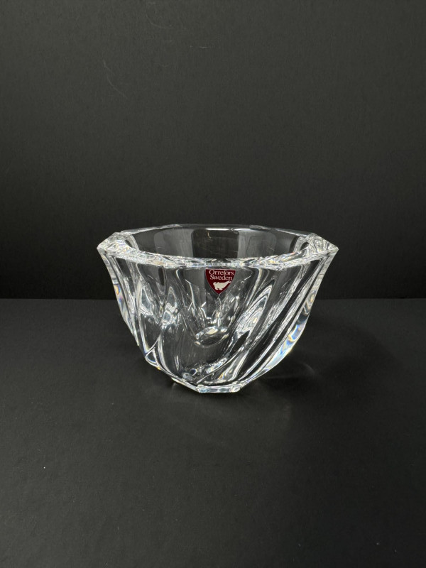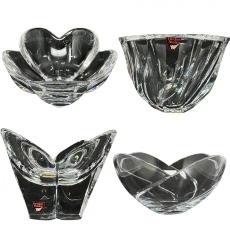 4 Crystal Bowls – Orrefors Sweden + Leaf Design.