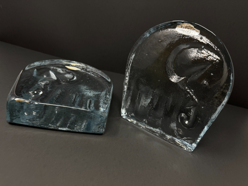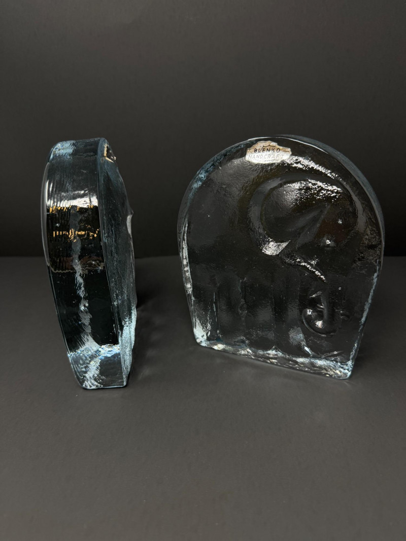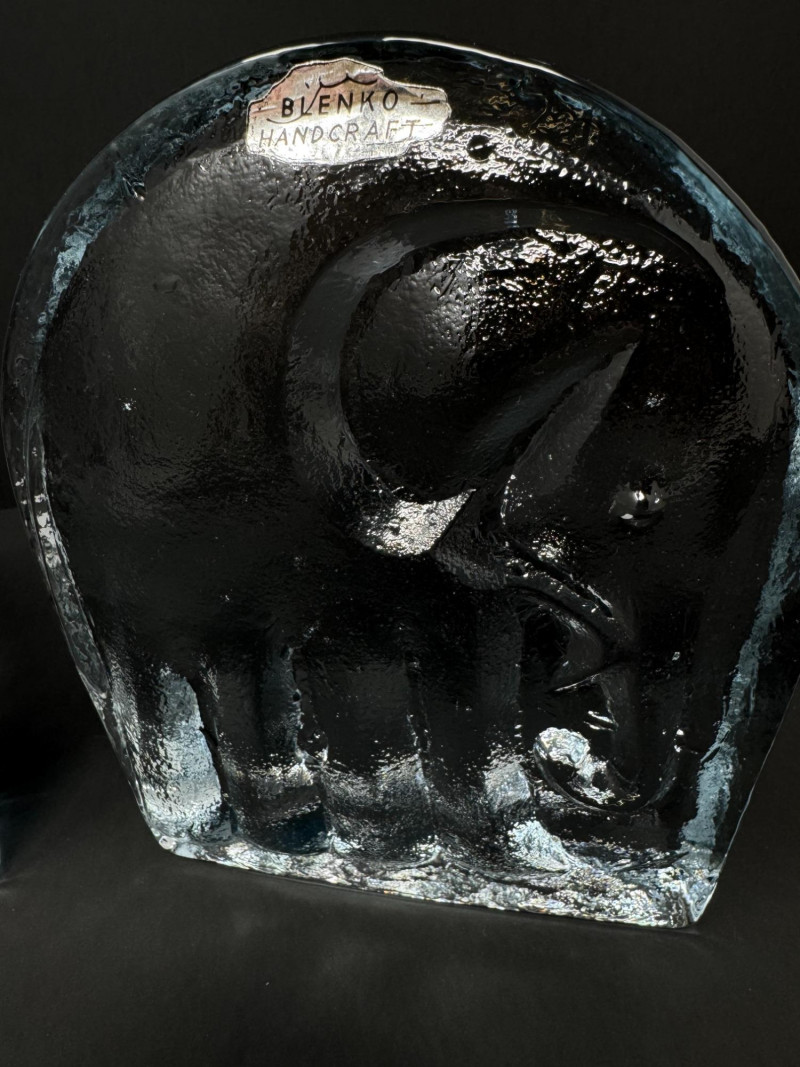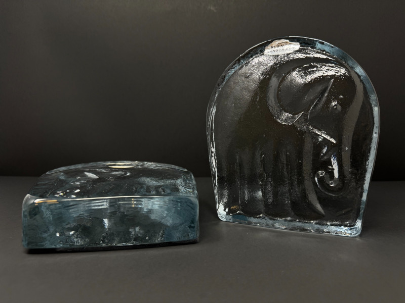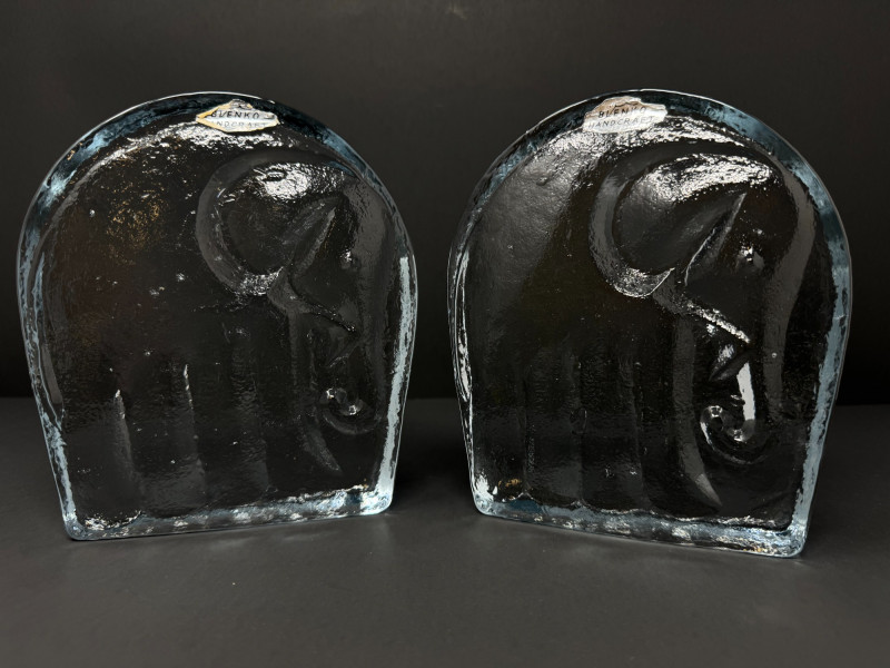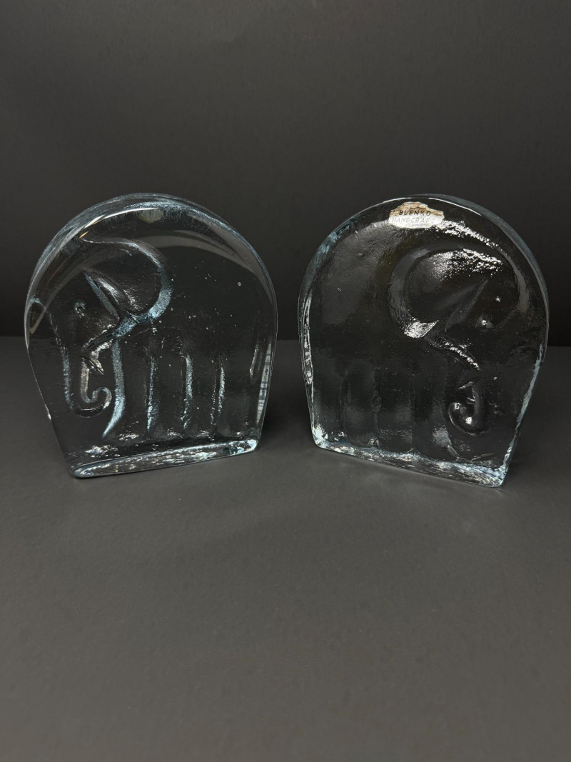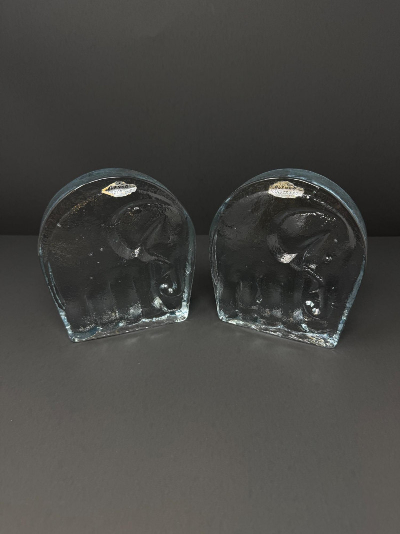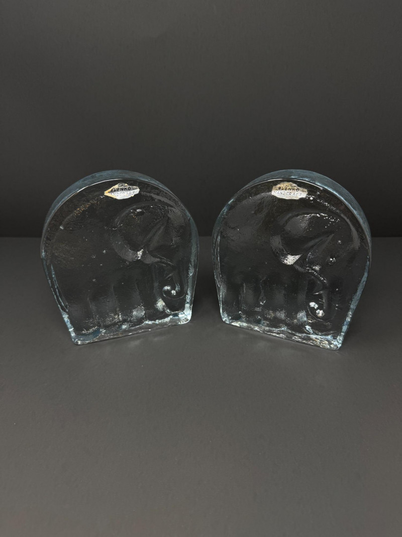 Lot # 169 - Pair of Handcrafted Blenko Clear Glass Elephant Bookends