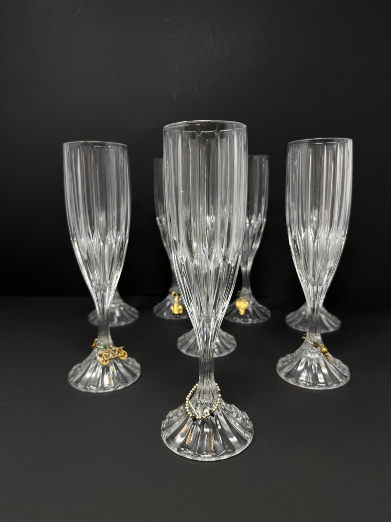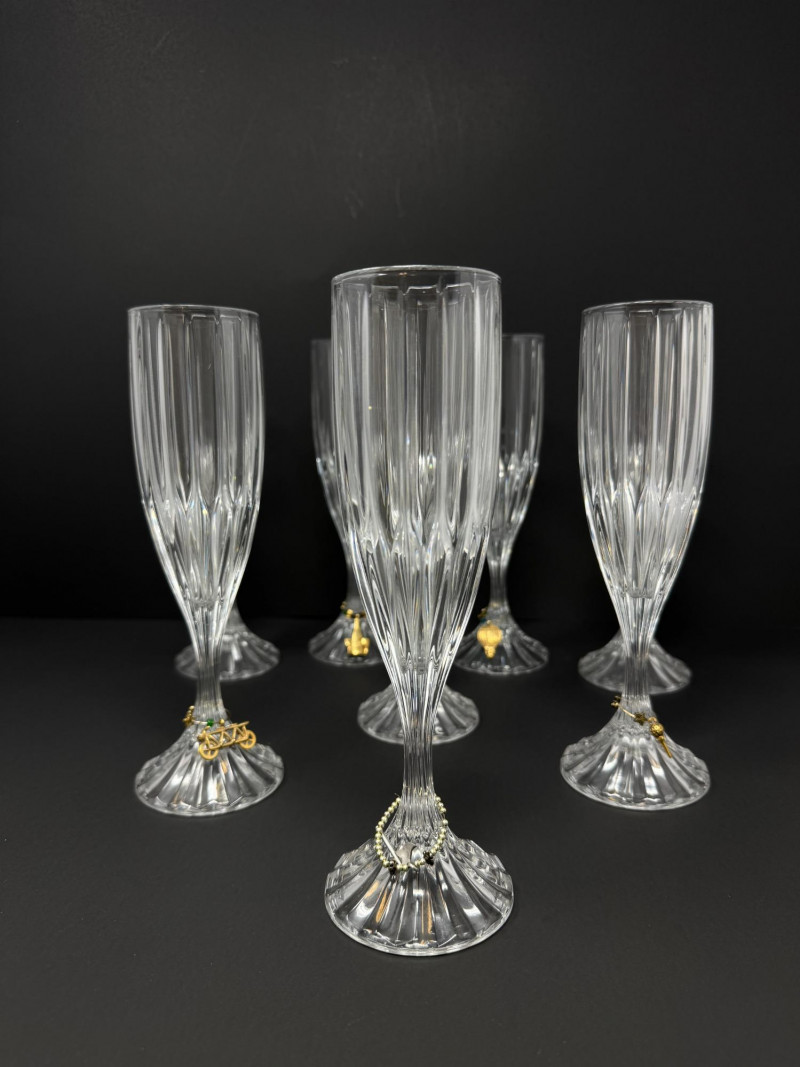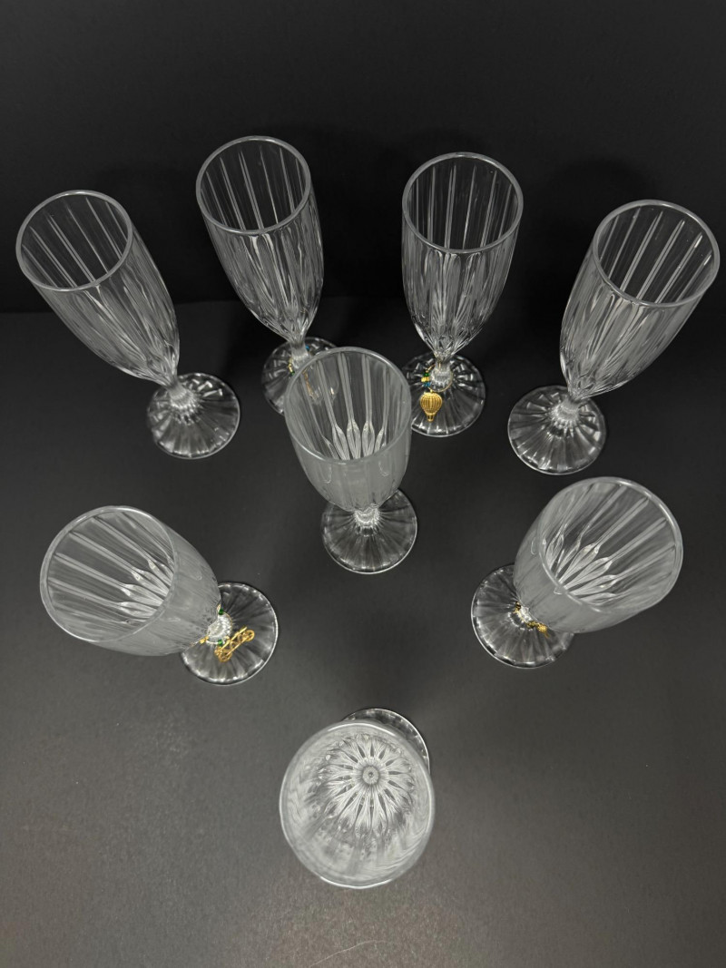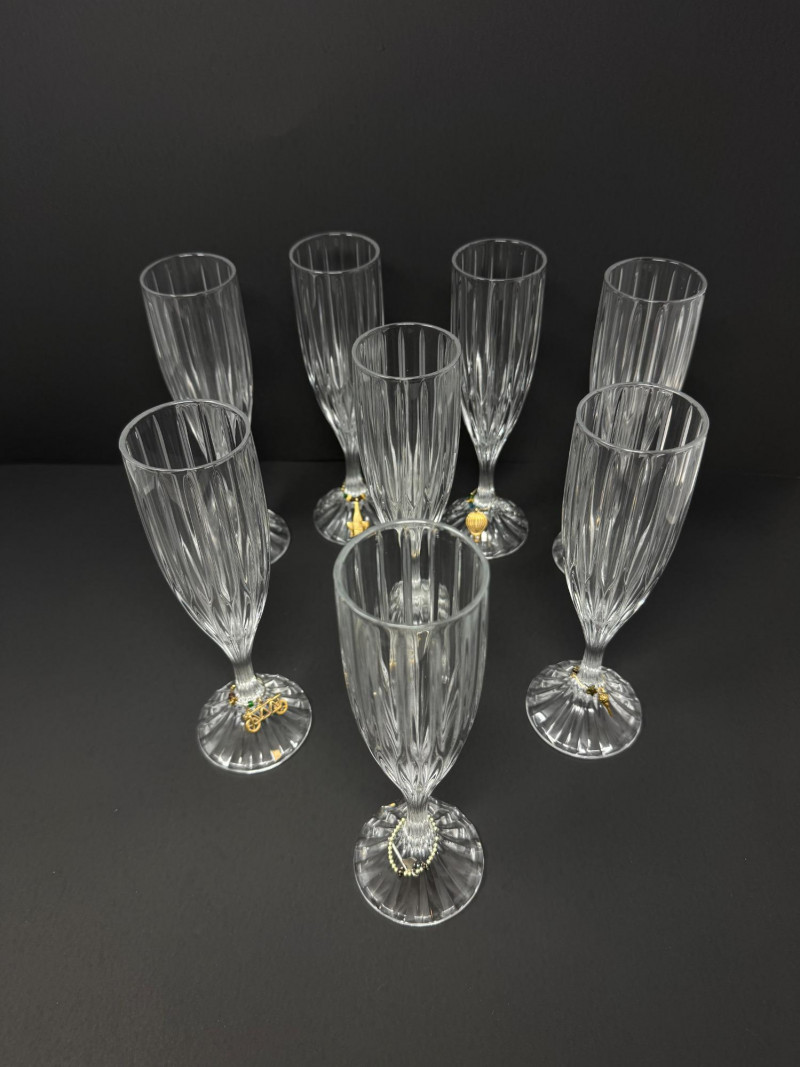 Set of 8 Crystal Champagne Toasting Flutes – Mikasa Park Lane Style.