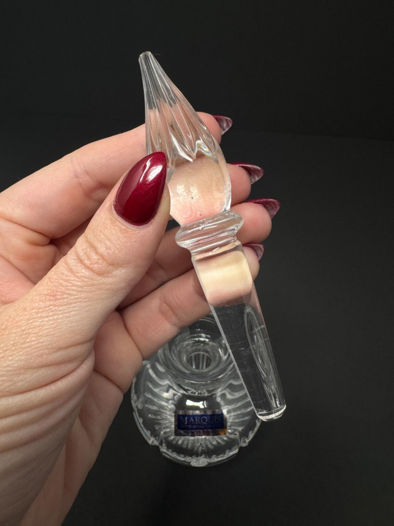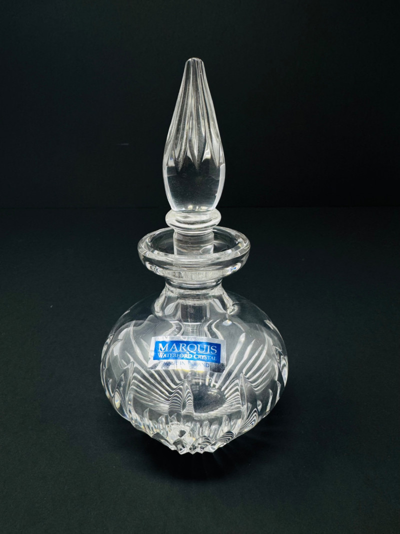 Vintage Marquis by Waterford “Claria” Cut Crystal Perfume Bottle. Waterford mark on base with original Marquis label Measures approx. 5.5” tall