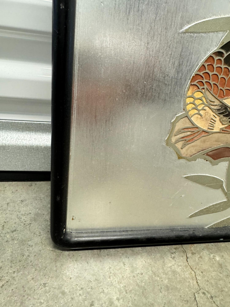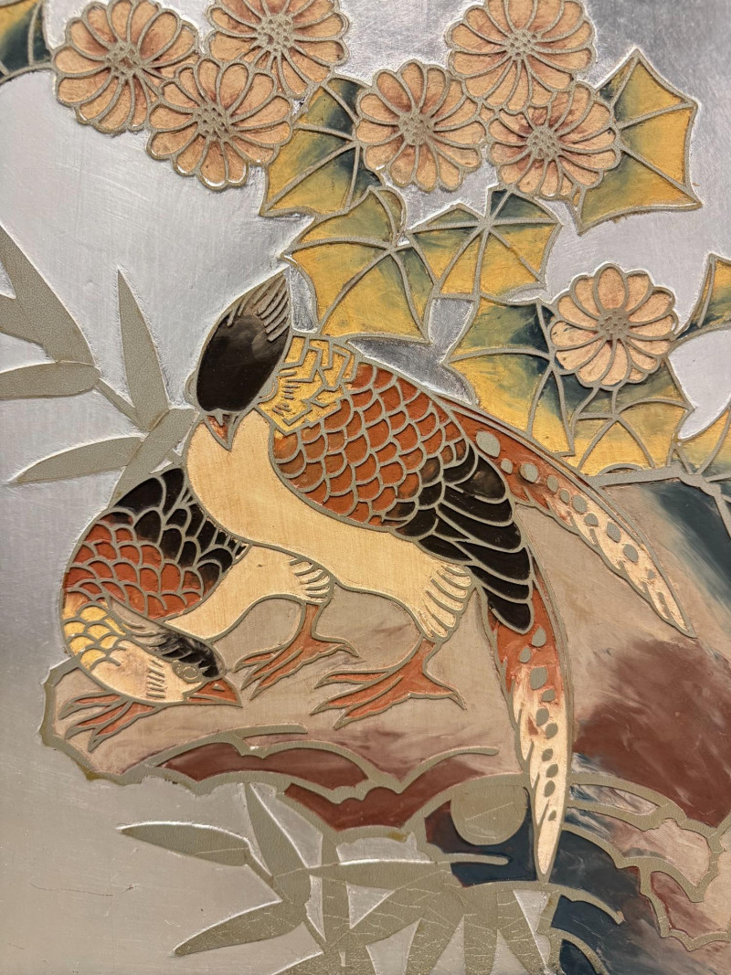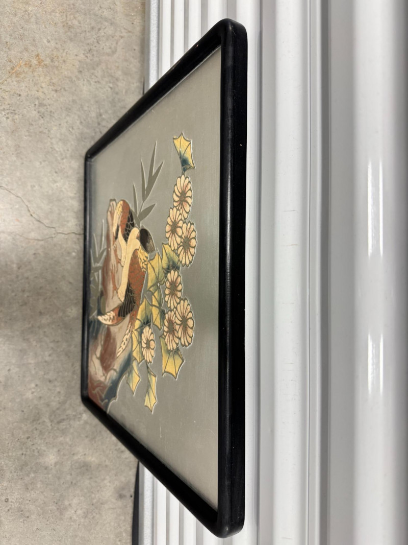 Lot # 176 - Framed Chokin-Style Japanese Bird & Floral Artwork on Silvered Panel