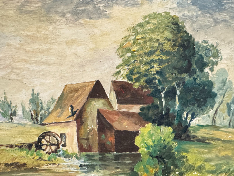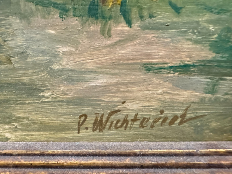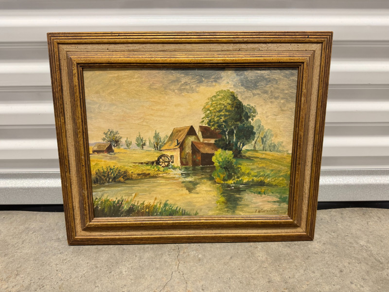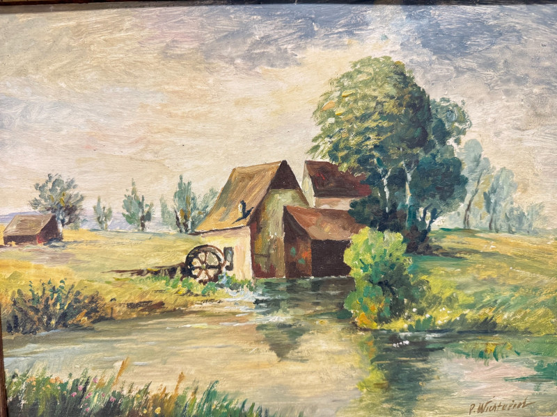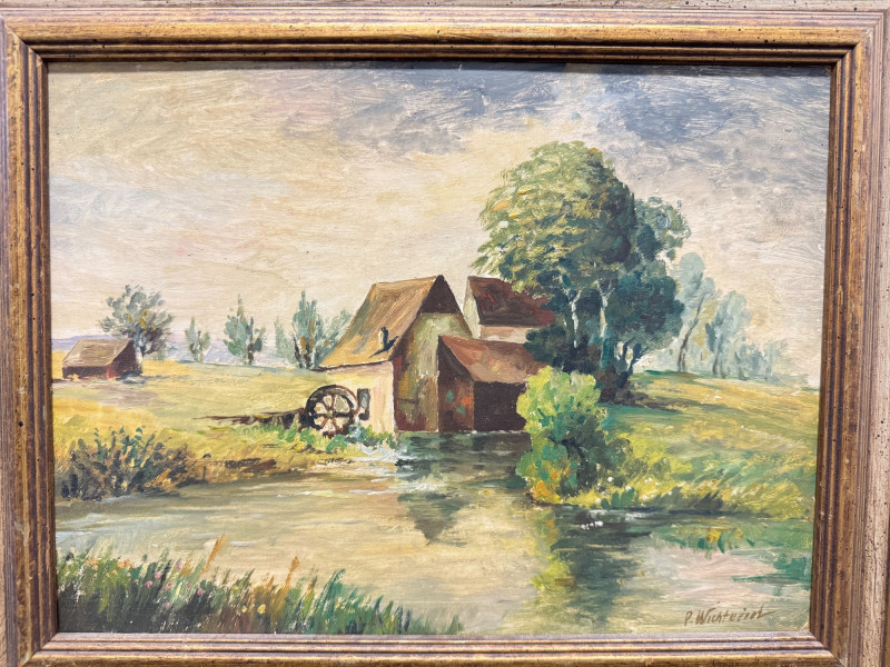 Landscape & Watermill Oil Painting w/ Watermill Scene by P. Wichterich.