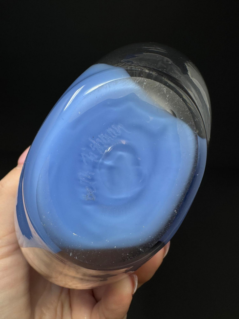 Murano Style Blown Glass Vase Blue & Purple, Signed.