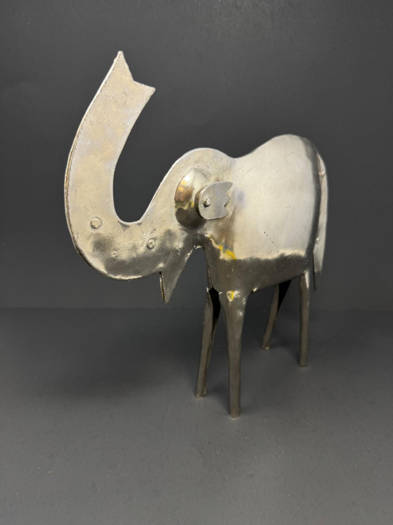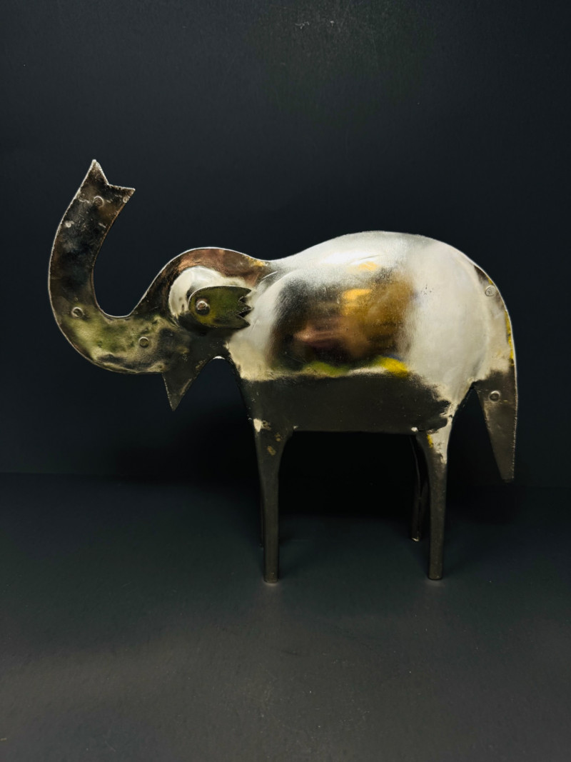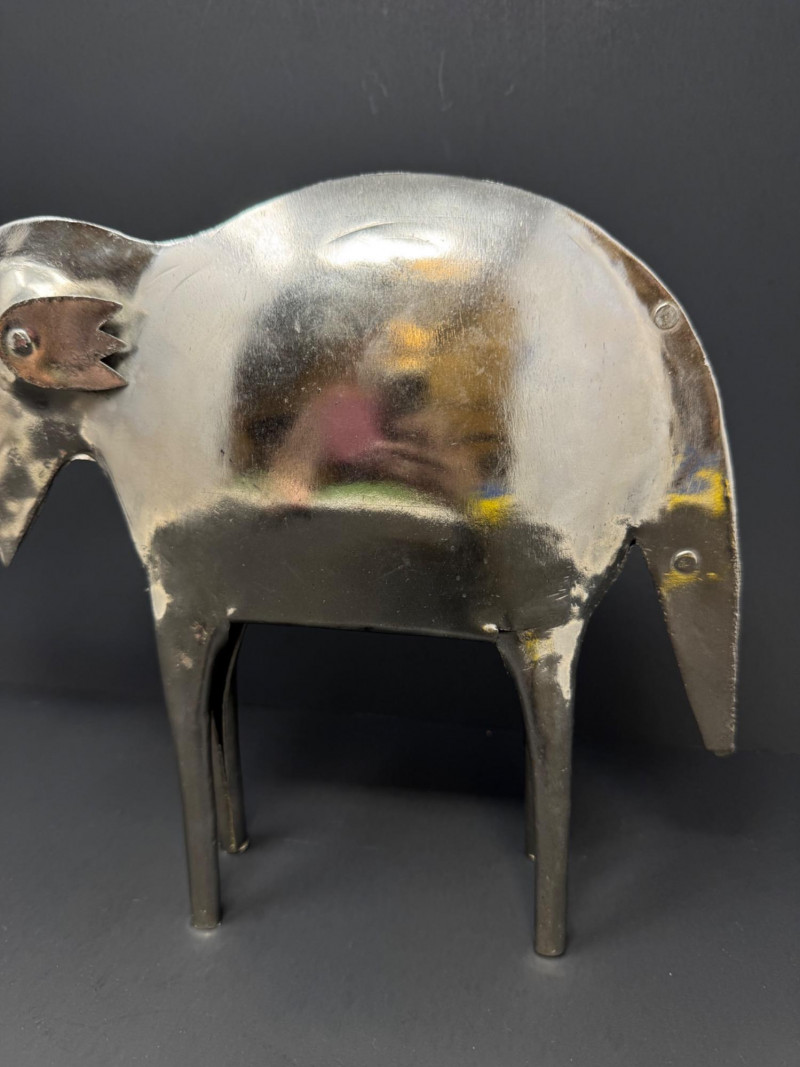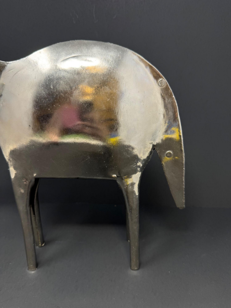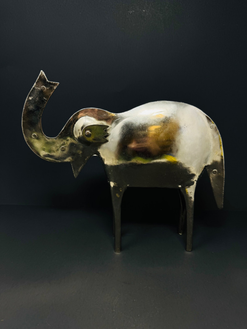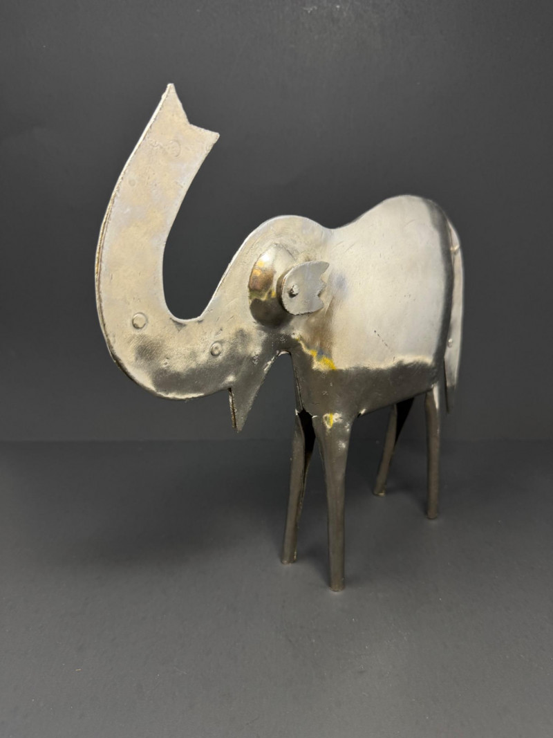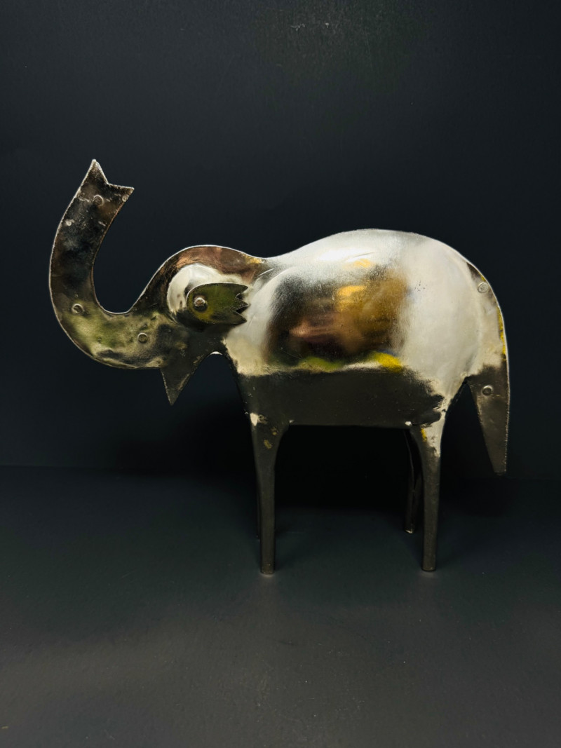 Hand Made Large Metal Elephant Sculpture - India. Stands 10” tall x 11” wide