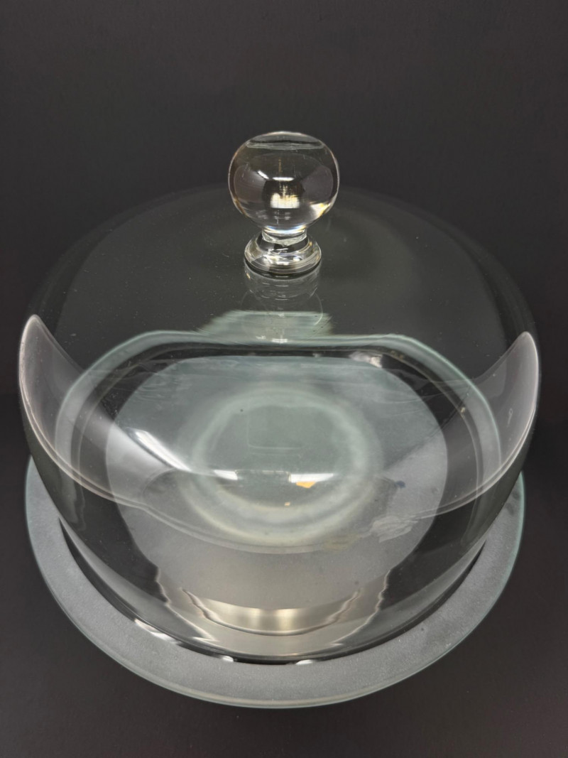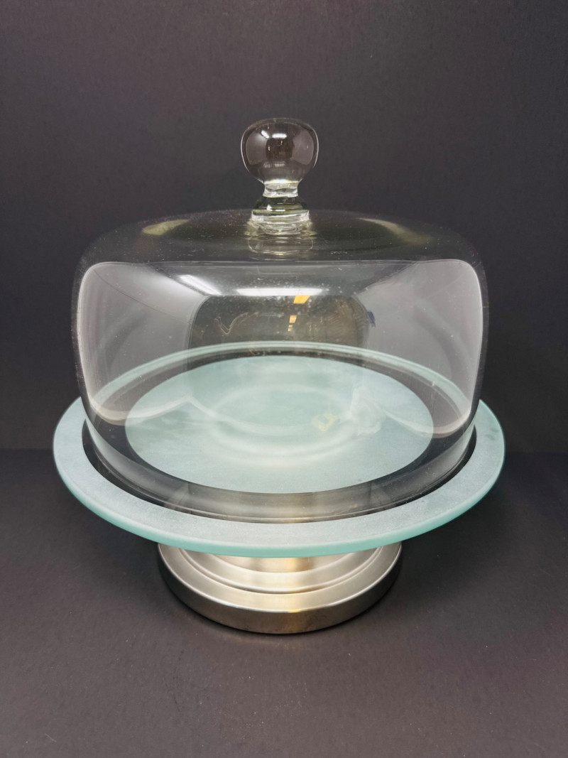 Lot # 190 - Metal Cake Stand w/ Transparent Glass Dome Cover