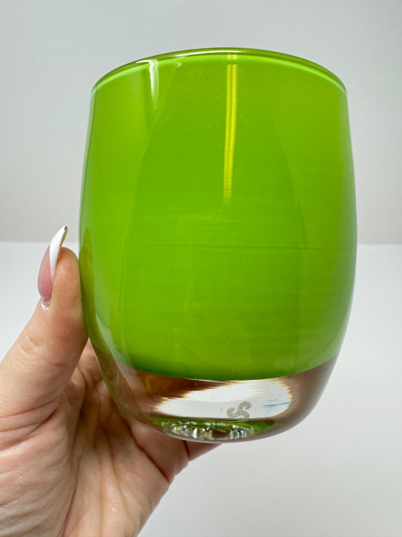 Glassybaby "LUCKY" Votive Candle Holder – Lime Green Pre-Triskelion. 3.5” Tall