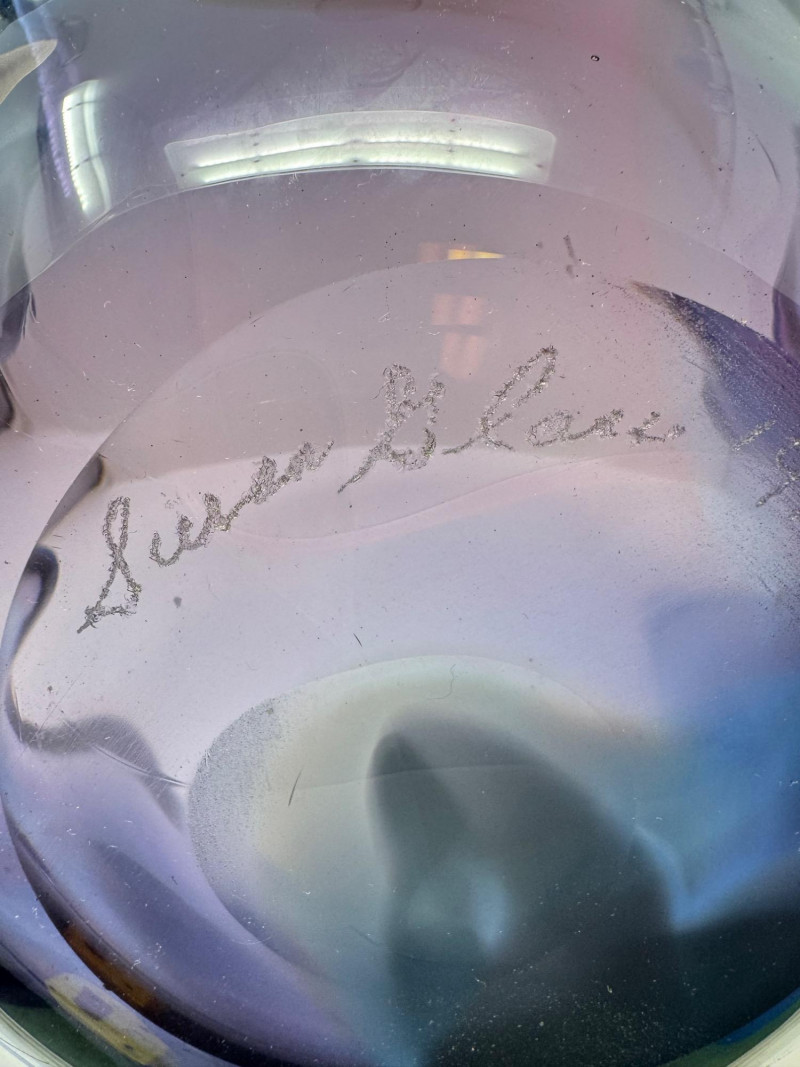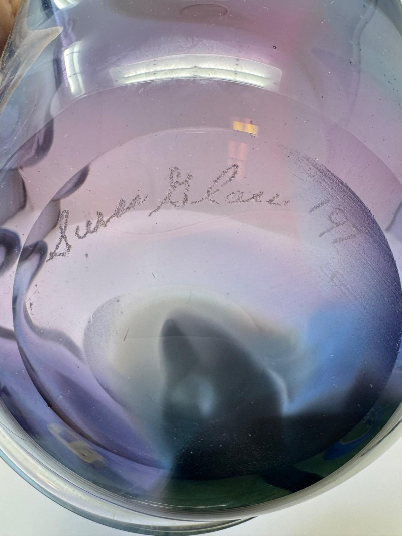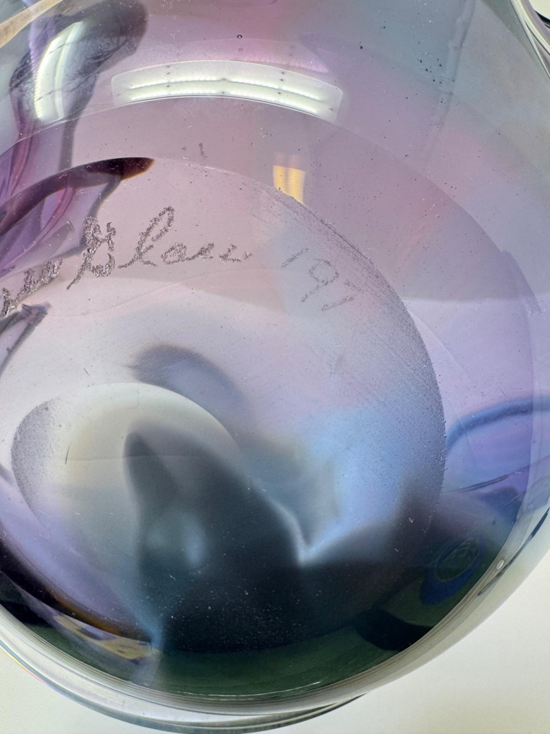 Lot # 195 - Susan Anne Signed Free Form Art Glass Vase – Purple/Blue Ruffled