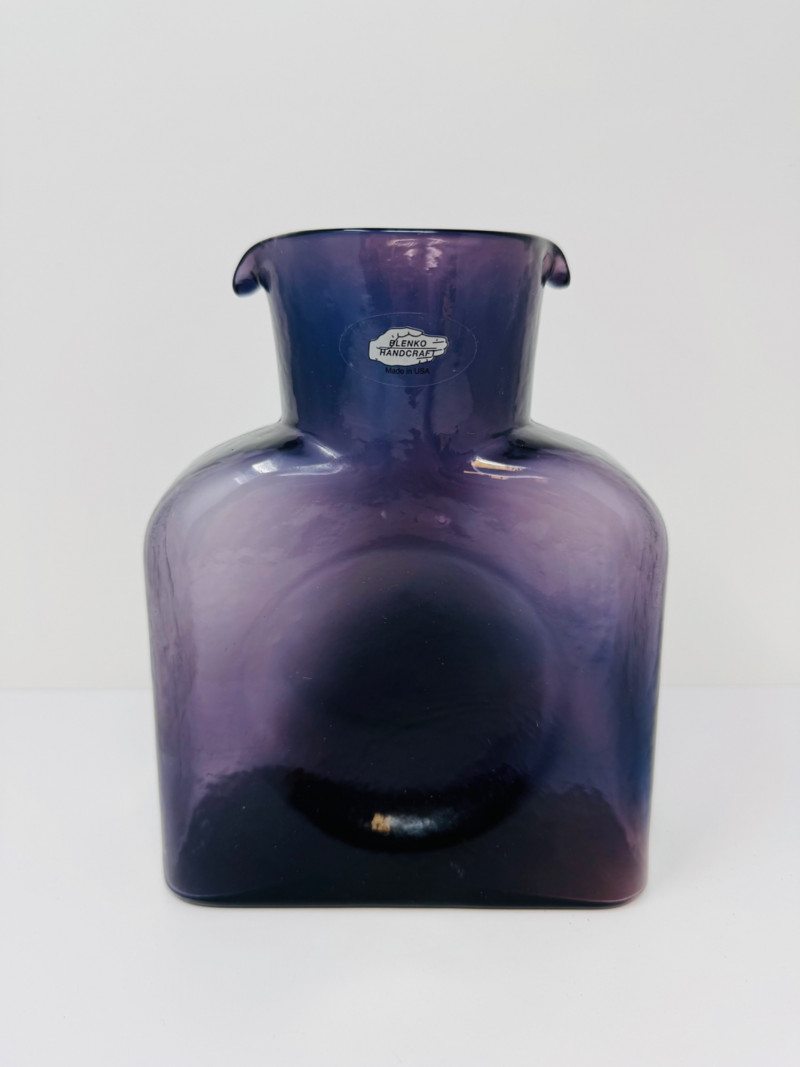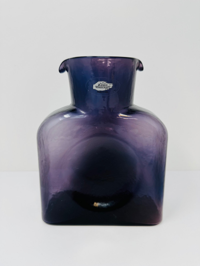 Blenko Handcrafted Purple Double Spout Glass Vase.