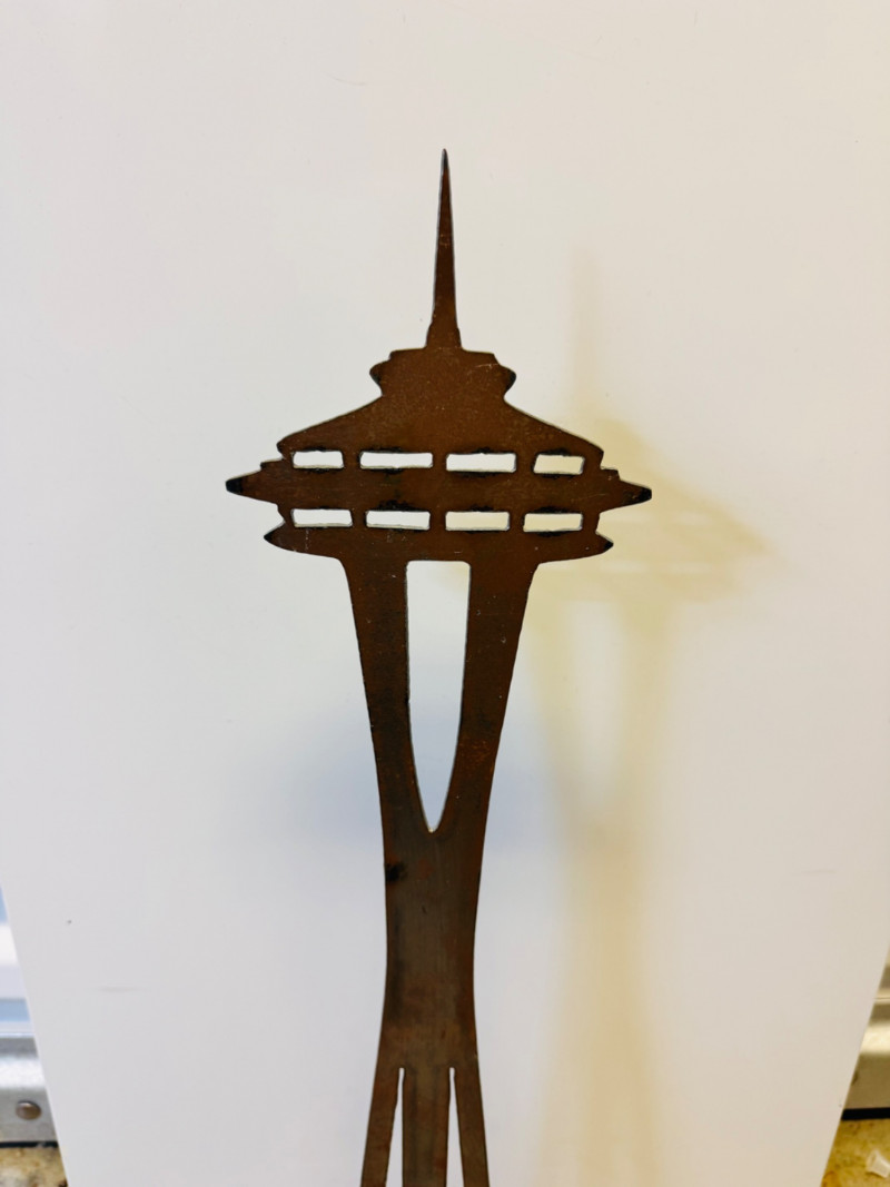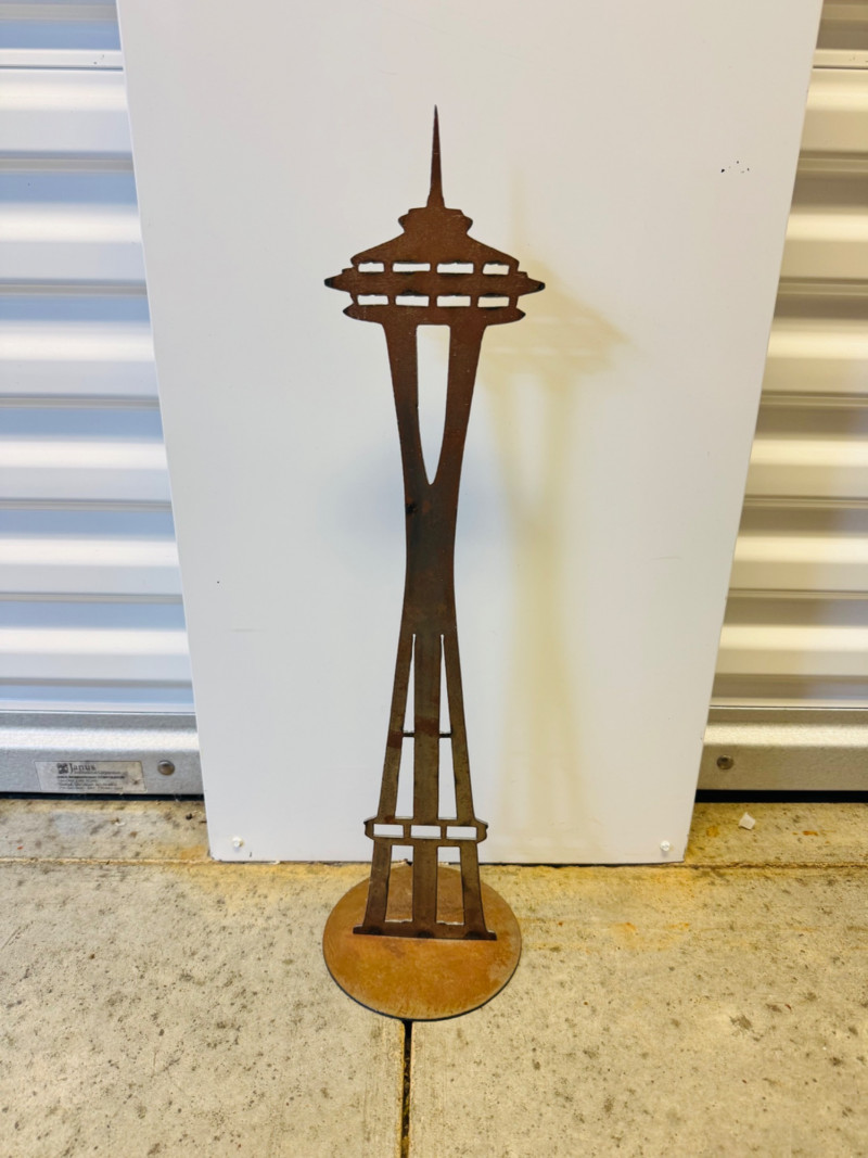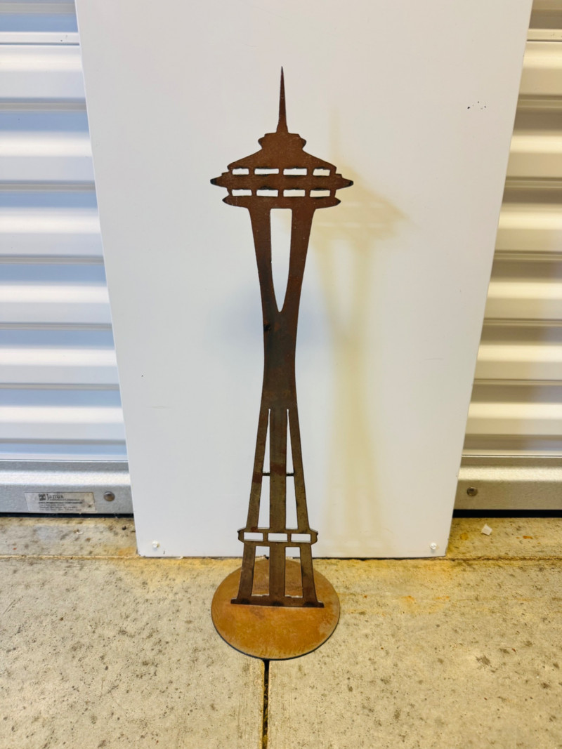 22” Tall Metal Sculpture – Space Needle Silhouette. Measures approx. 22” tall