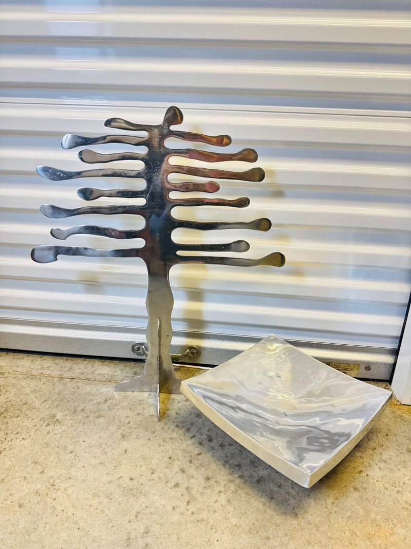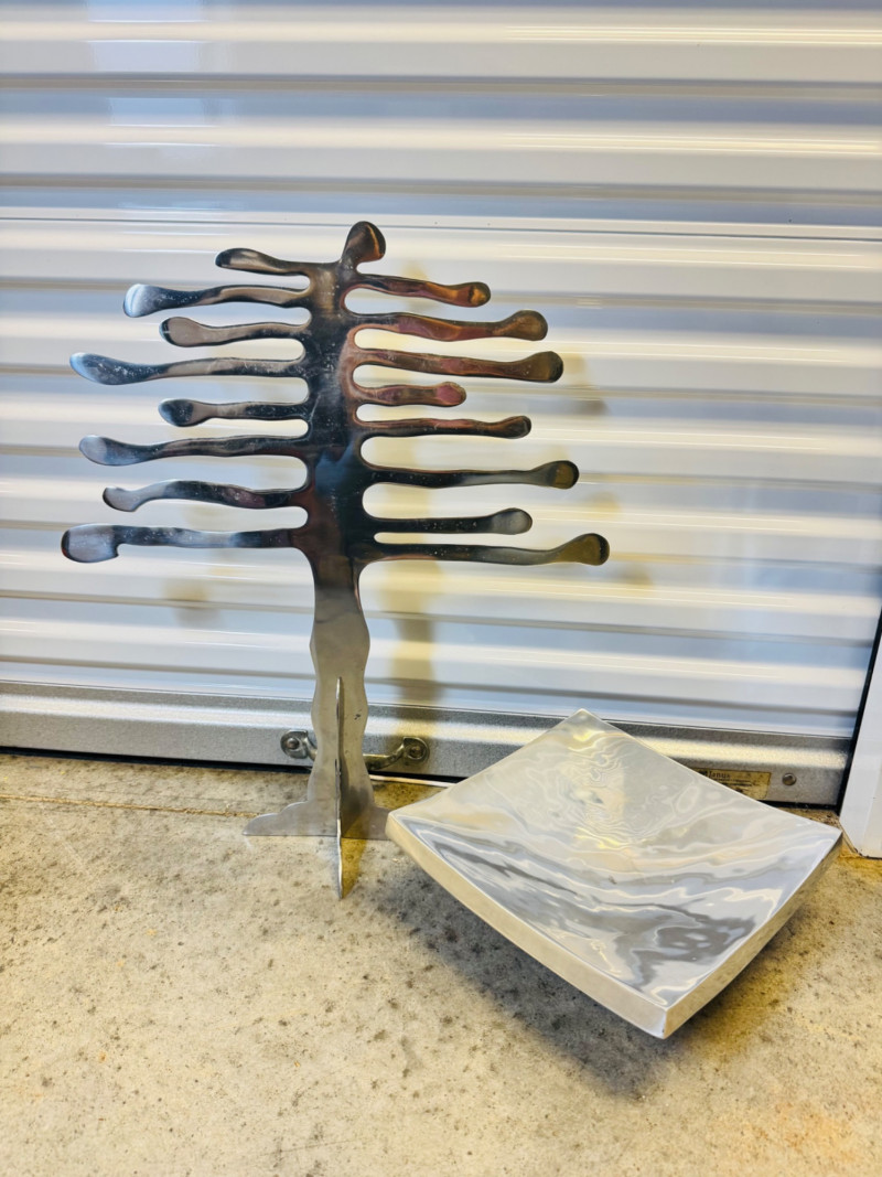 Polished Necklace Tree Stand & Mexican Silver-Tone Pedestal Dish.