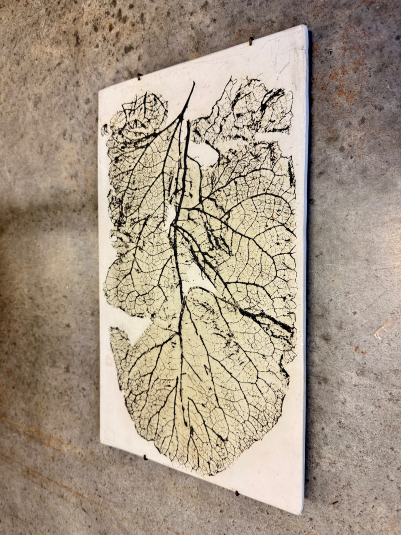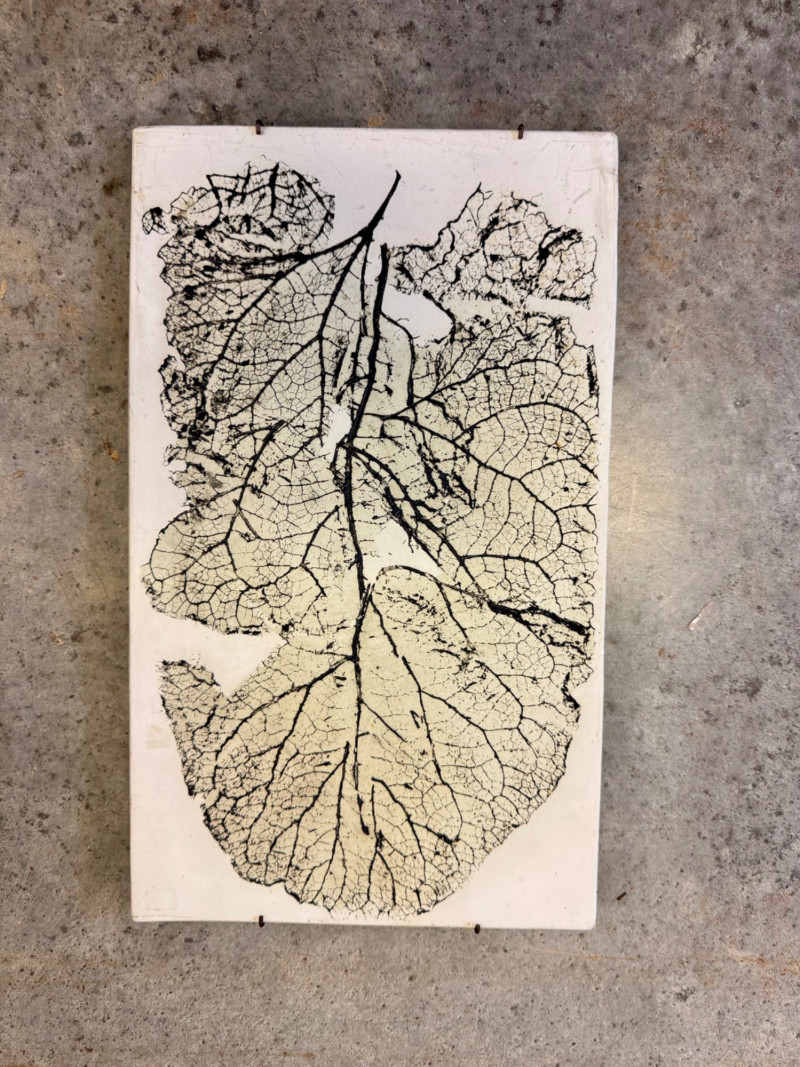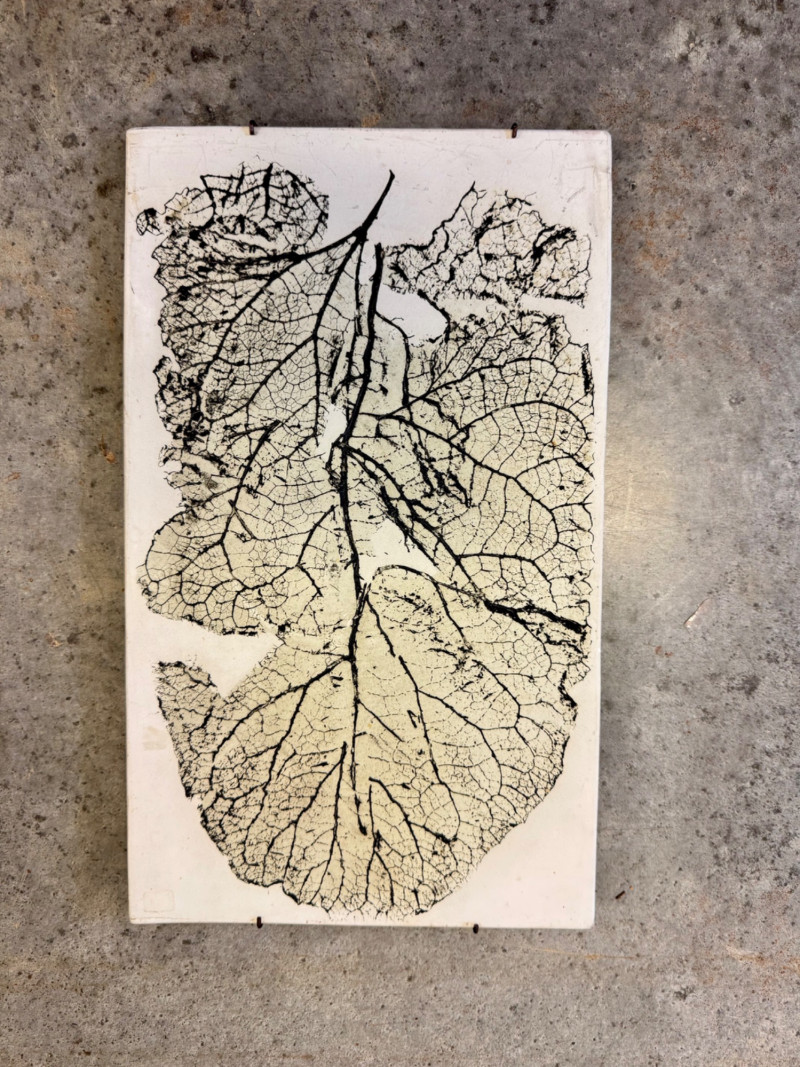 Arabia Finland Skeleton Leaf Ceramic Tile Wall Art.