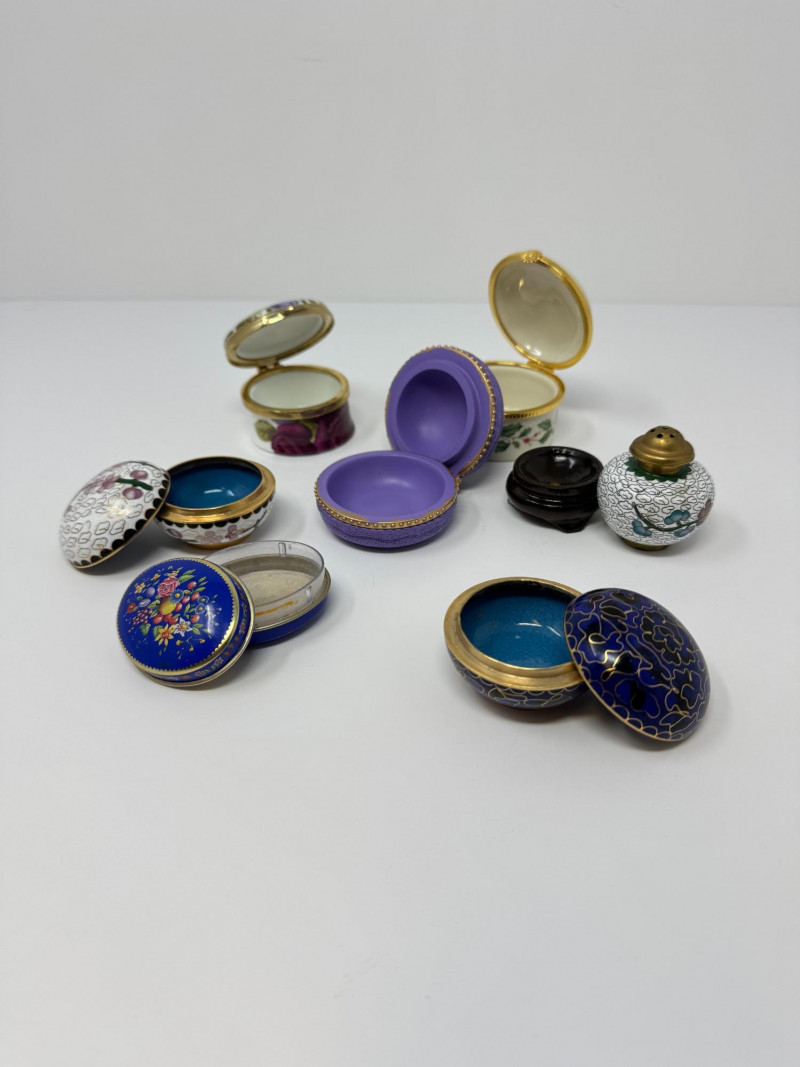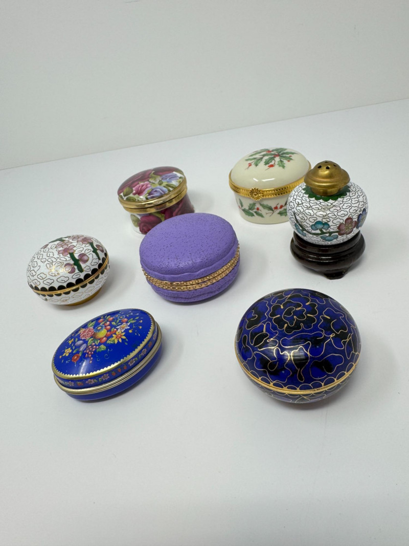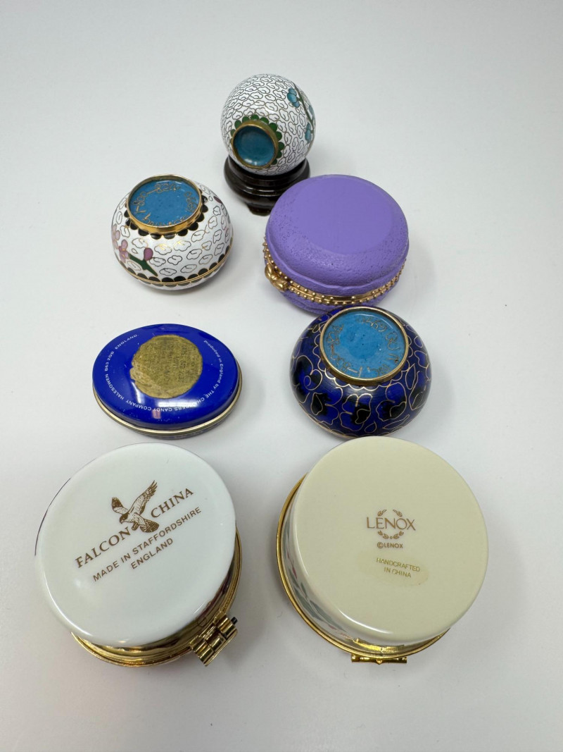 7 Trinket Boxes – Lenox, Falcon China, Cloisonné, Candy Co. +