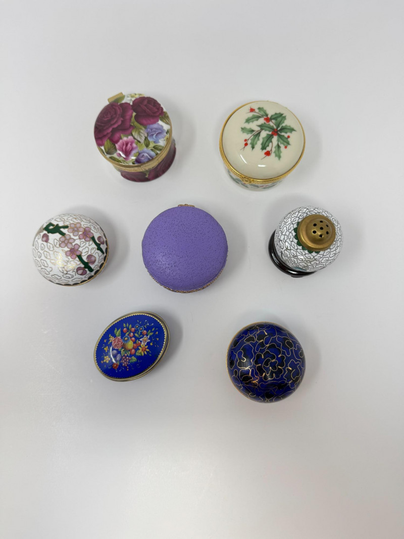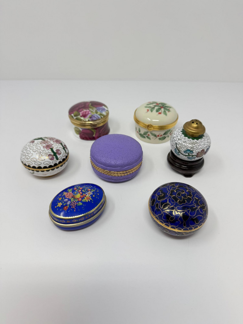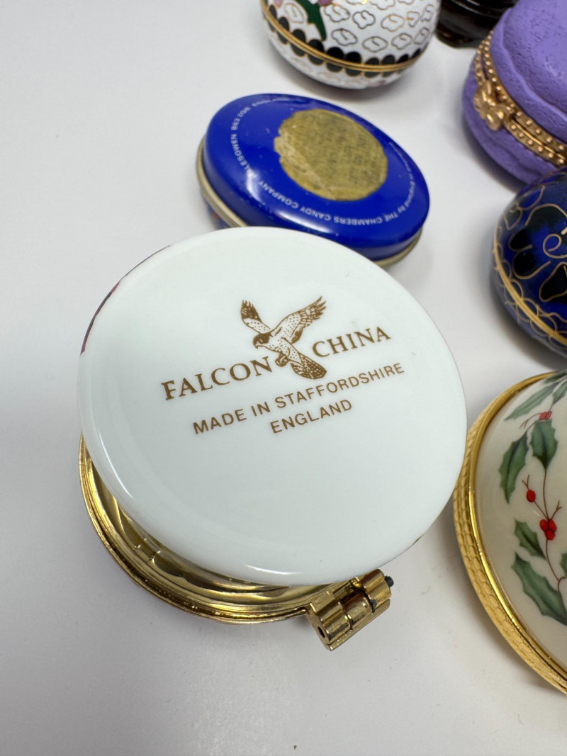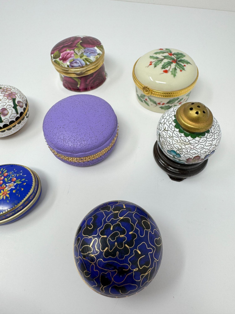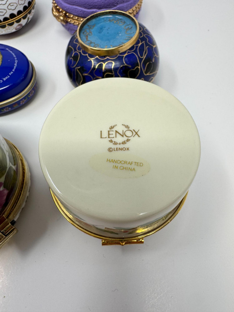 Lot # 210 - 7 Trinket Boxes – Lenox, Falcon China, Cloisonné, Candy Co. +