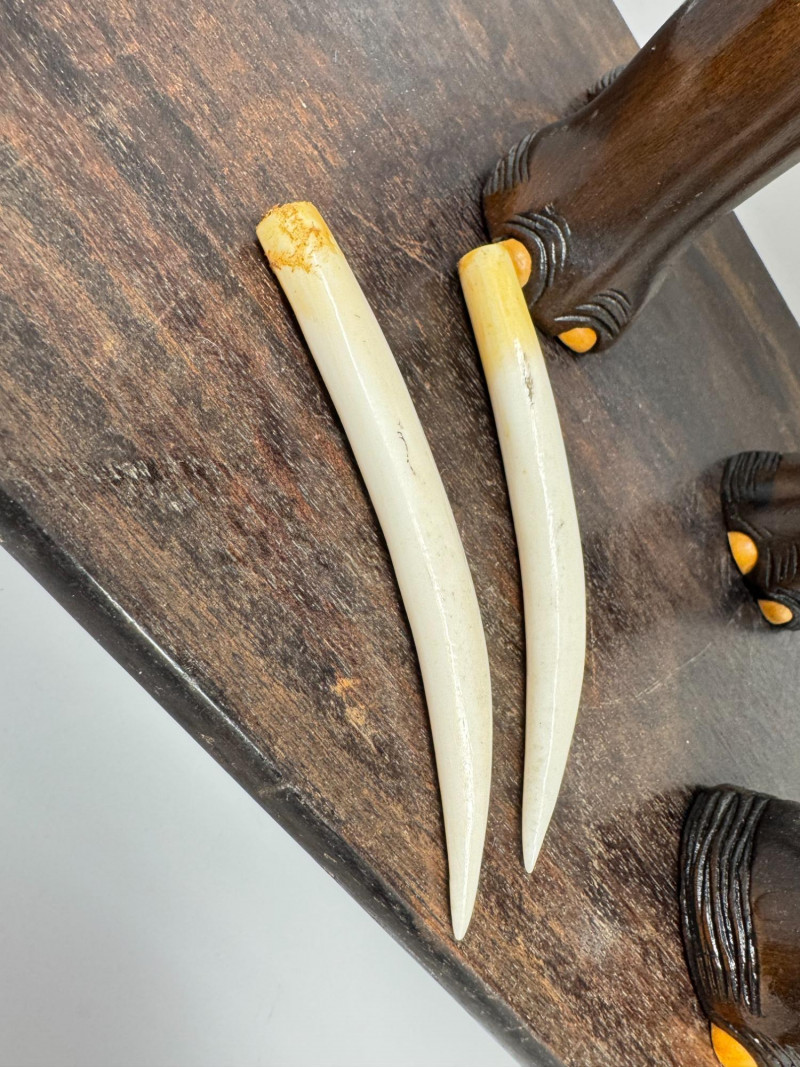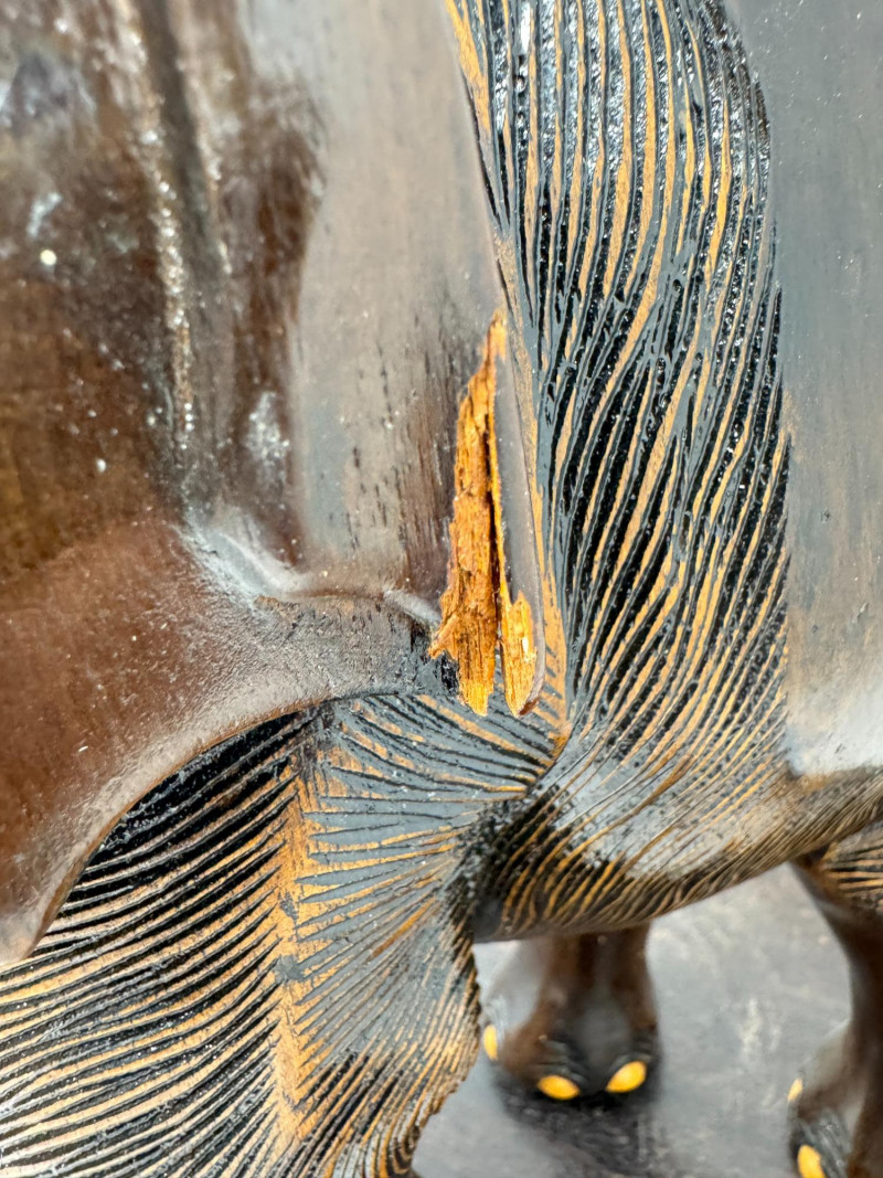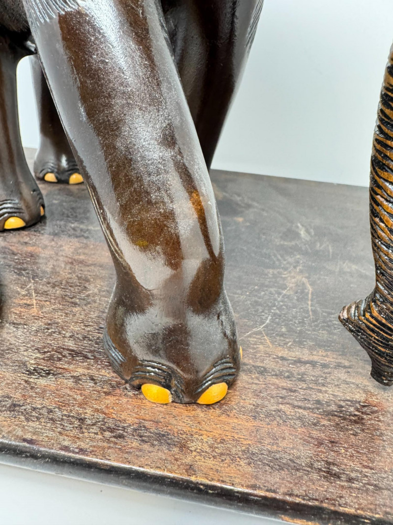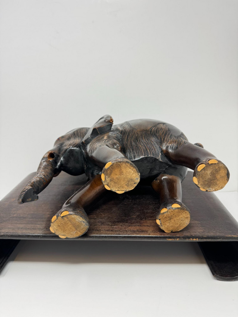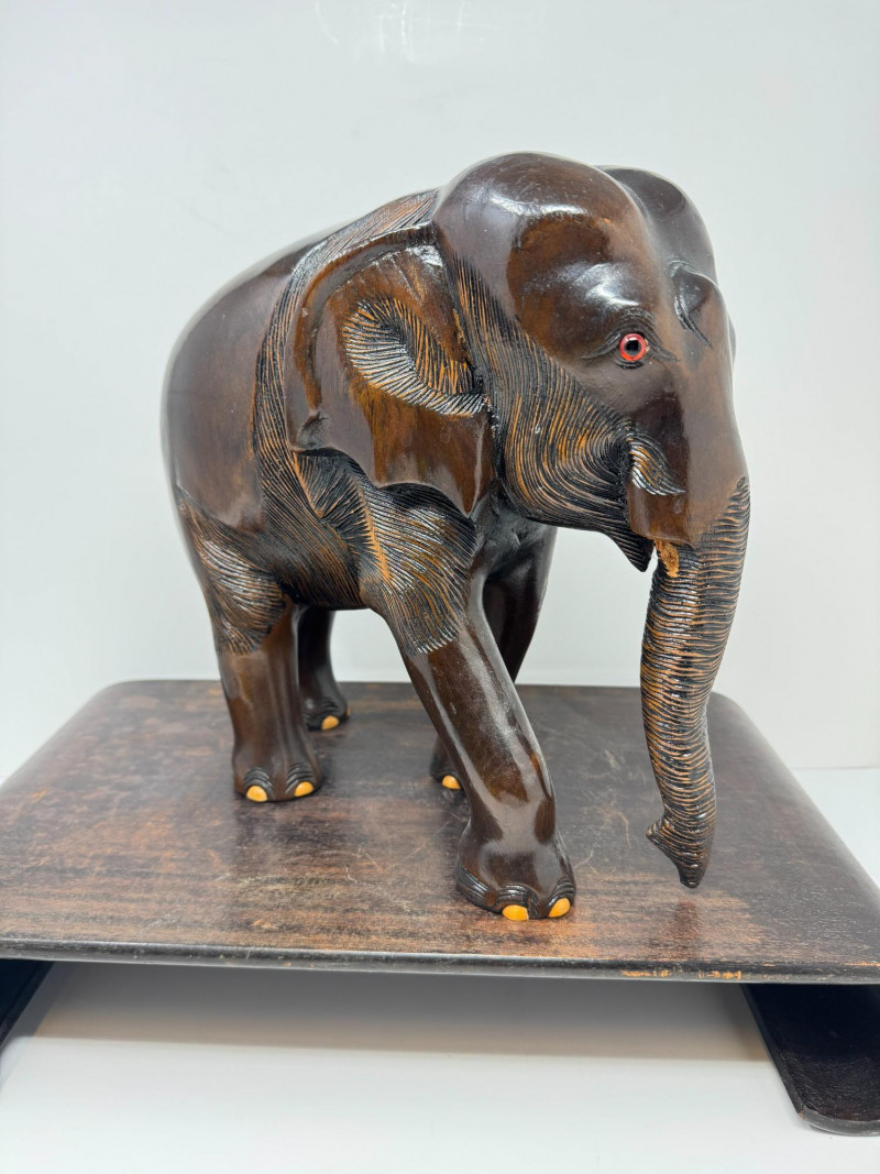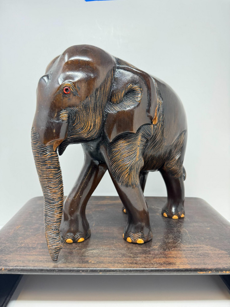 Carved Wooden Elephant Statue w/ Detachable Tusks on Base.
