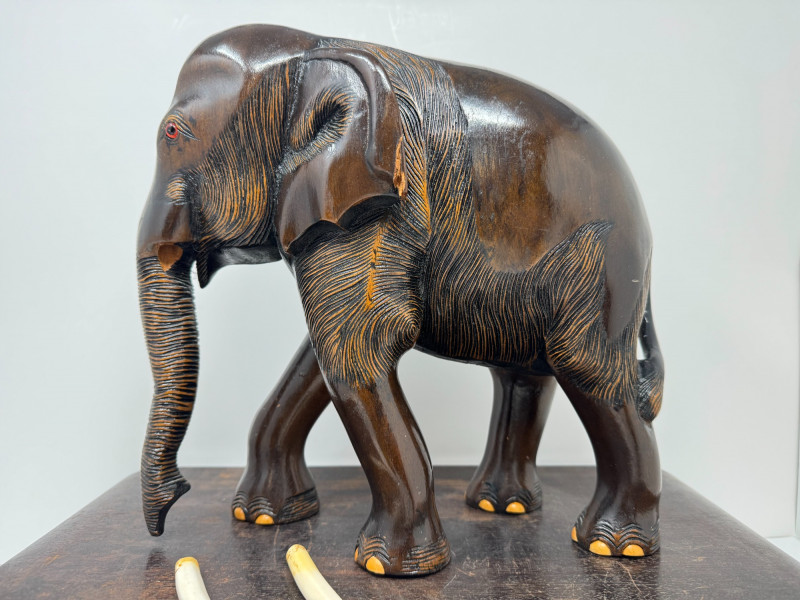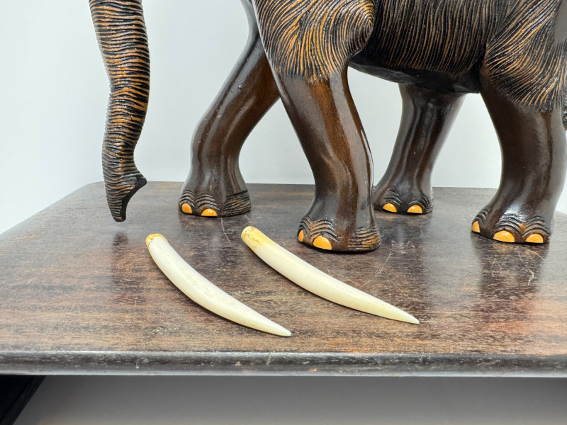 Lot # 212 - Carved Wooden Elephant Statue w/ Detachable Tusks on Base