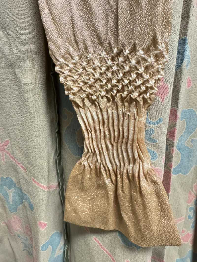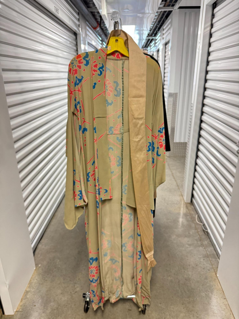 Lot # 224 - Vintage Beige Kimono w/ Multicolor Floral Print – Made in Japan
